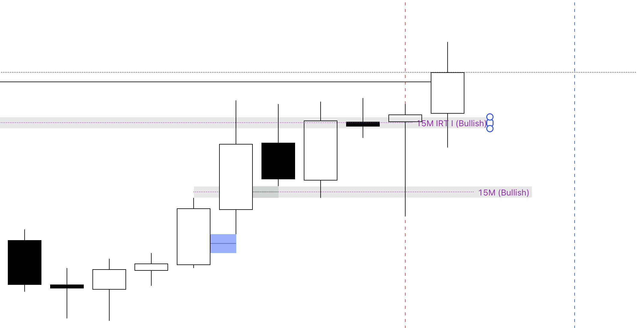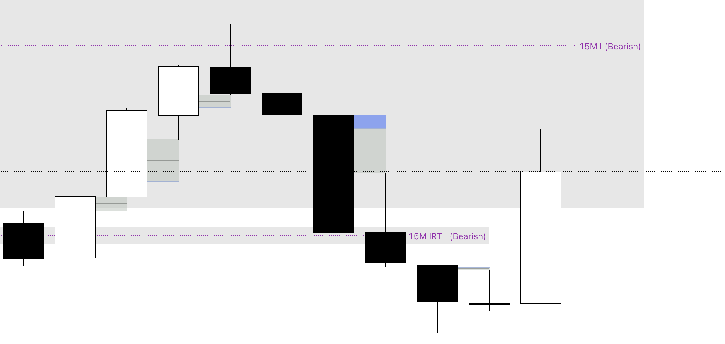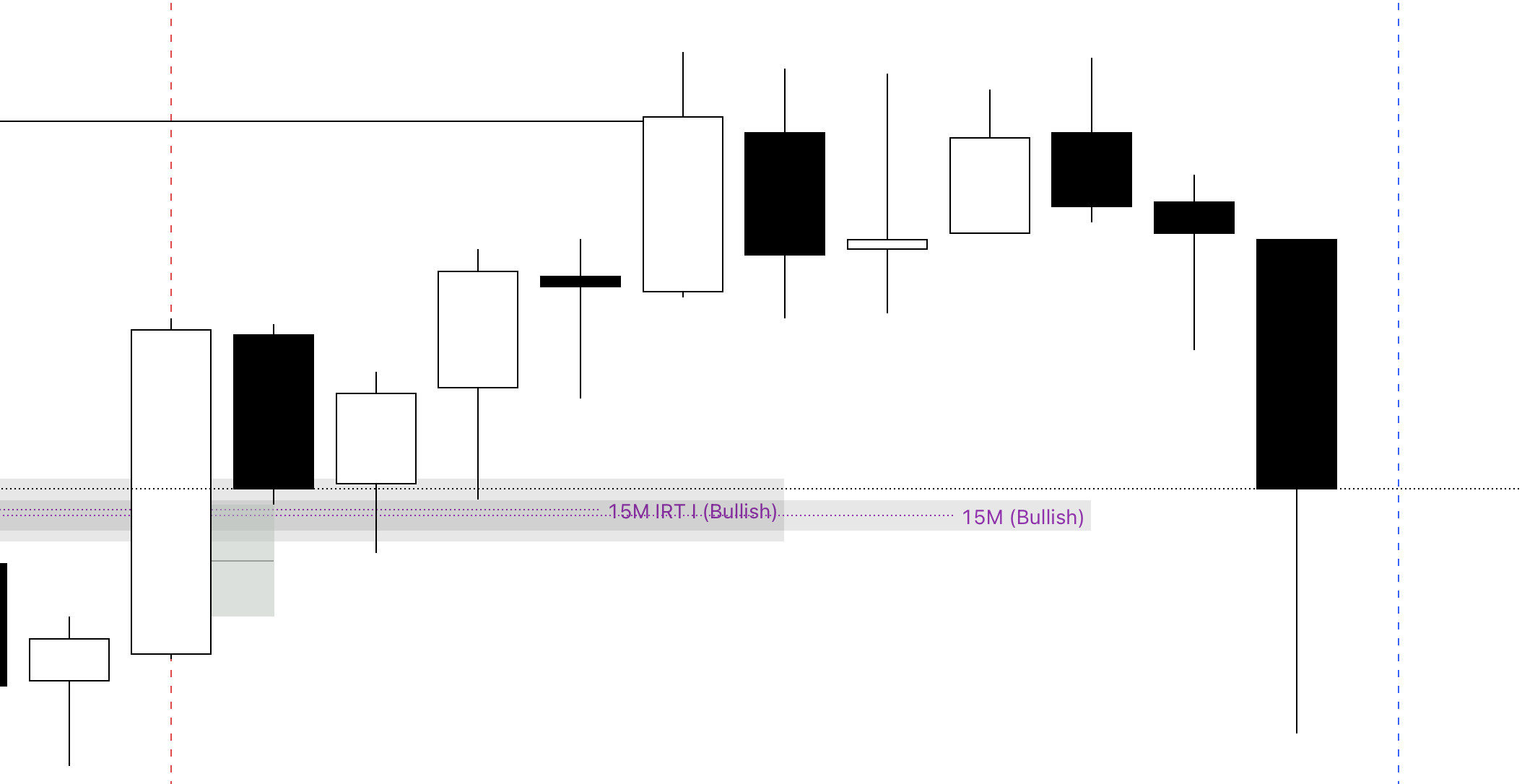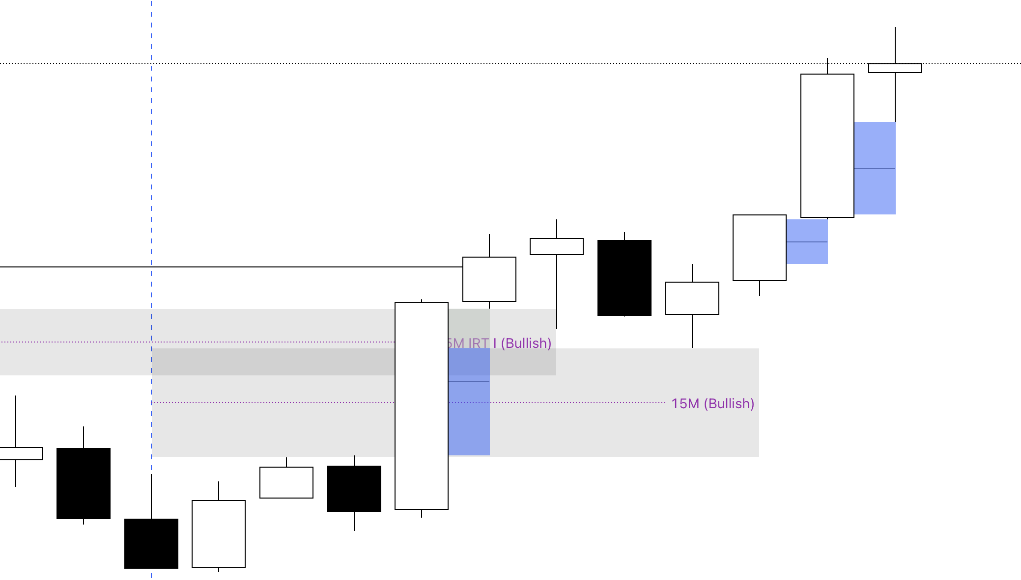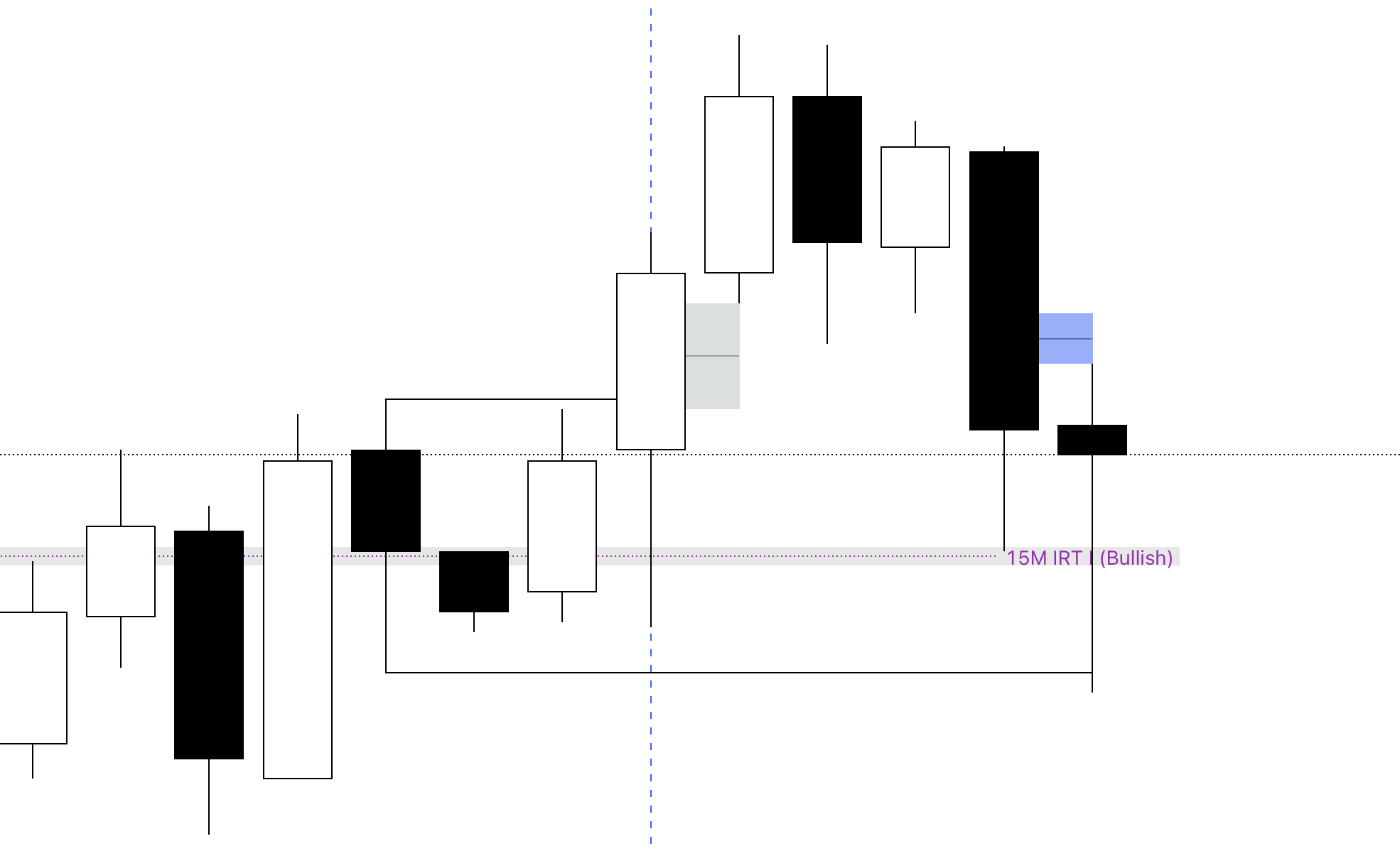 Confluences: A 15M IRT bullish FVG within a 15M IRT bullish inverse FVG.