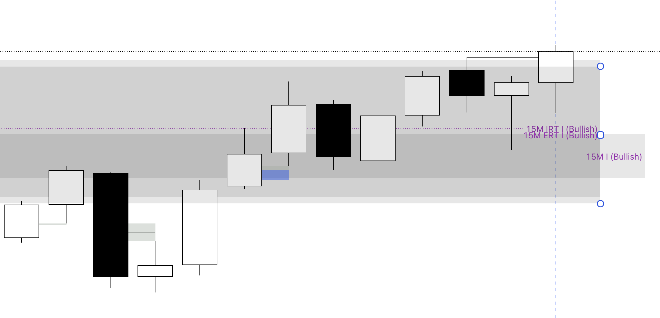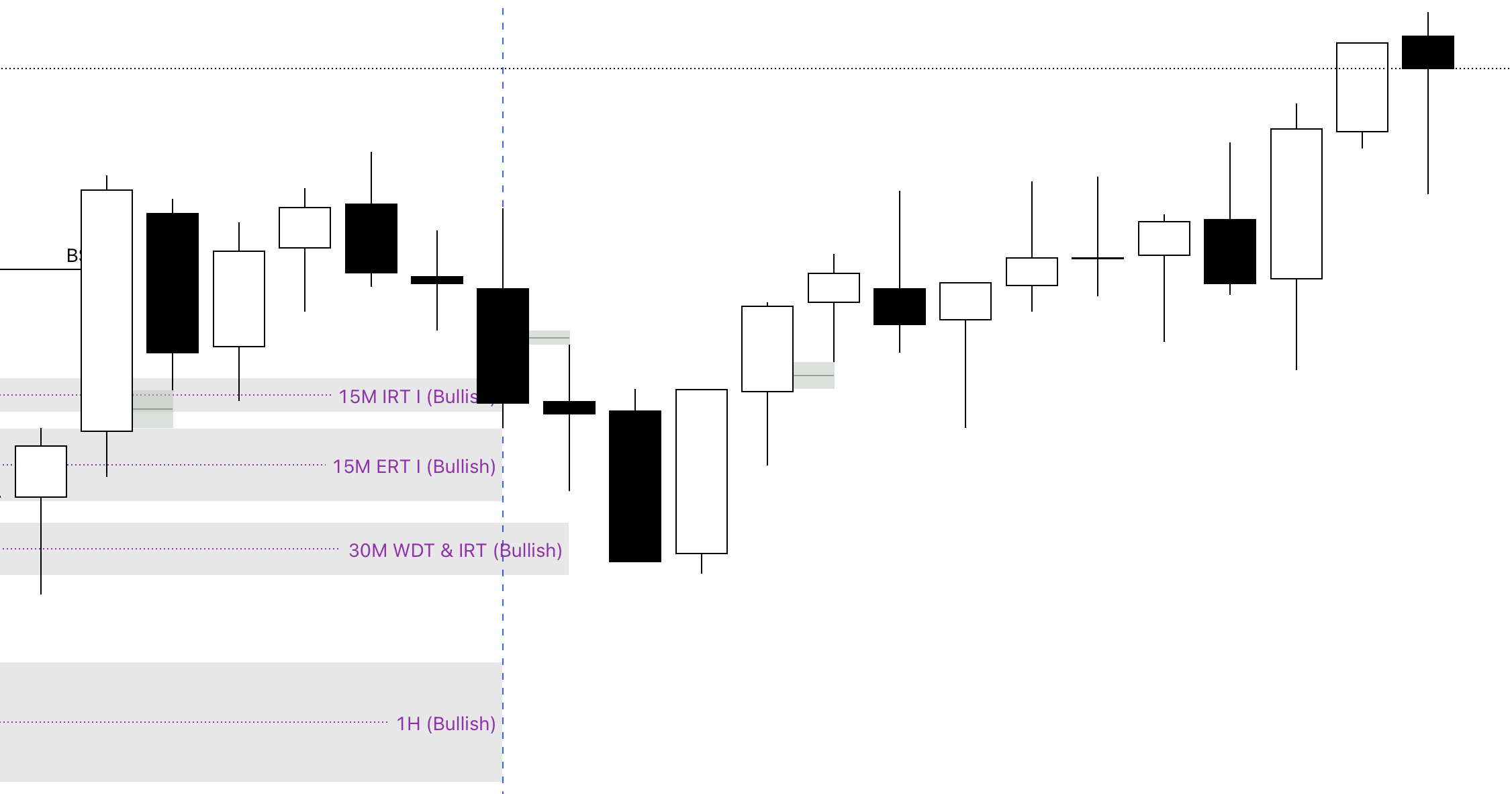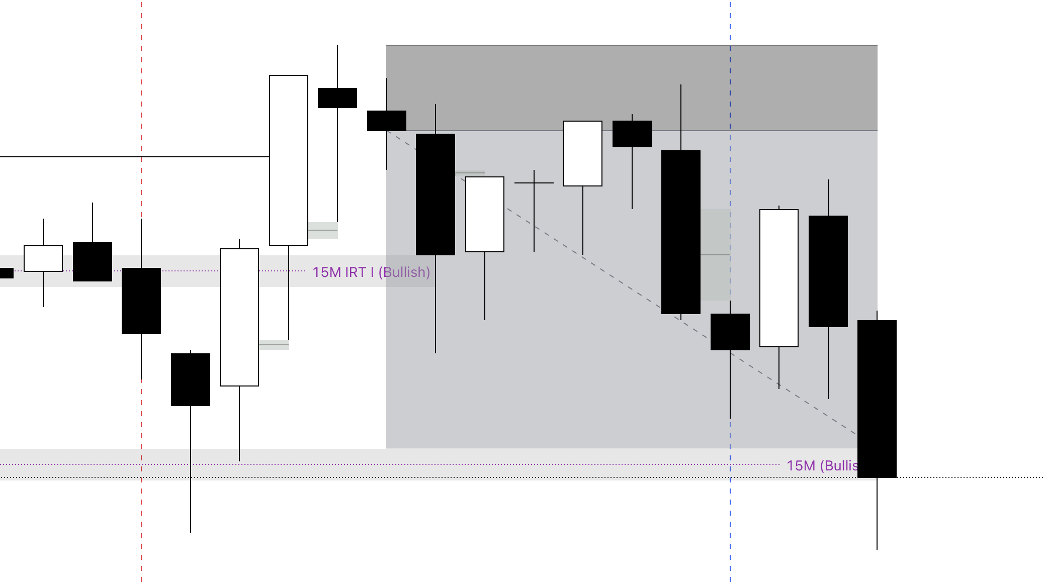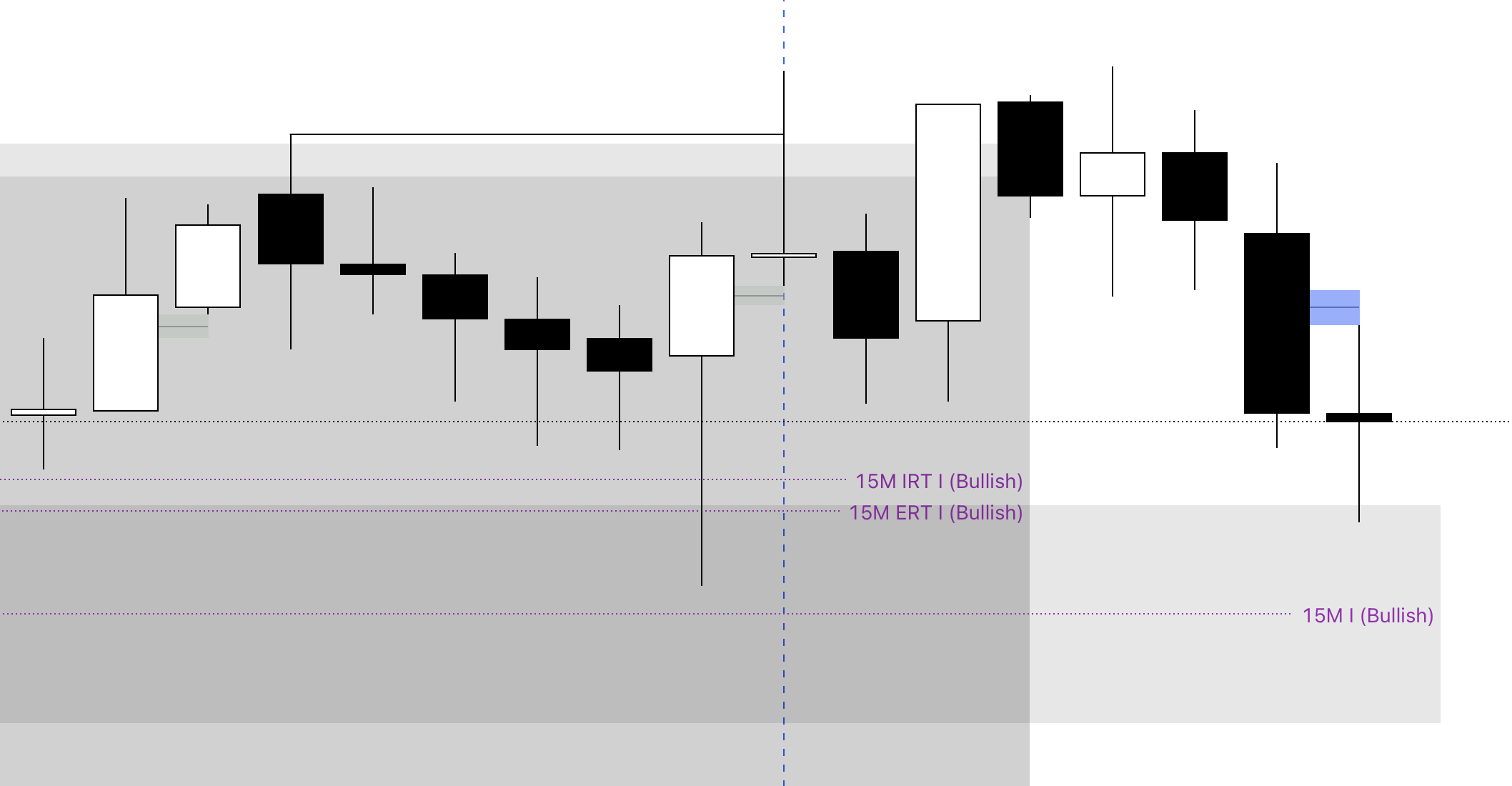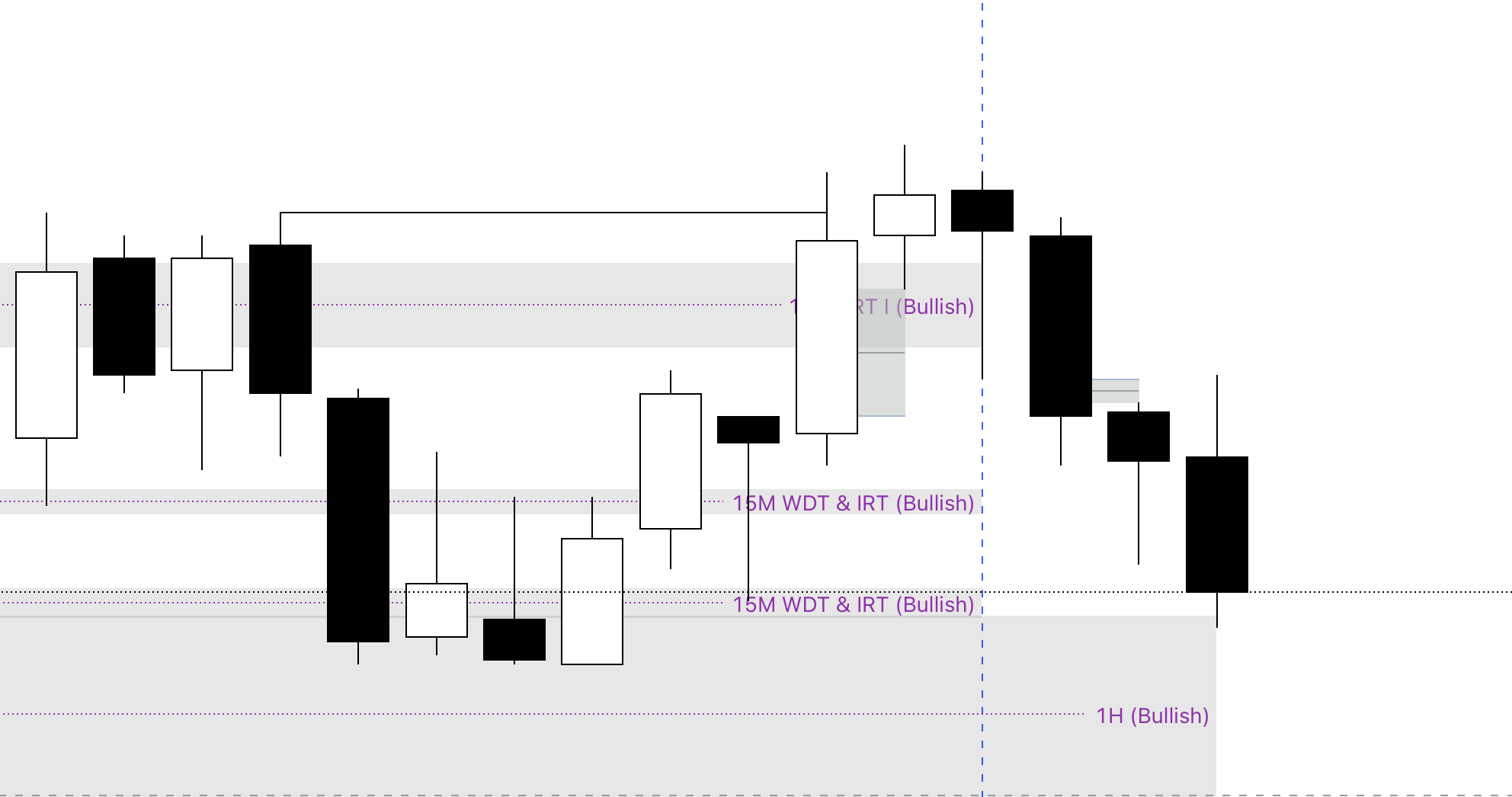 Confluences: A 15M IRT bullish FVG within a 15M IRT bullish inverse FVG.