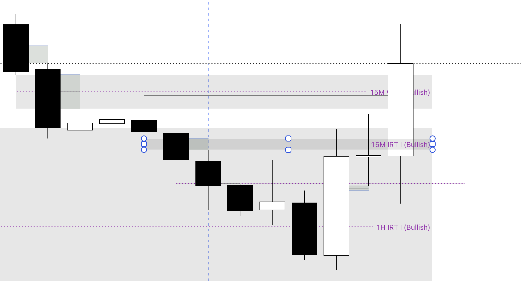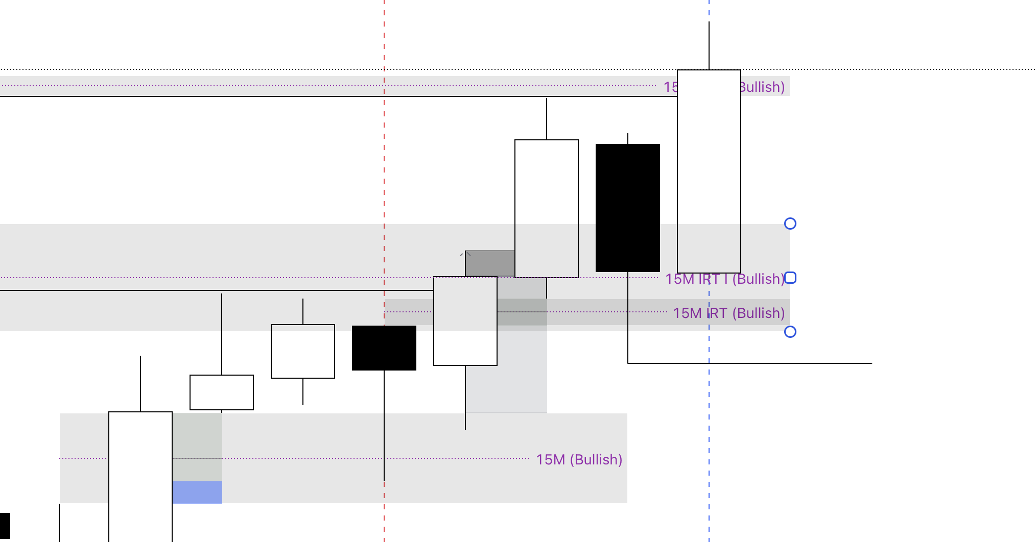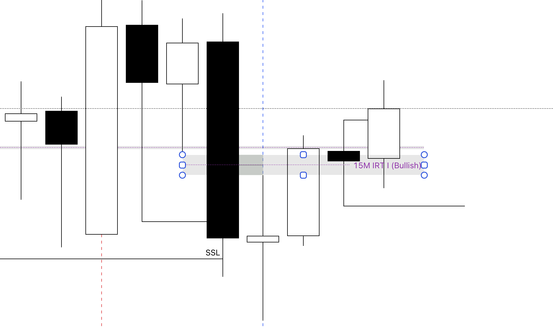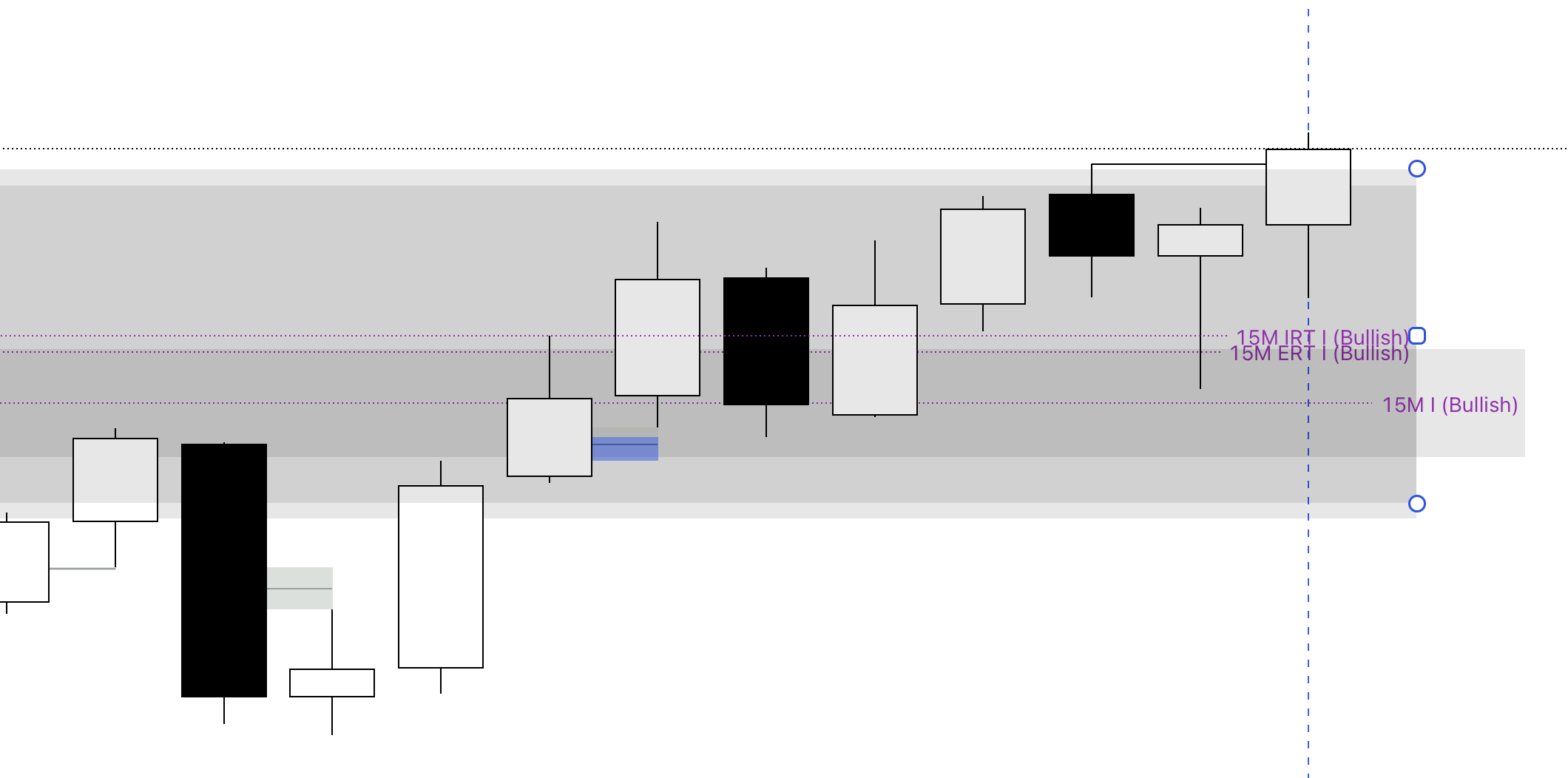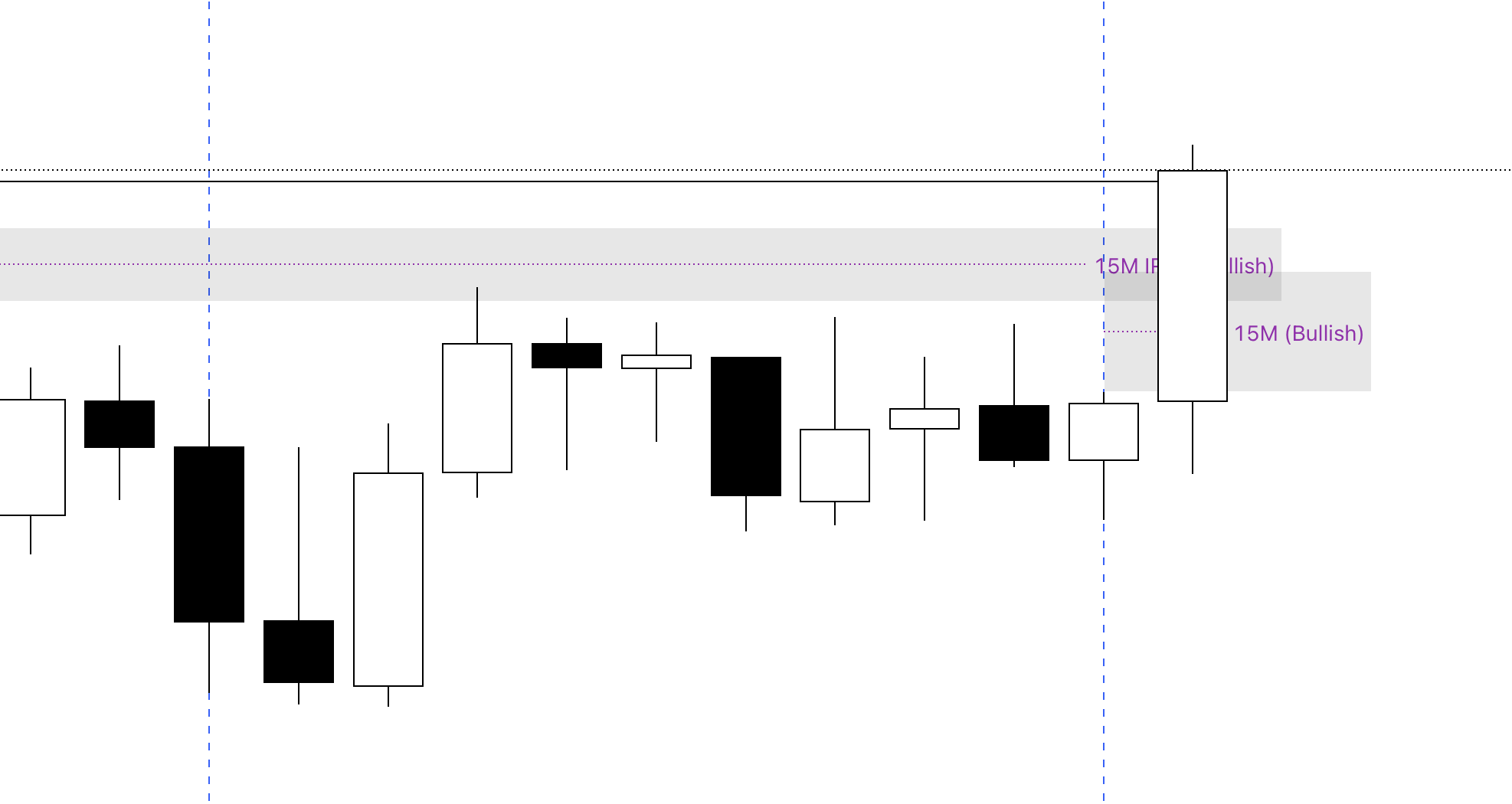 Confluences: A 15M IRT bullish FVG within a 15M IRT bullish inverse FVG.