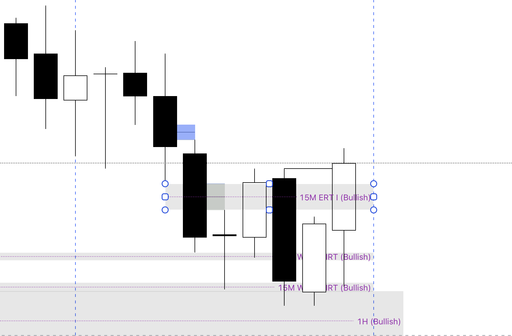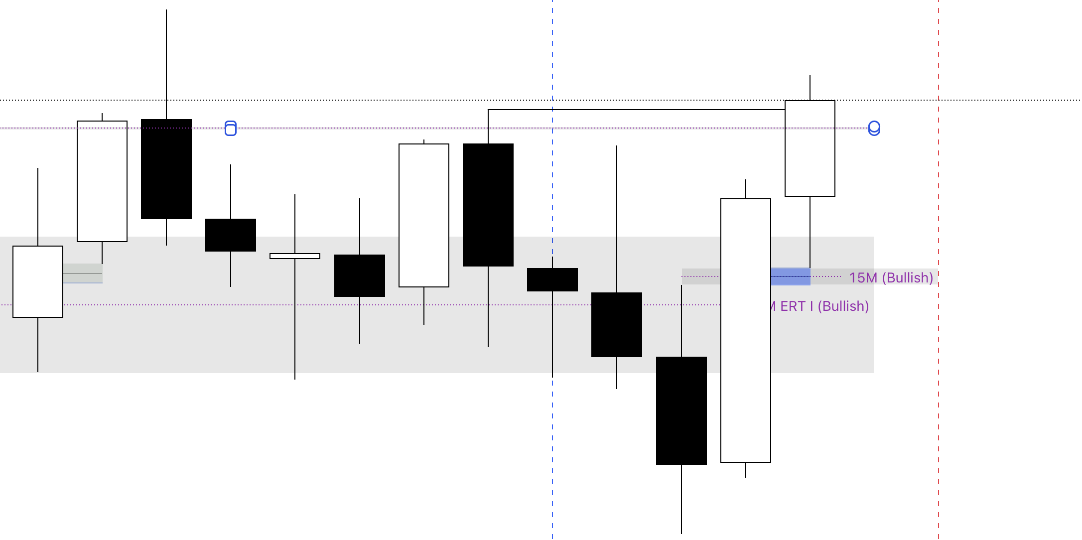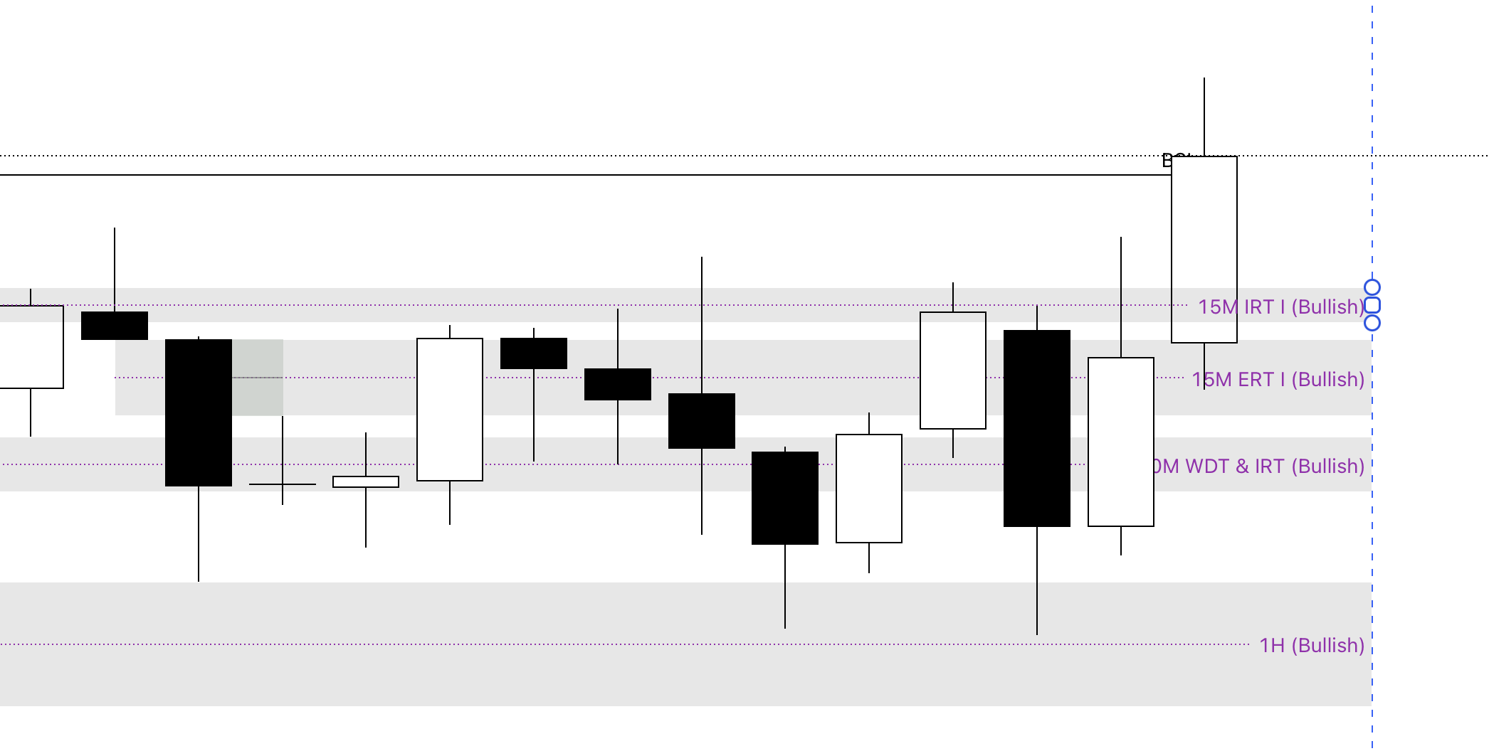 Confluences: 15M WDT & IRT bullish FVG beneath a 15M ERT bullish inverse FVG.
