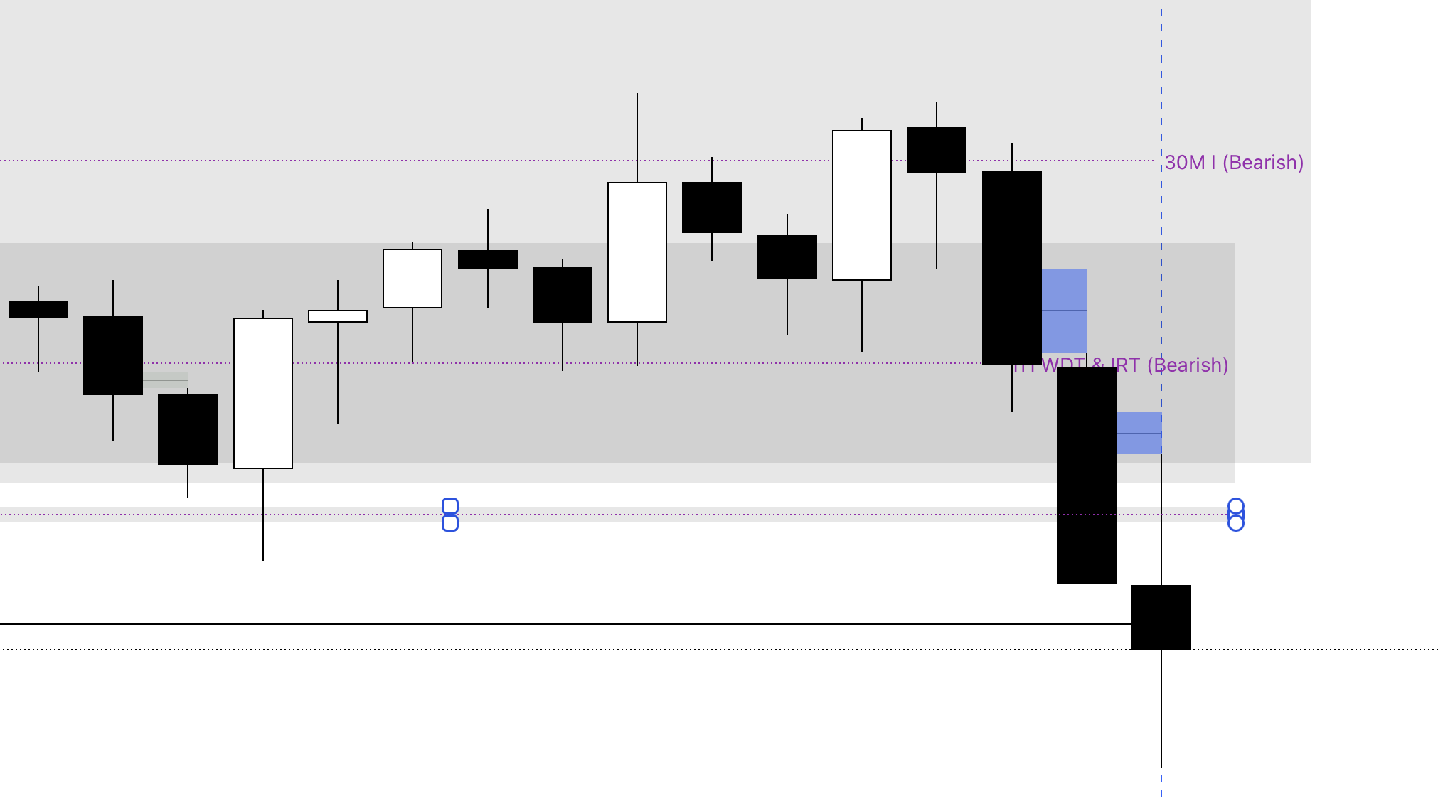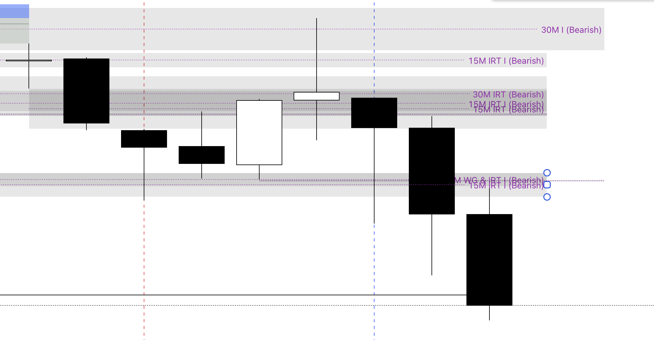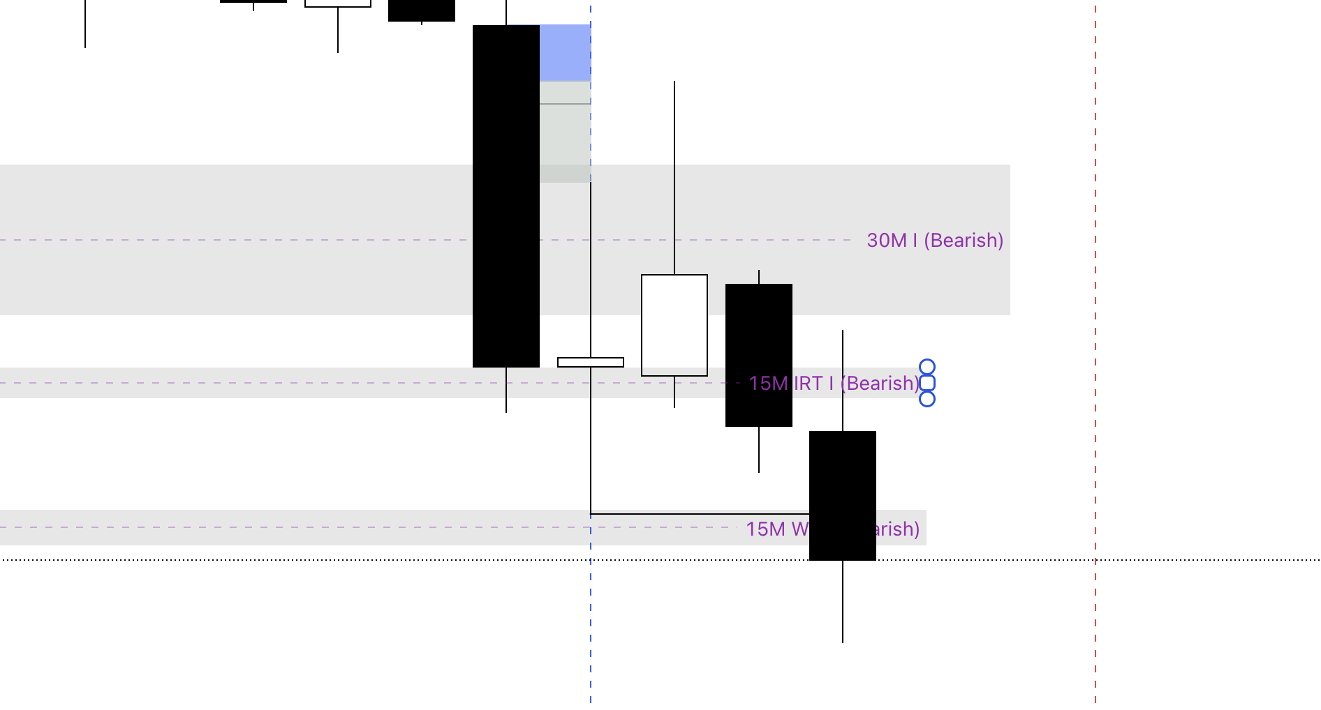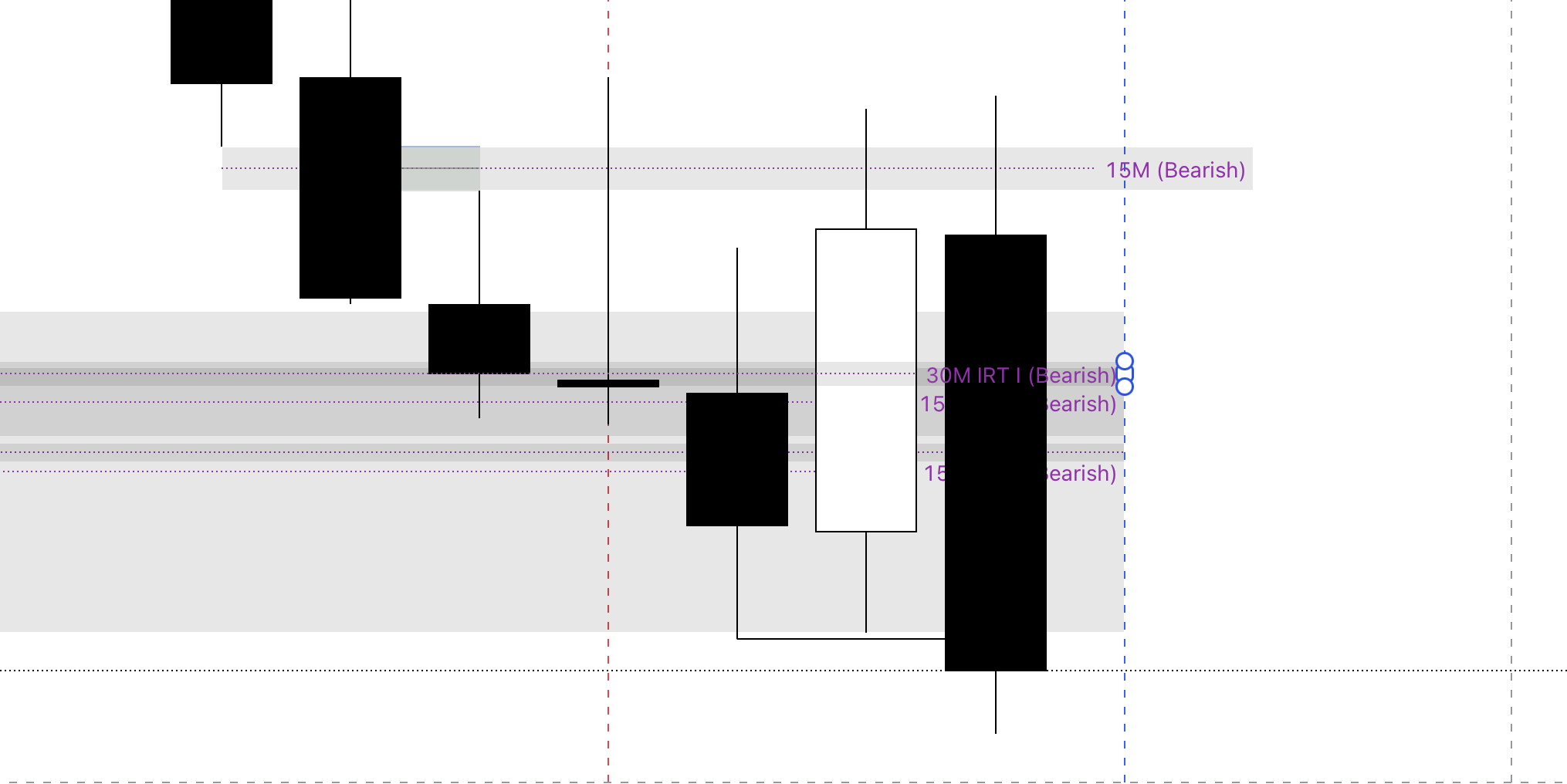 Confluences: A 30M bearish inverse FVG above a bearish; 15M IRT inverse FVG.