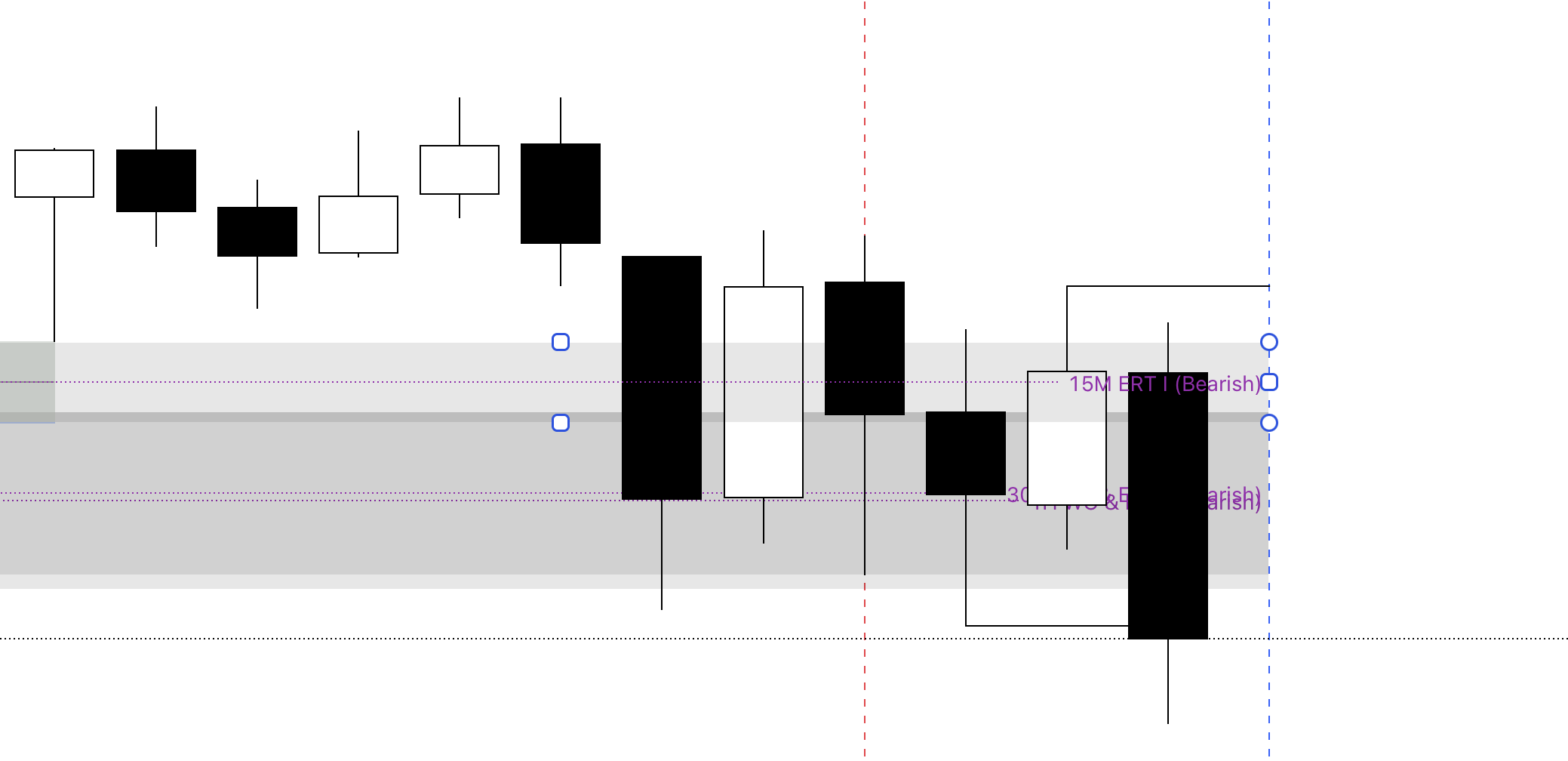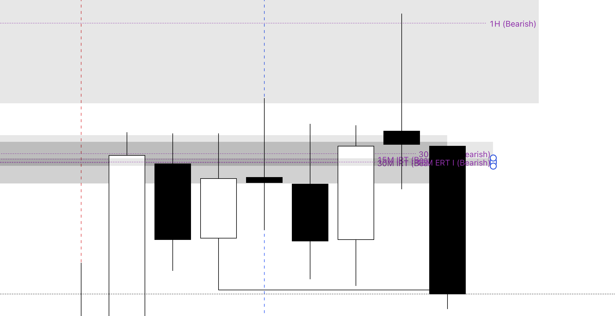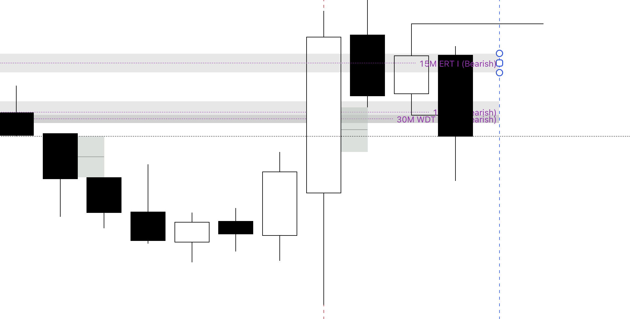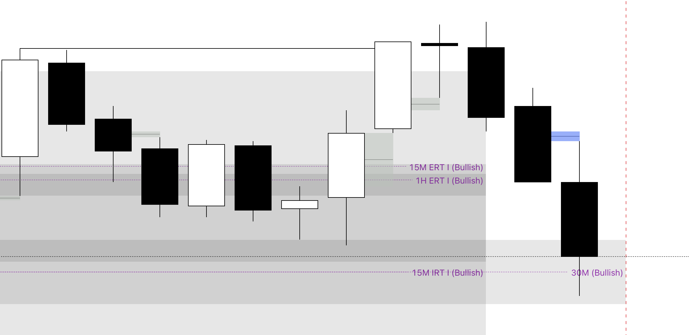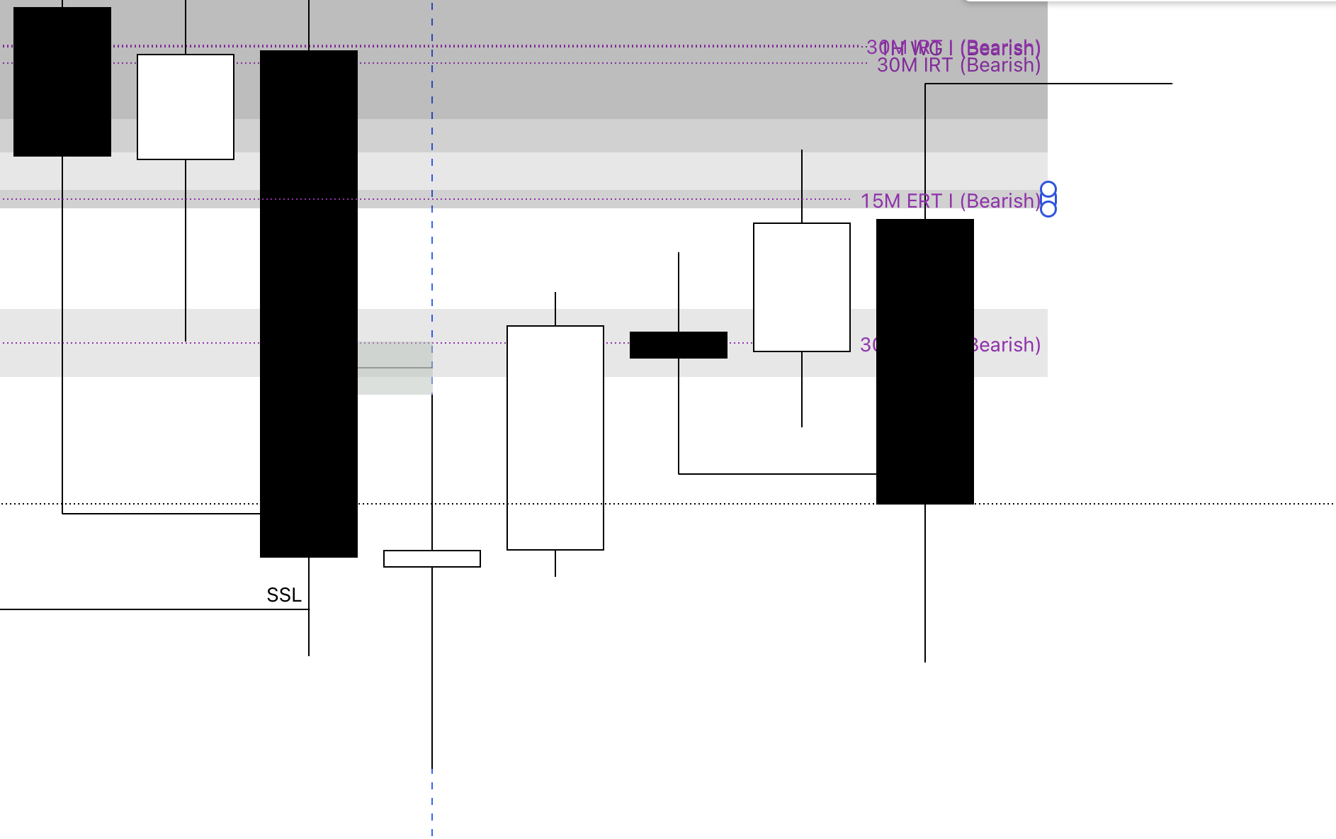Confluences: A 30M IRT bearish FVG above a 15M ERT bearish inverse FVG.