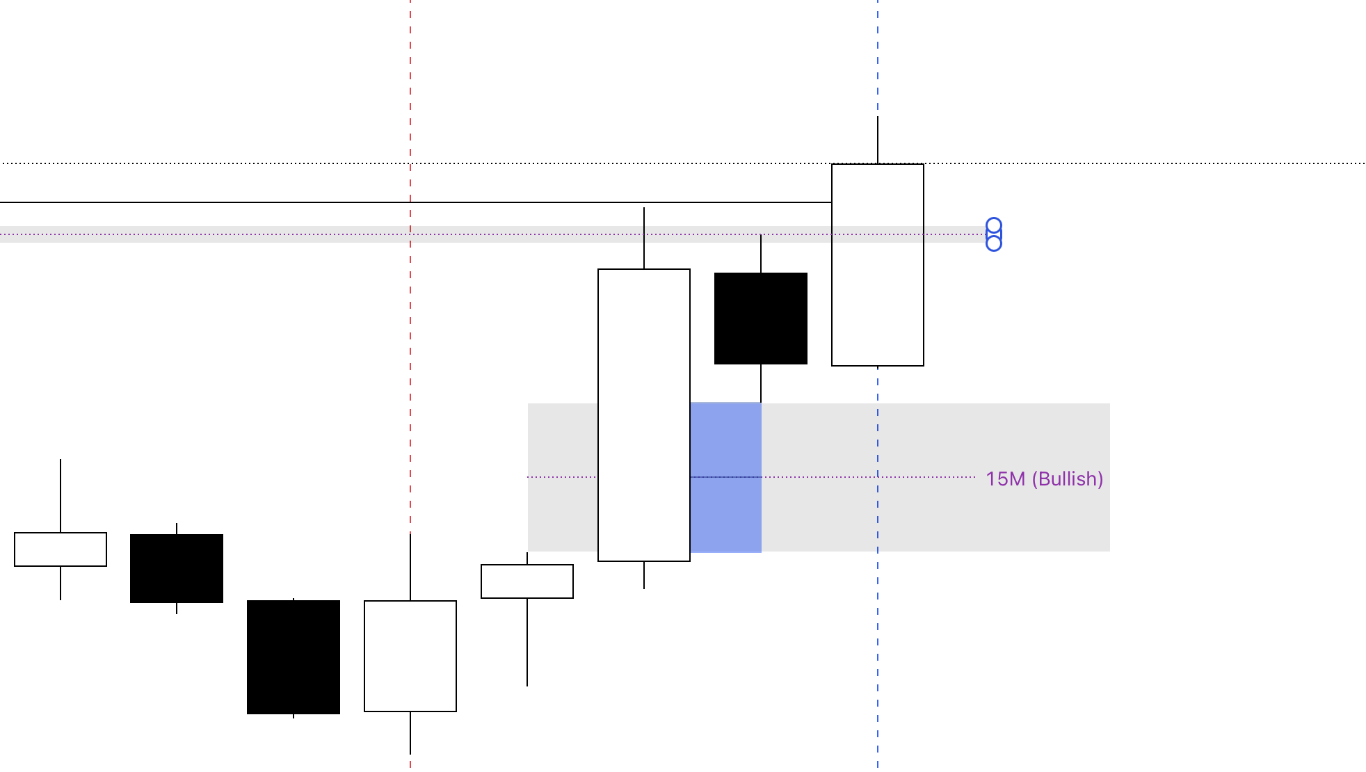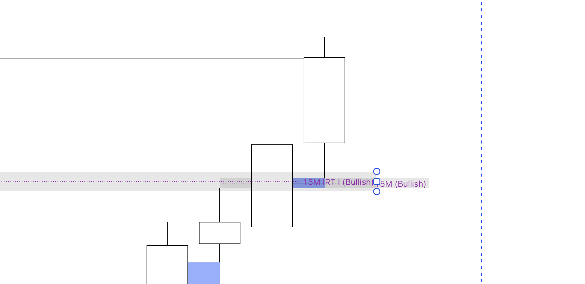 Confluences: A 15M bullish FVG within a 15M IRT bullish inverse FVG.
