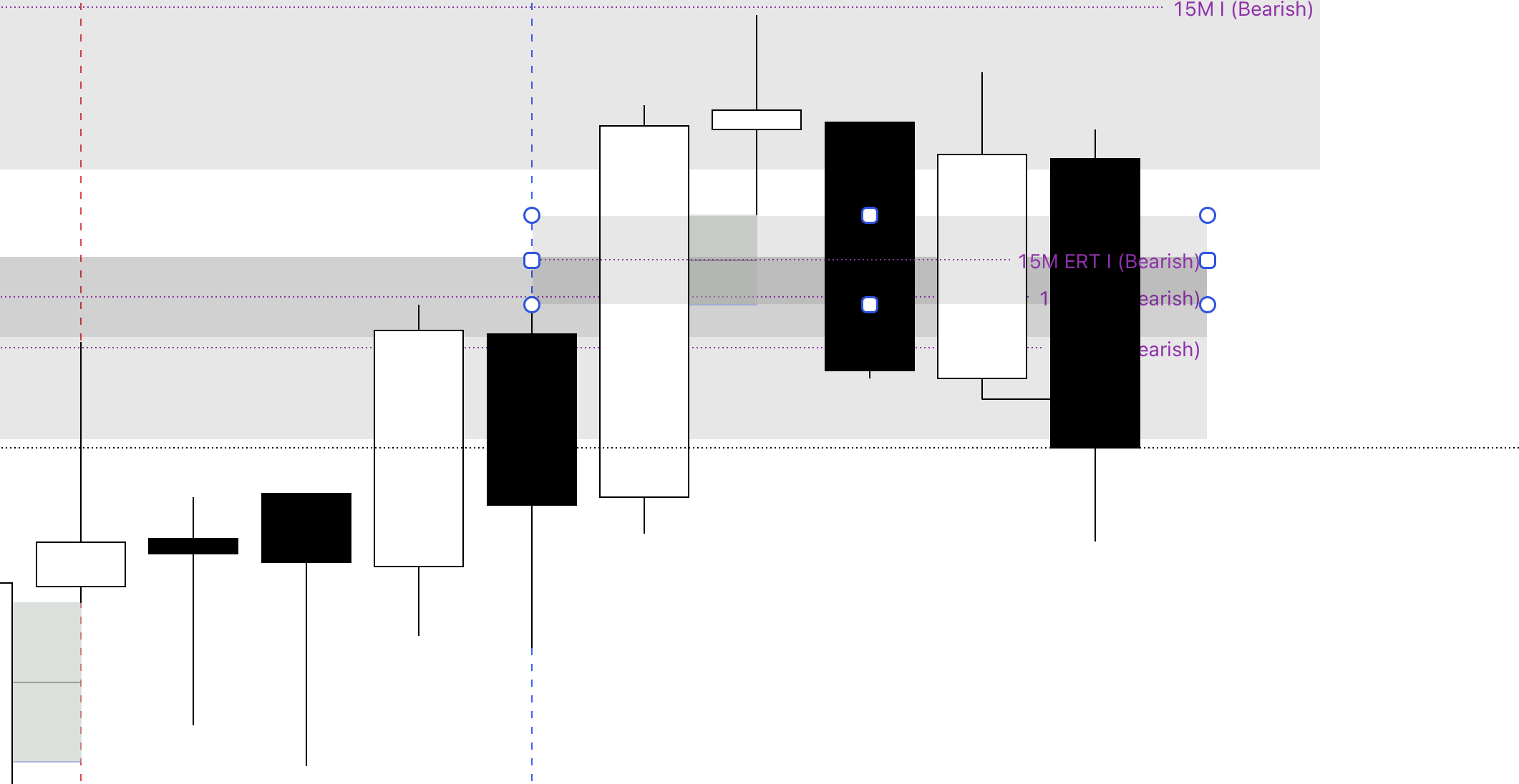Confluences: A 15M bearish inverse FVG above a bearish; 15M ERT inverse FVG.