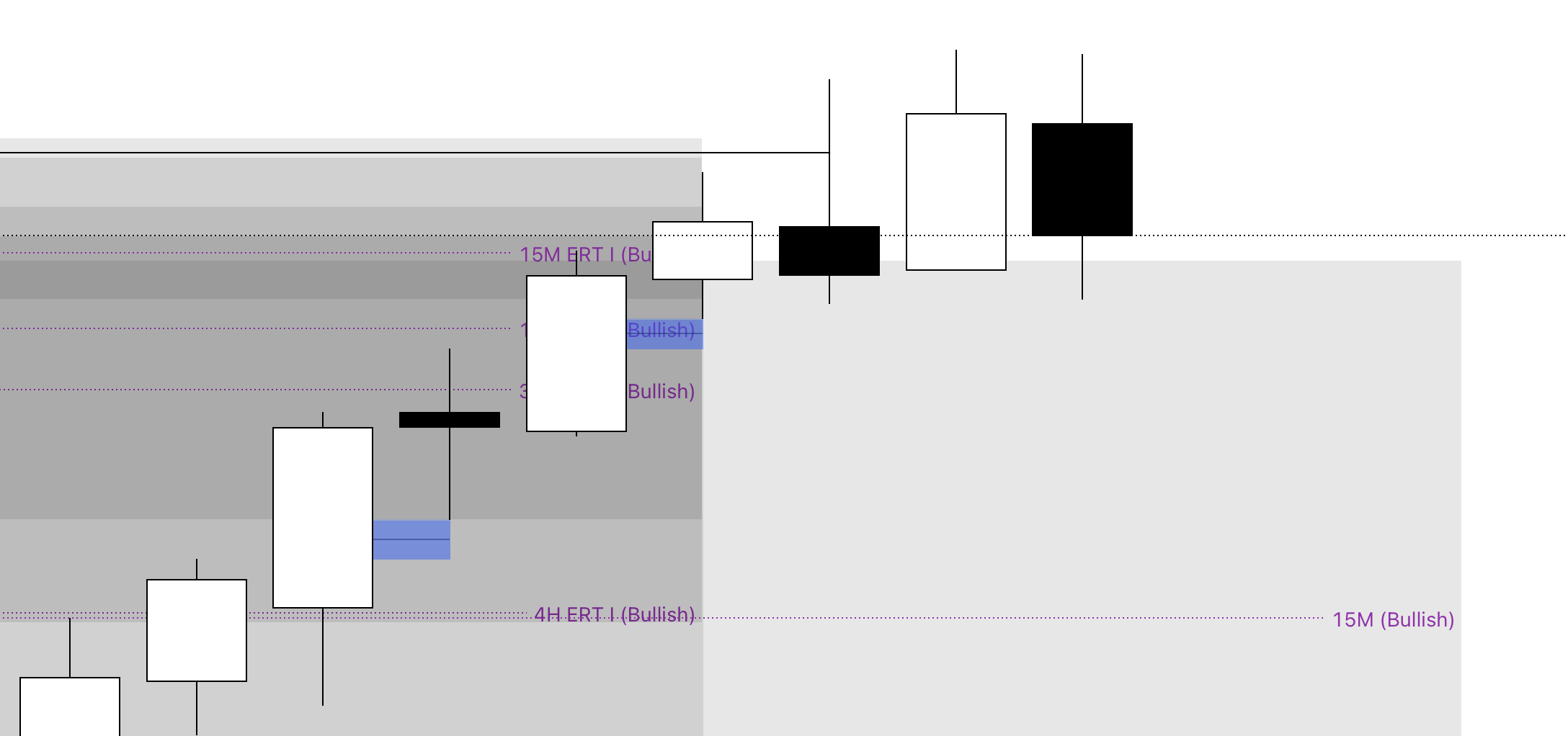 Confluences: A 1H ERT inverse FVG within a 15M ERT bullish inverse FVG.