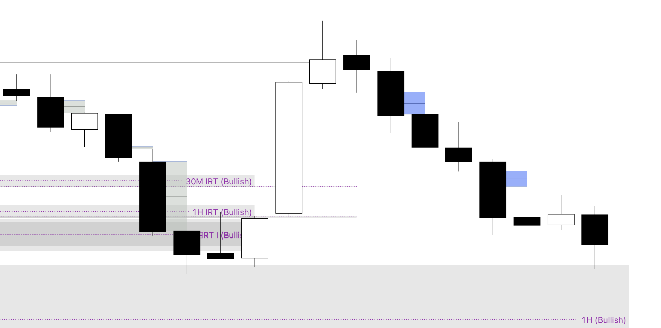 Confluences: 30M IRT bullish inverse FVG within a 15M IRT bullish inverse FVG.