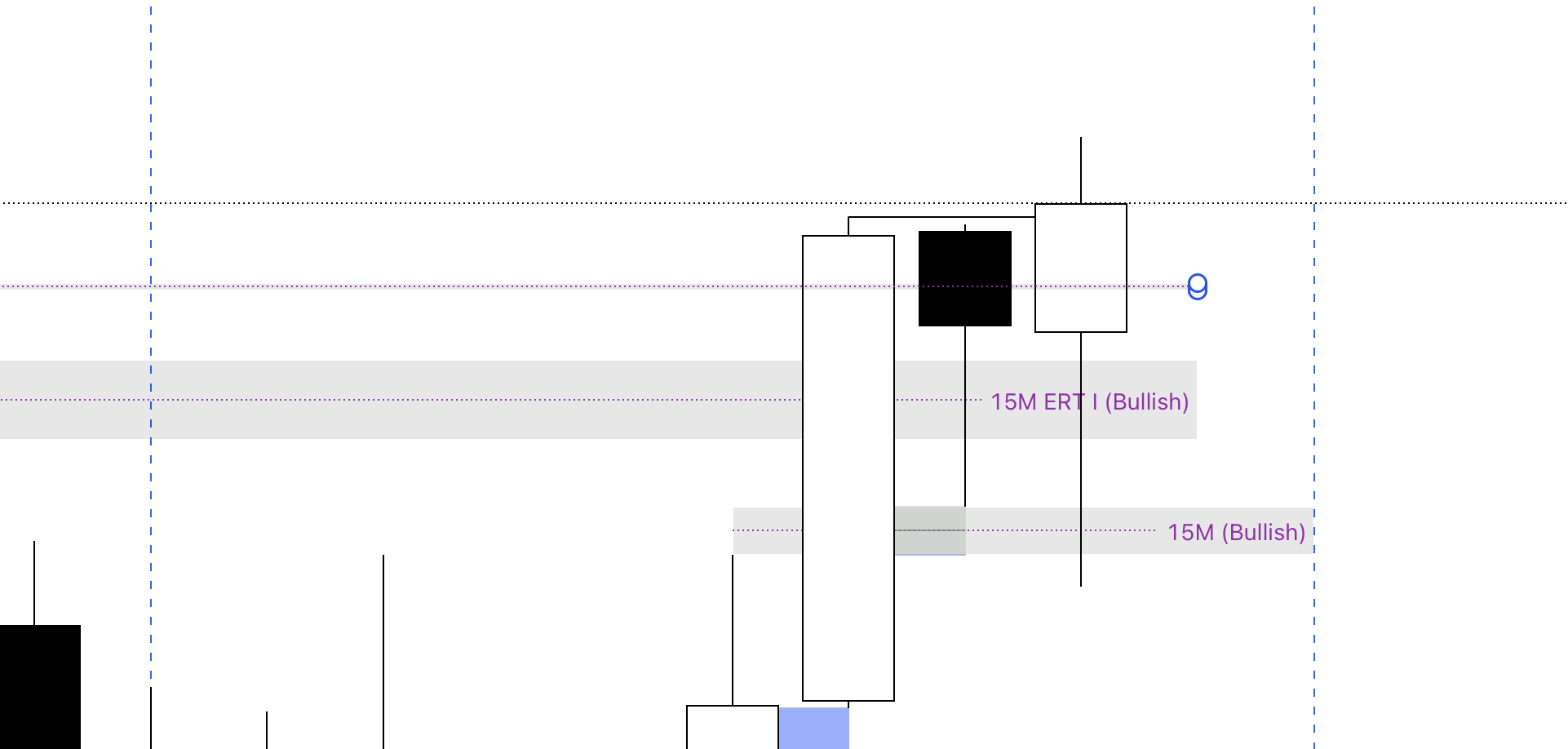 Confluences: A 30M bullish inverse FVG beneath a 15M ERT bullish inverse FVG.