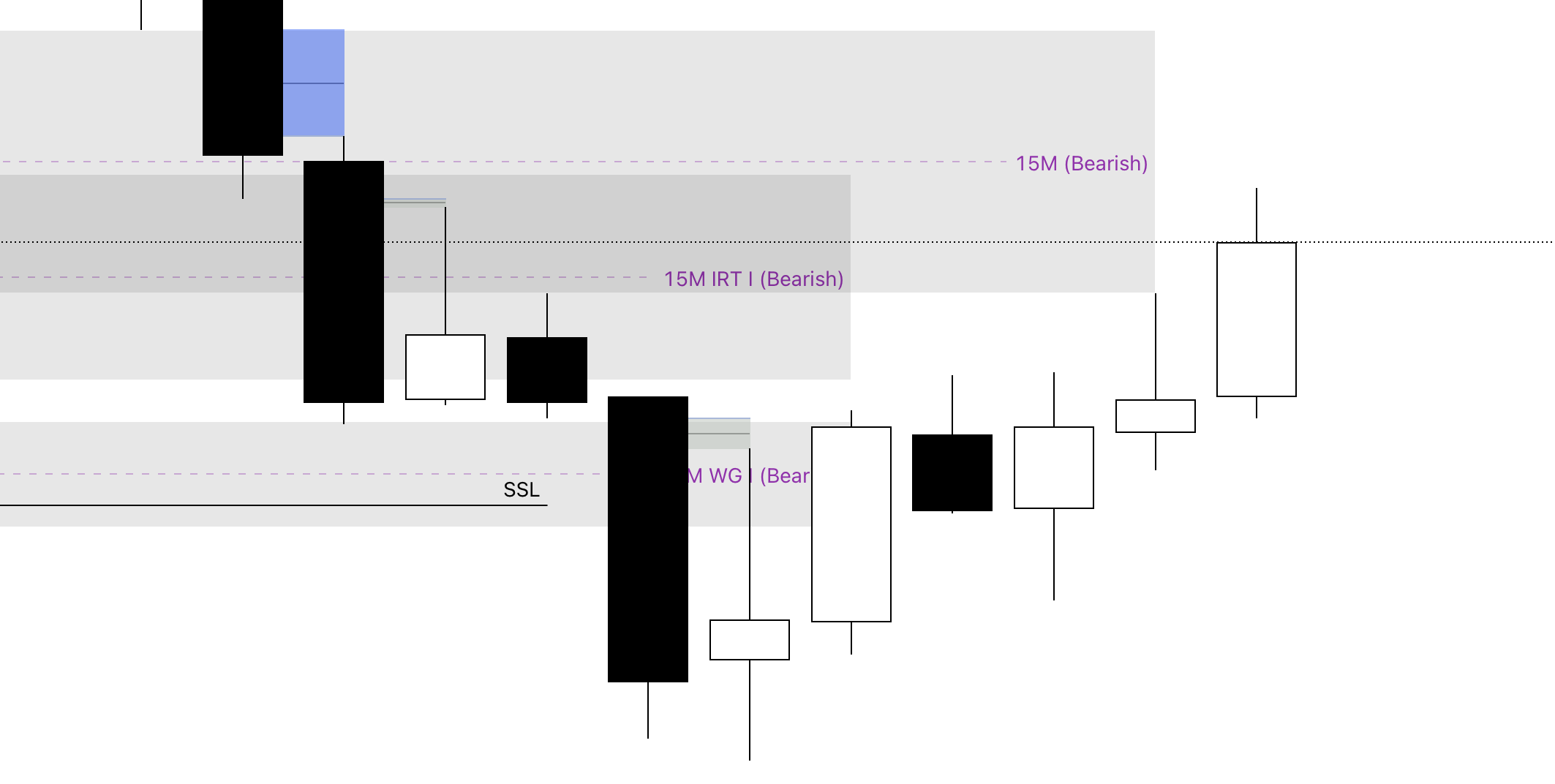 Result: 15M WG & IRT bearish inverse FVG was sought.