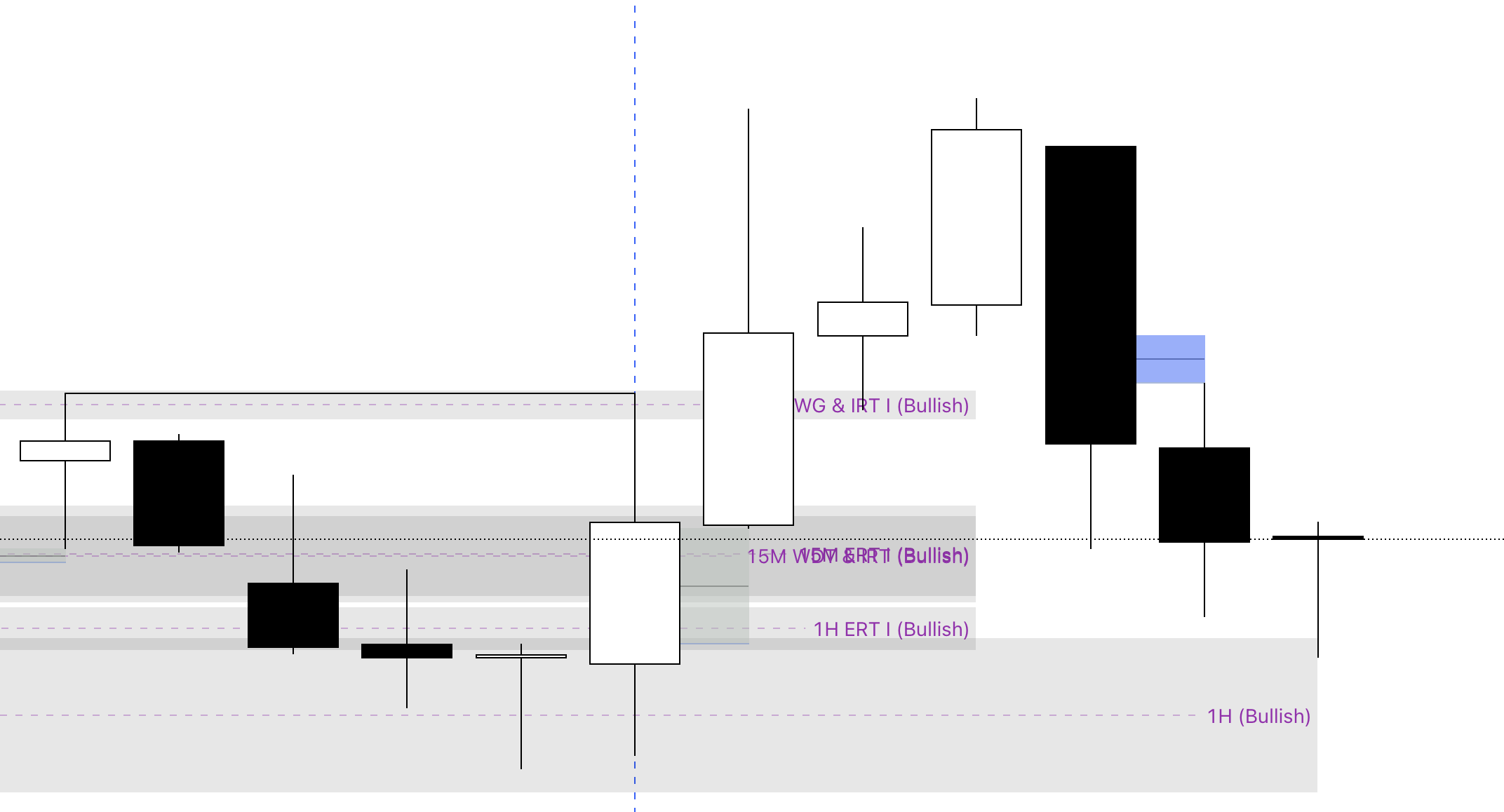 Confluences: A 15M ERT bullish inverse FVG beneath a bullish; 15M WG & IRT inverse FVG.