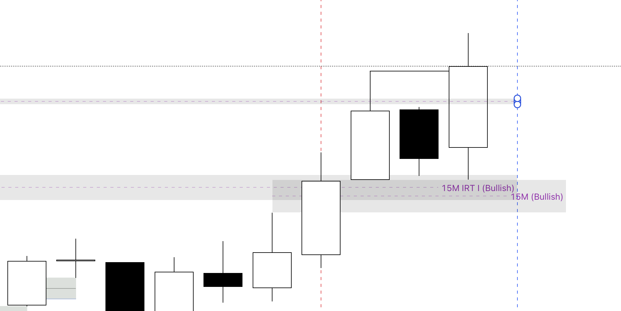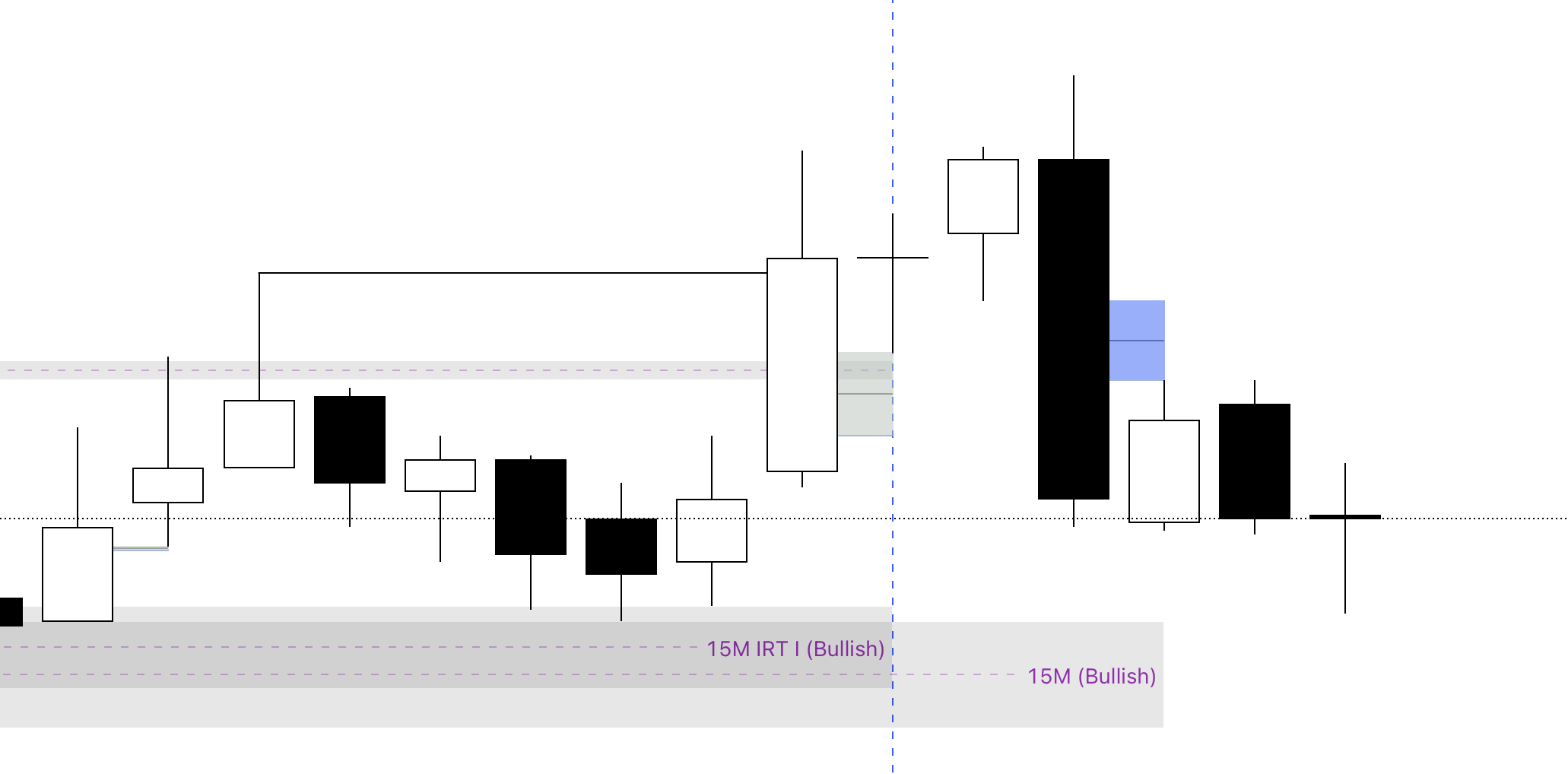 Confluences: A 15M IRT bullish inverse FVG beneath a bullish; 15M ERT inverse FVG.