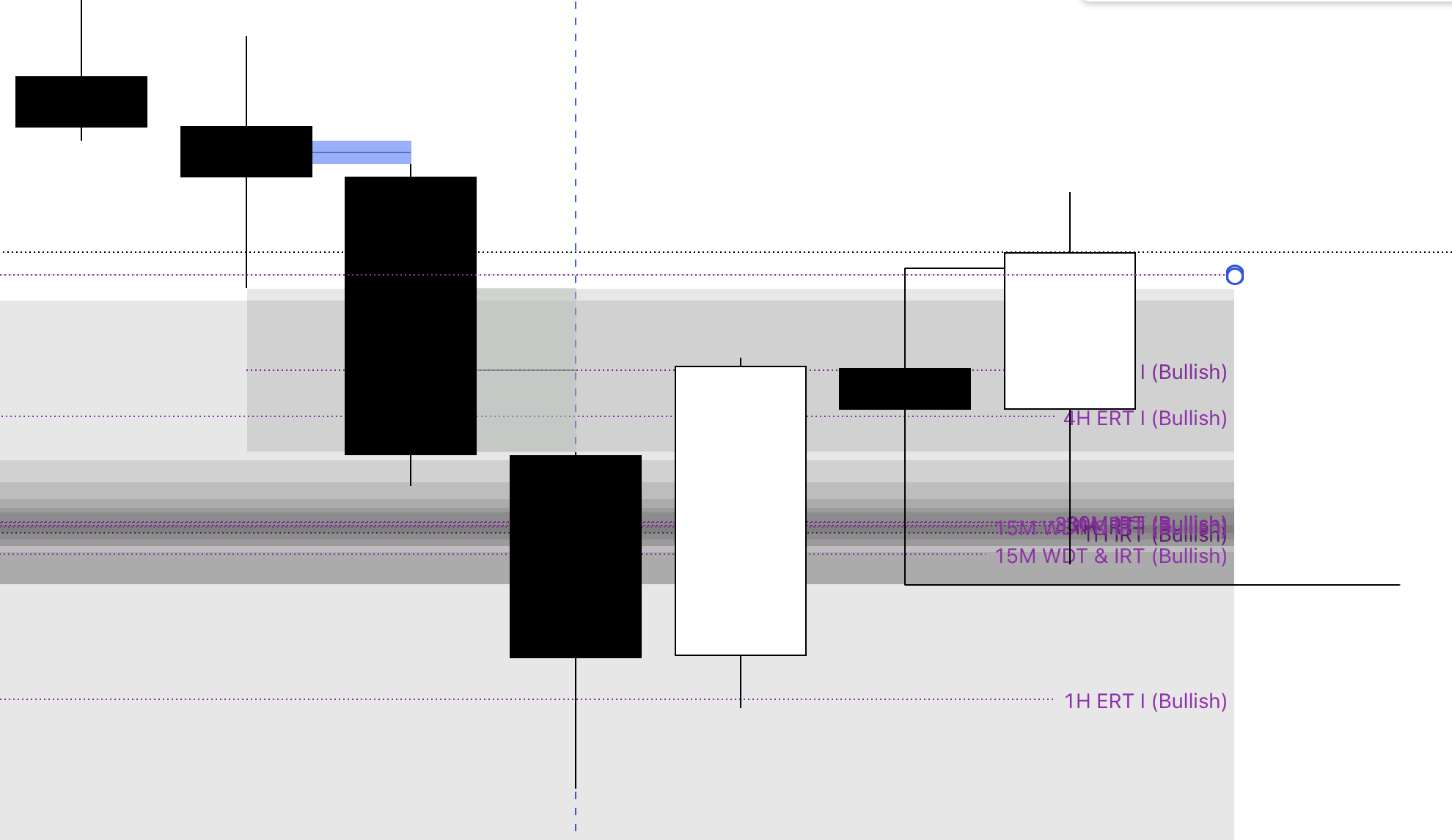 Confluences: A 15M WG bullish inverse FVG beneath a 4H IRT bullish FVG.