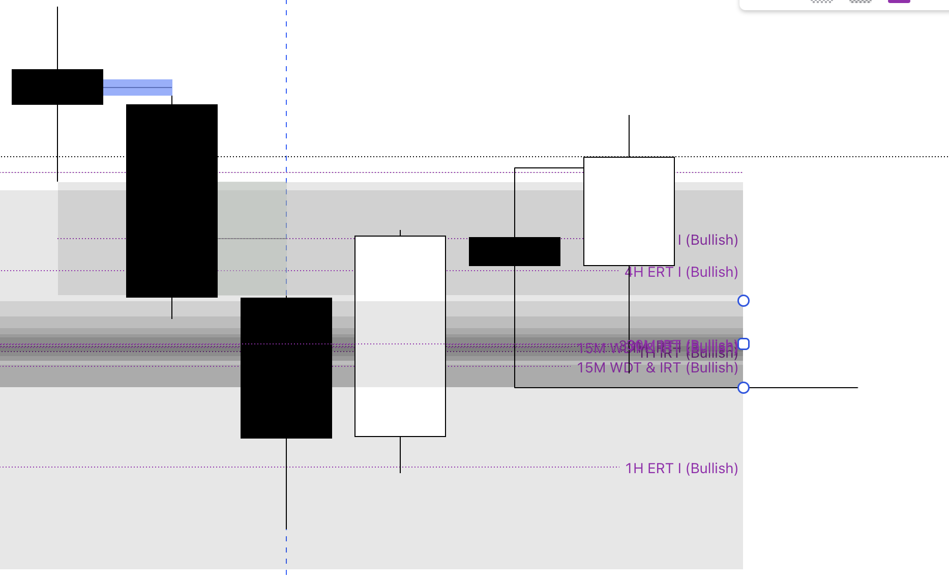 Confluences: A 15M bullish inverse FVG beneath a 4H IRT bullish FVG.