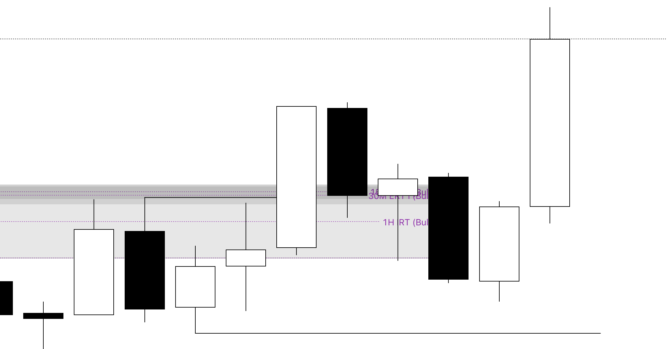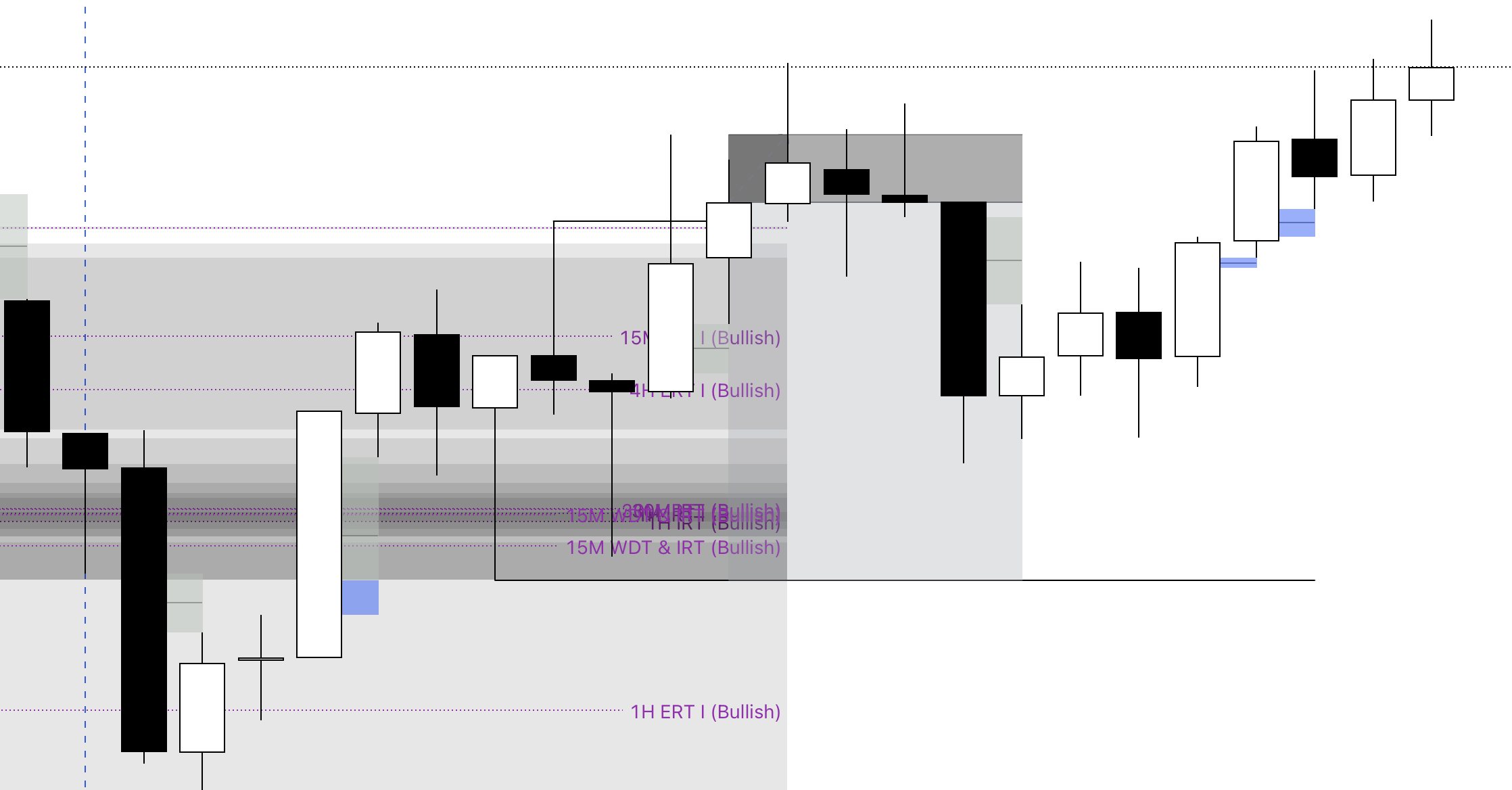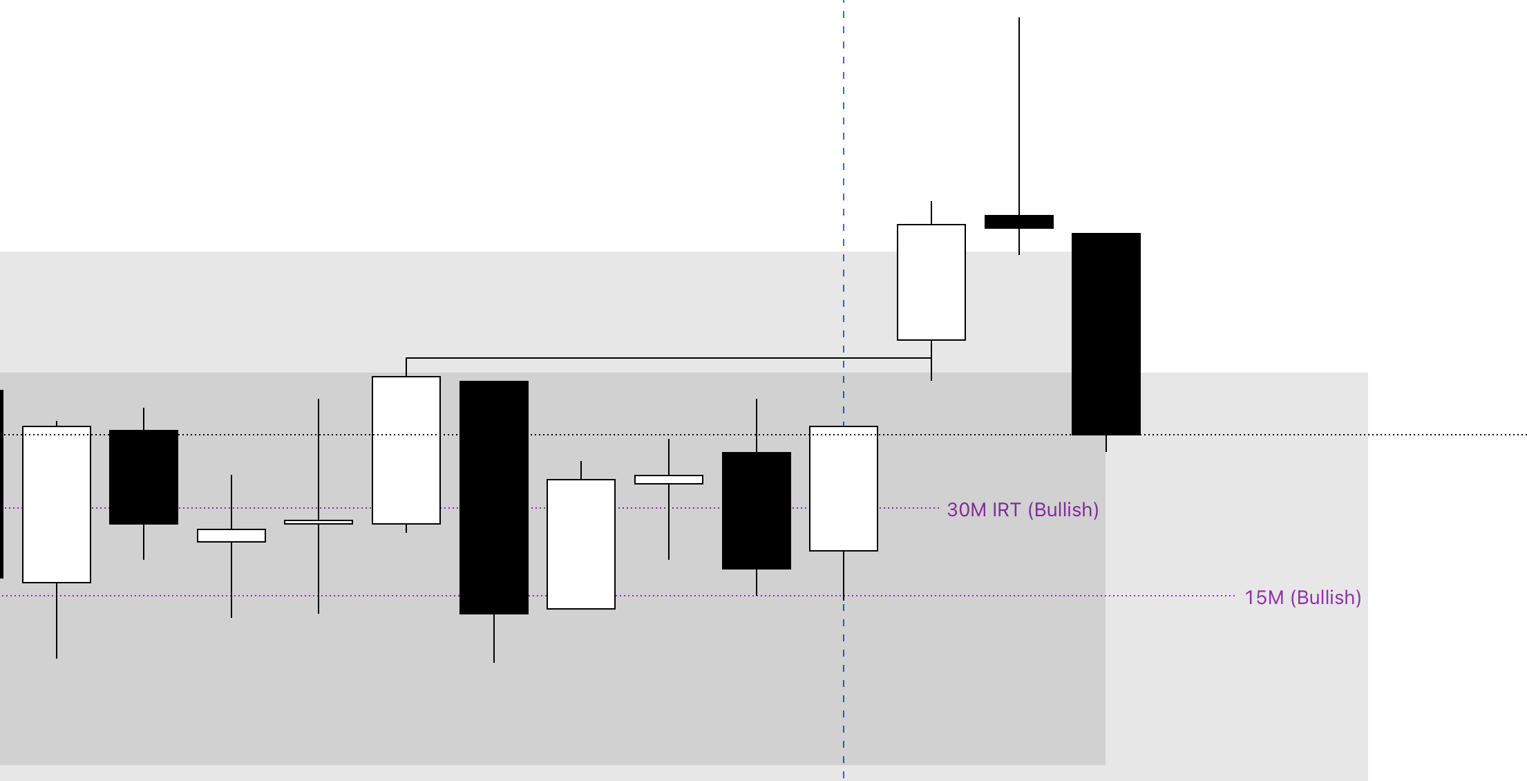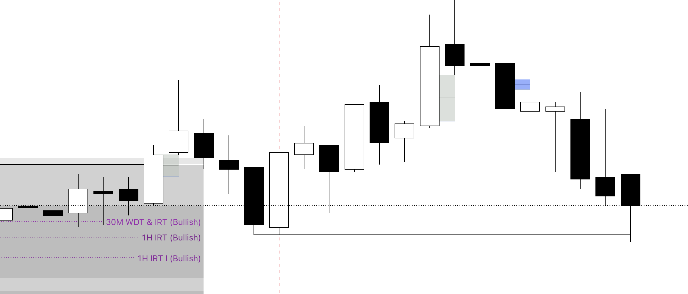 Confluences: A 1H IRT bullish FVG within a 30M IRT bullish FVG.