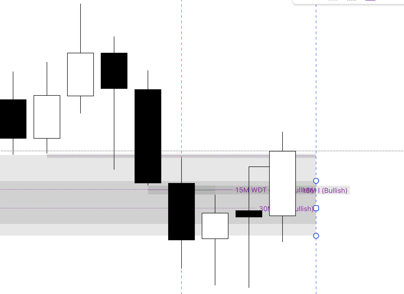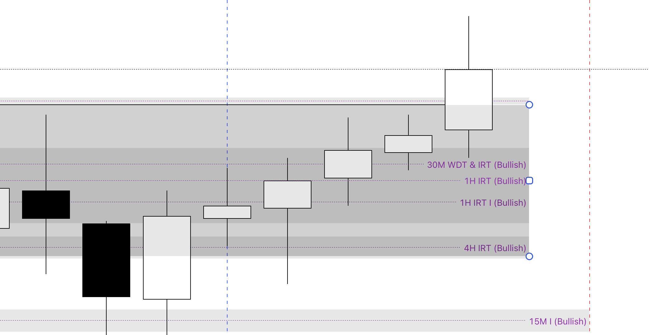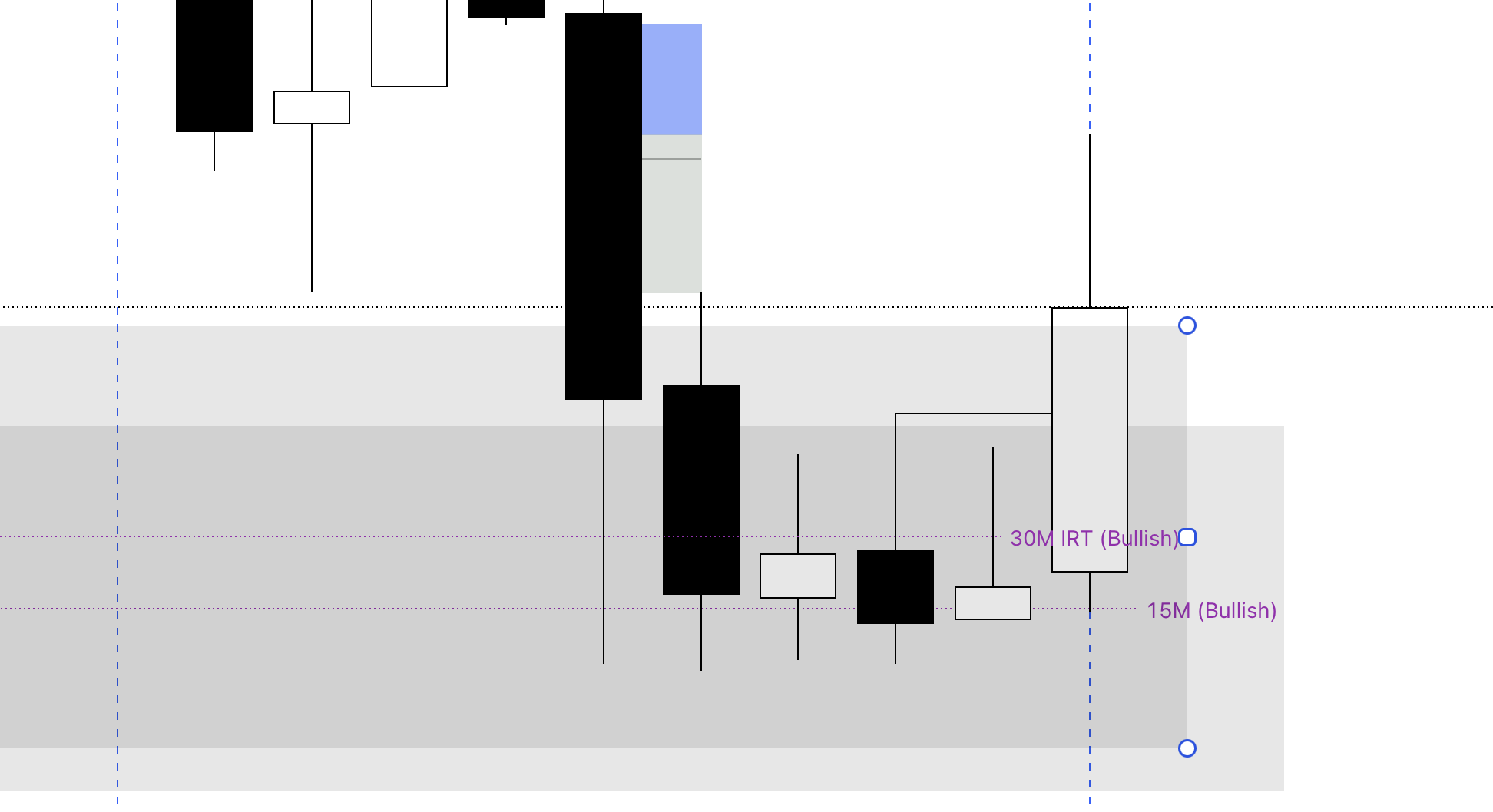 Confluences: 30M IRT bearish FVG and 15M IRT bearish FVG at the same level above a 30M WDT & IRT bearish FVG.
