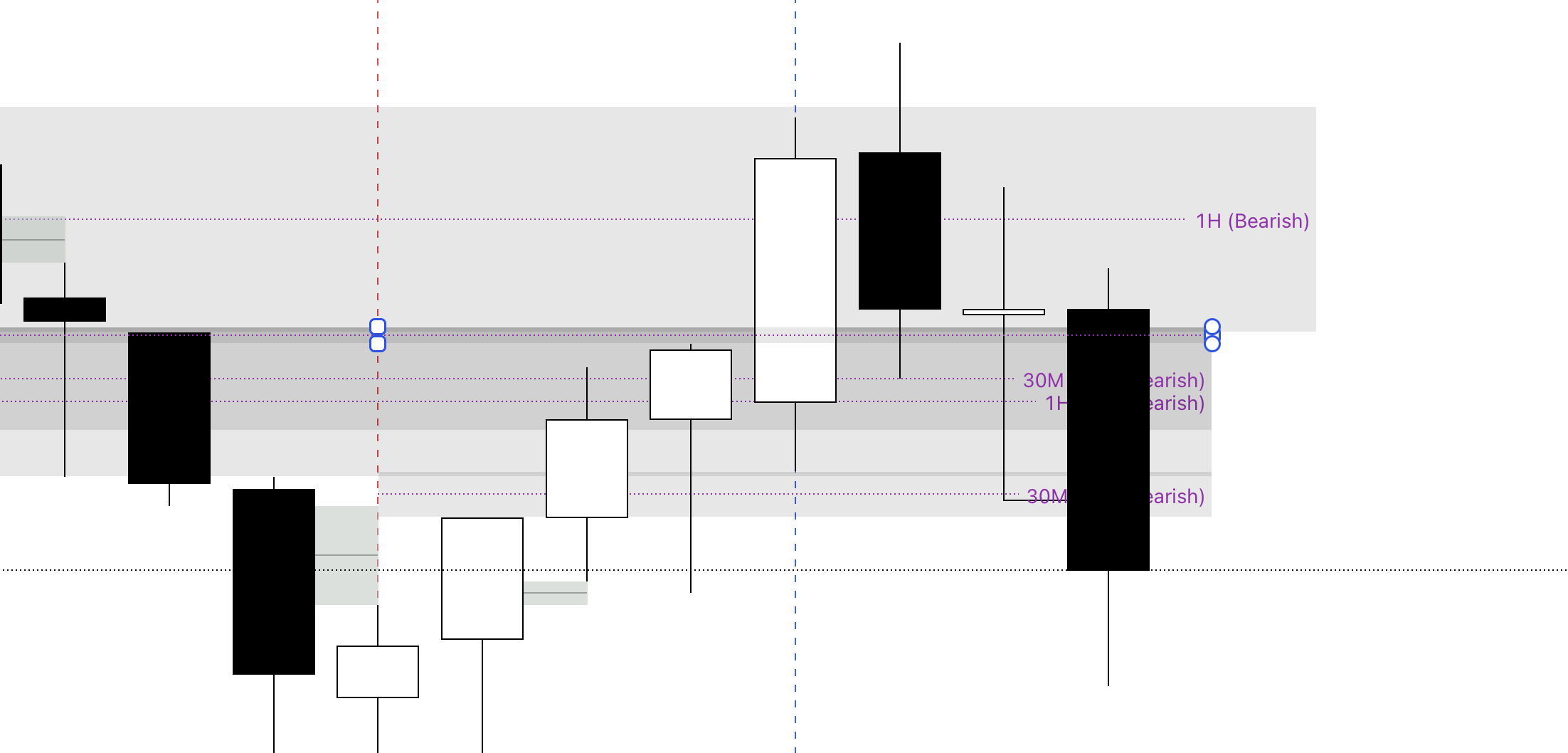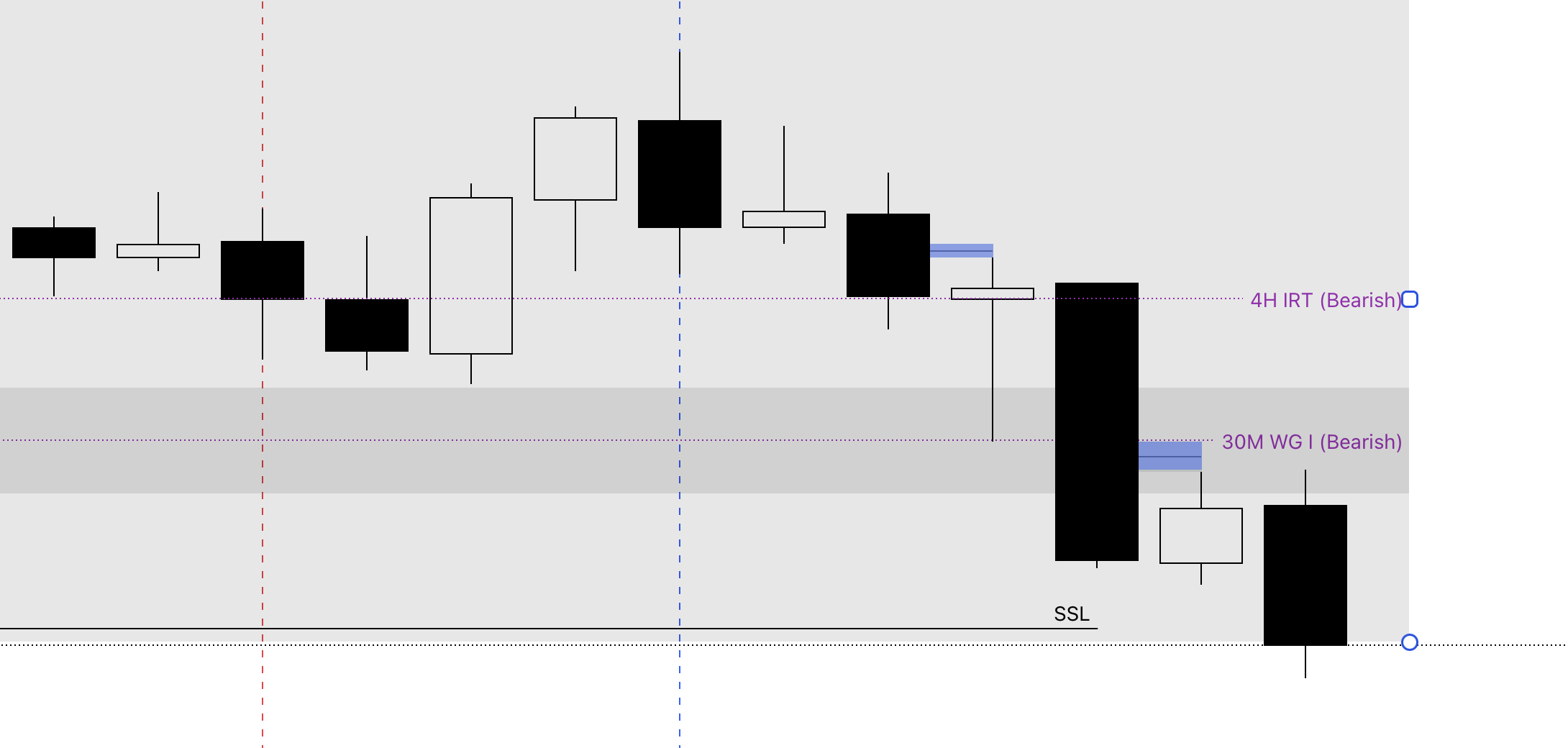 Confluences: A 30M WG bearish inverse FVG within a 4H IRT bearish FVG.