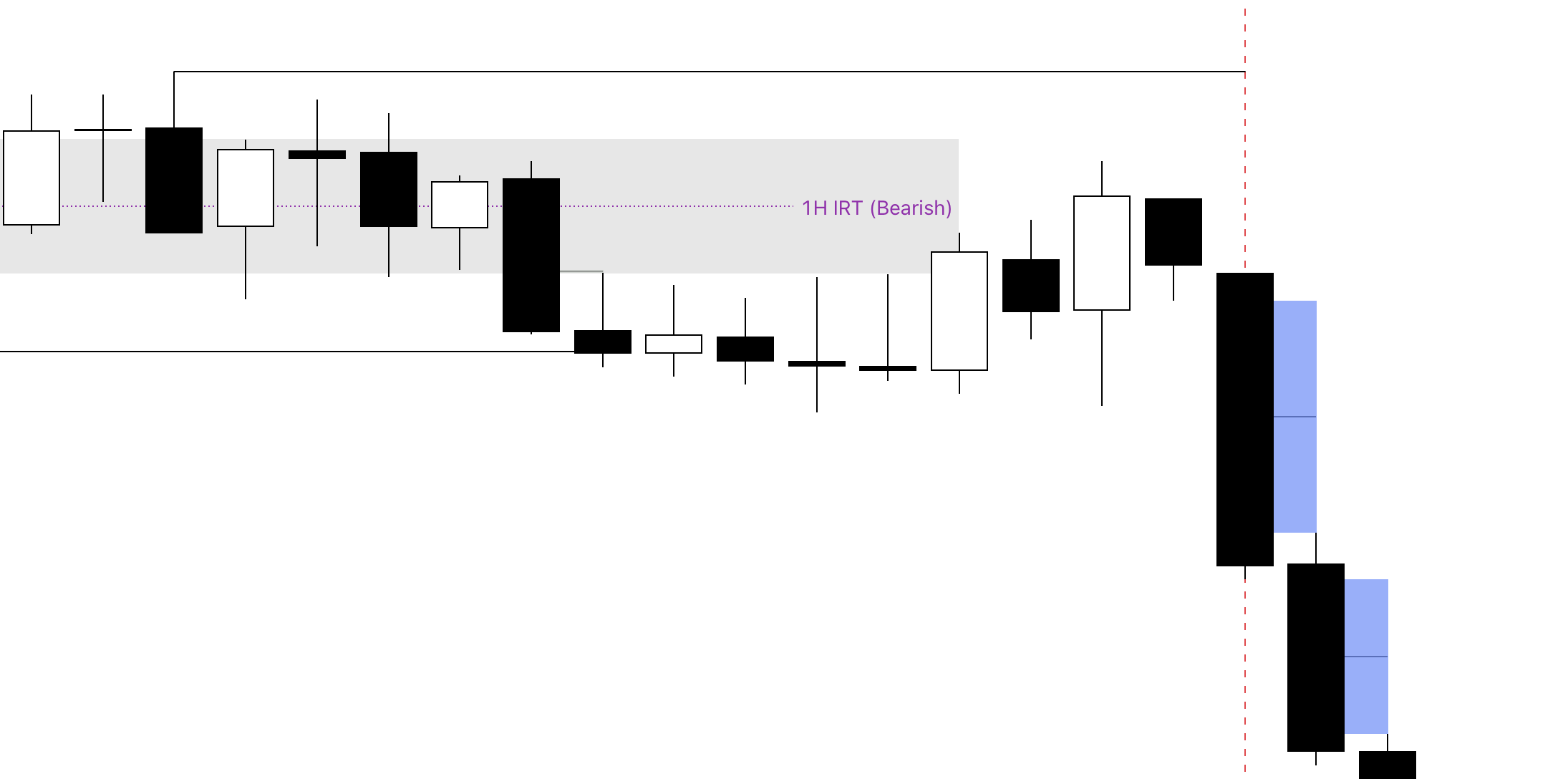 Confluences: A 1H bearish FVG within a 1H IRT bearish FVG.