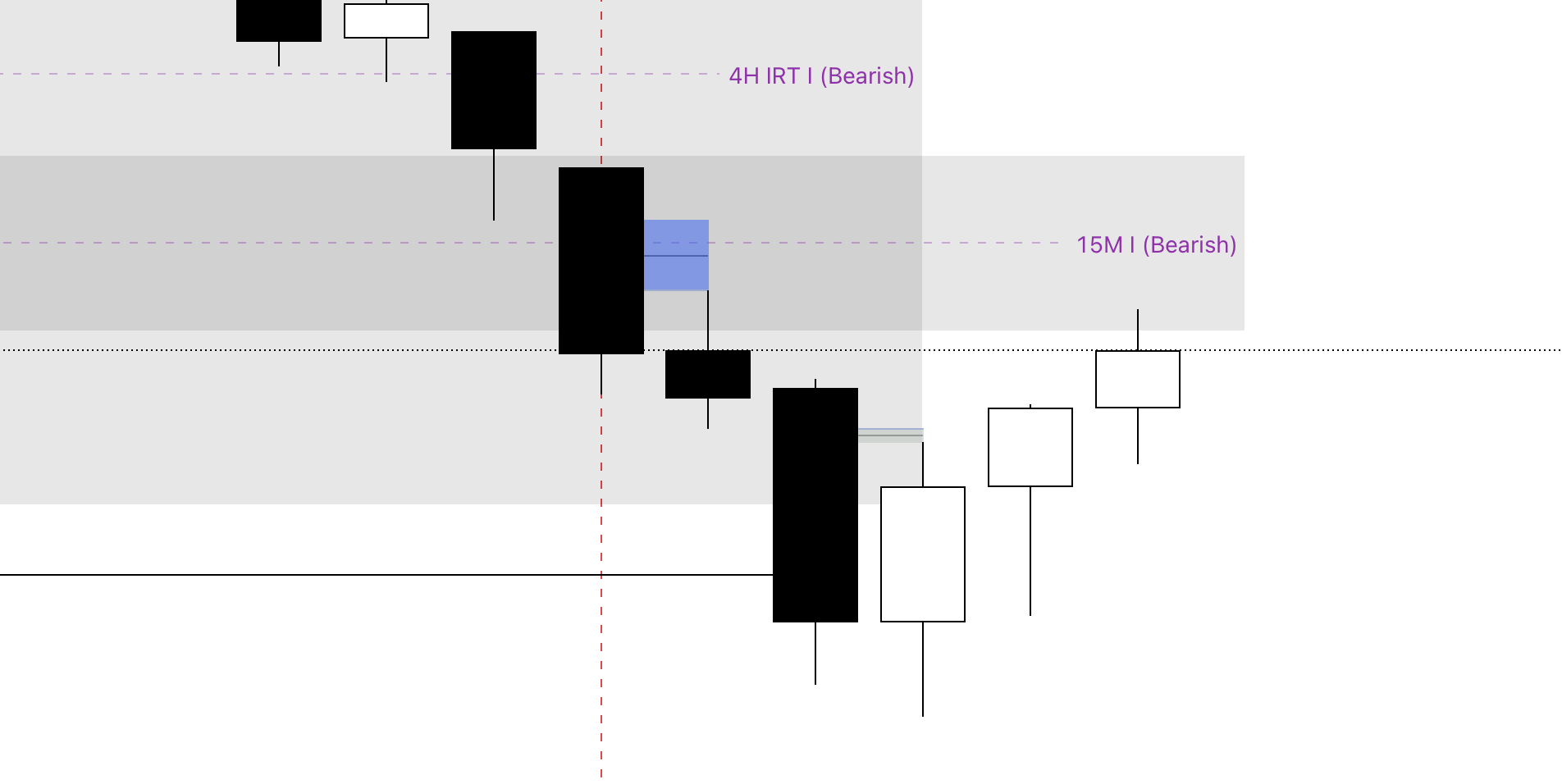 Confluences: A 15M bearish inverse FVG within a bearish; 4H IRT inverse FVG.