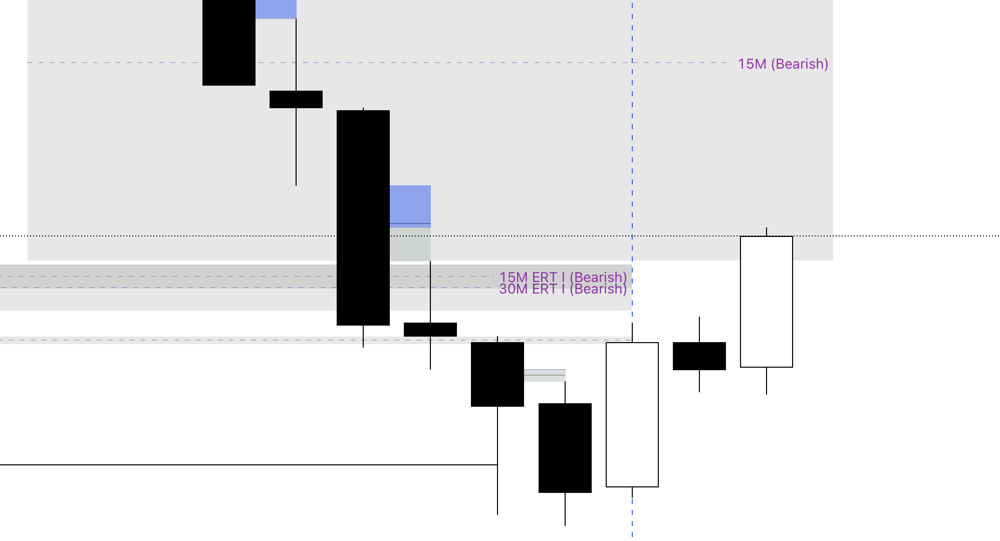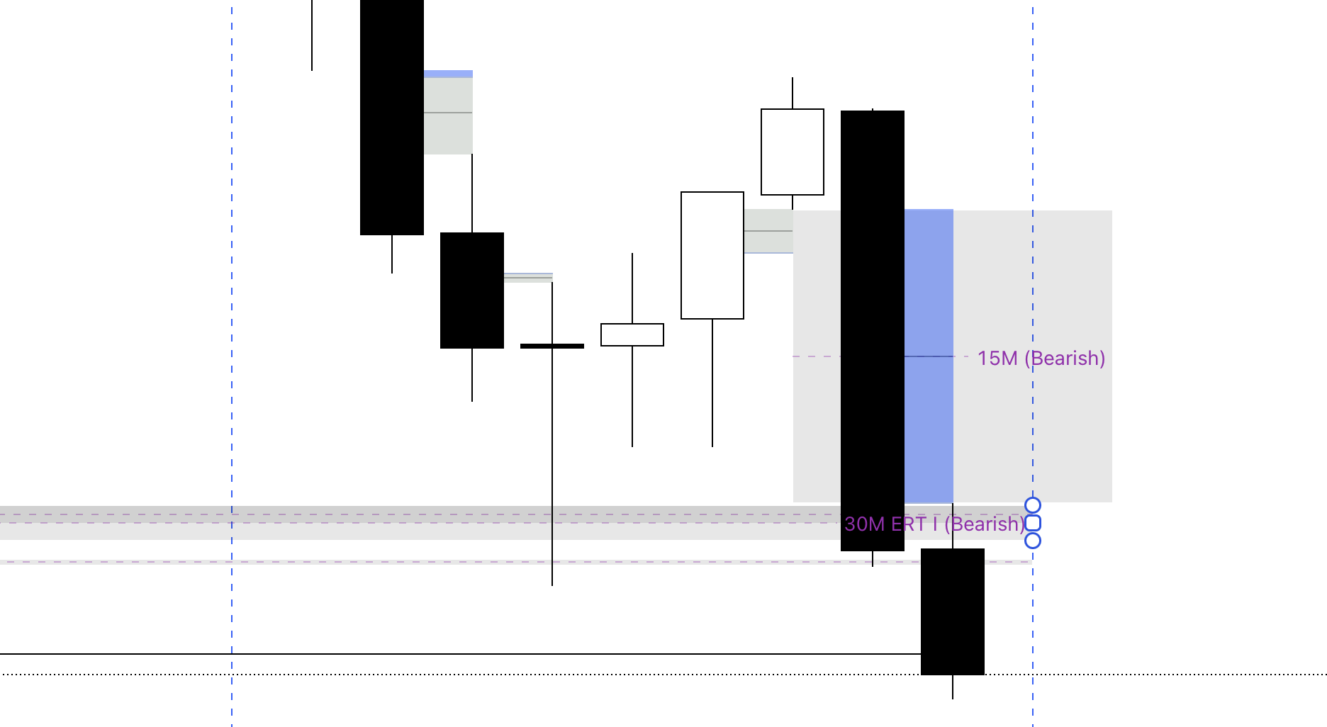 Confluences: A 15M ERT bearish inverse FVG within a bearish; 30M ERT inverse FVG.