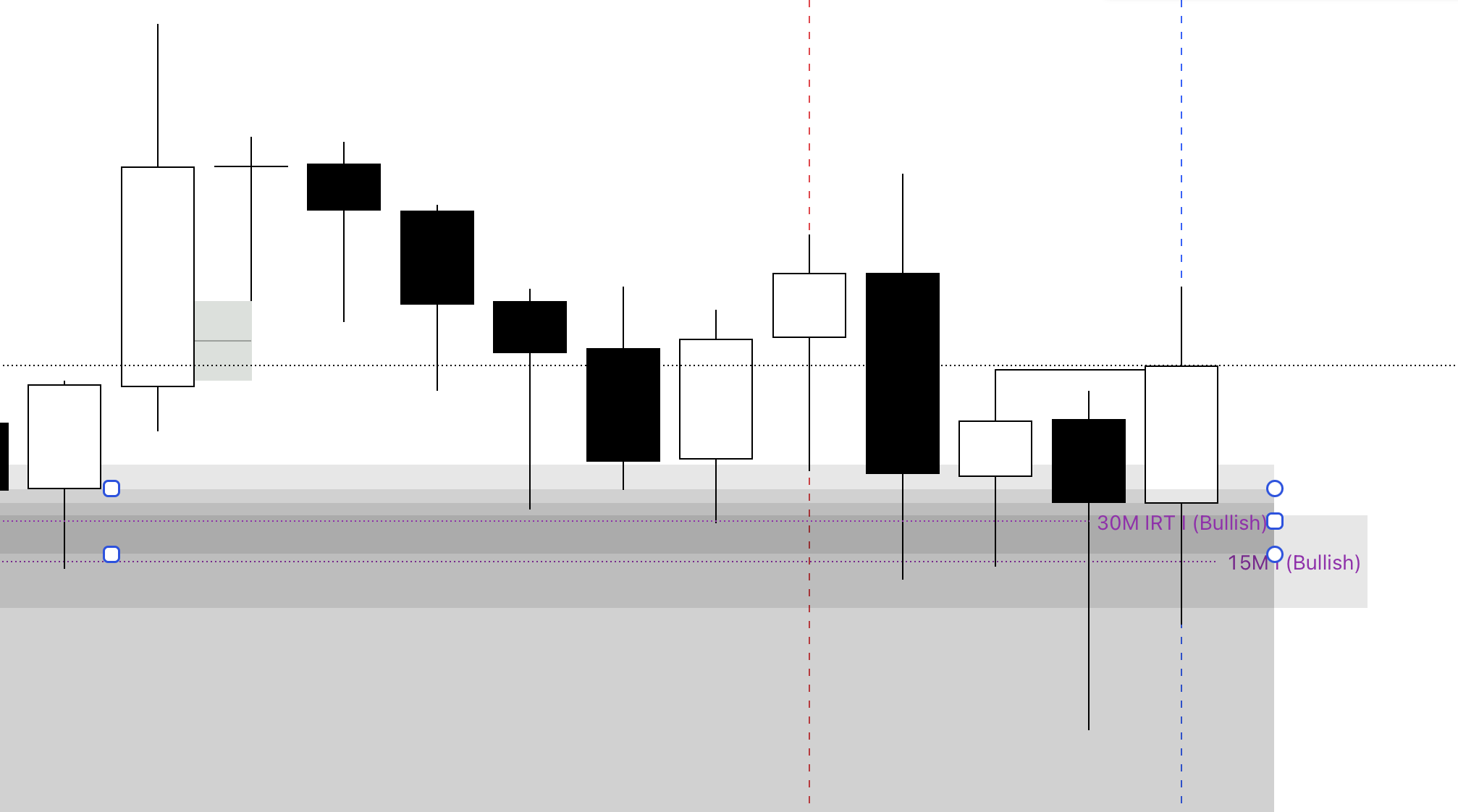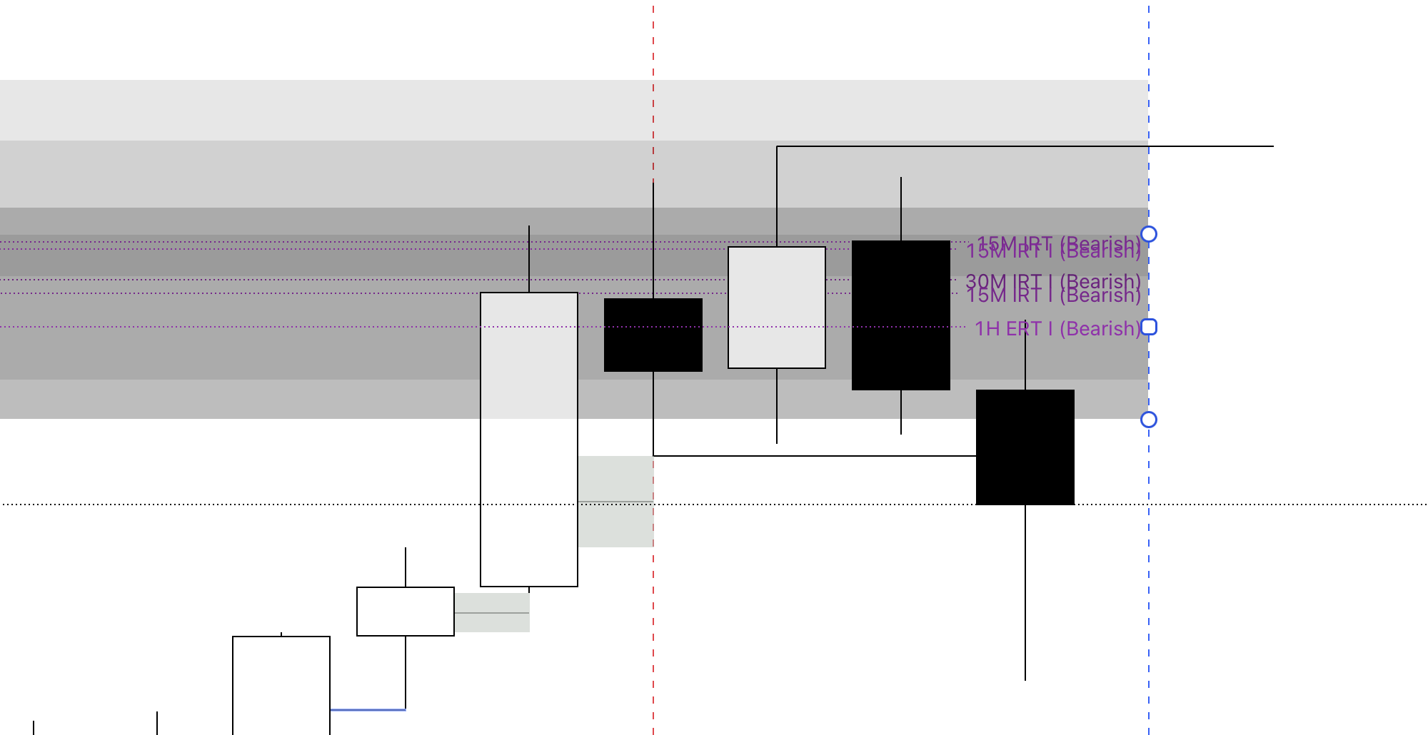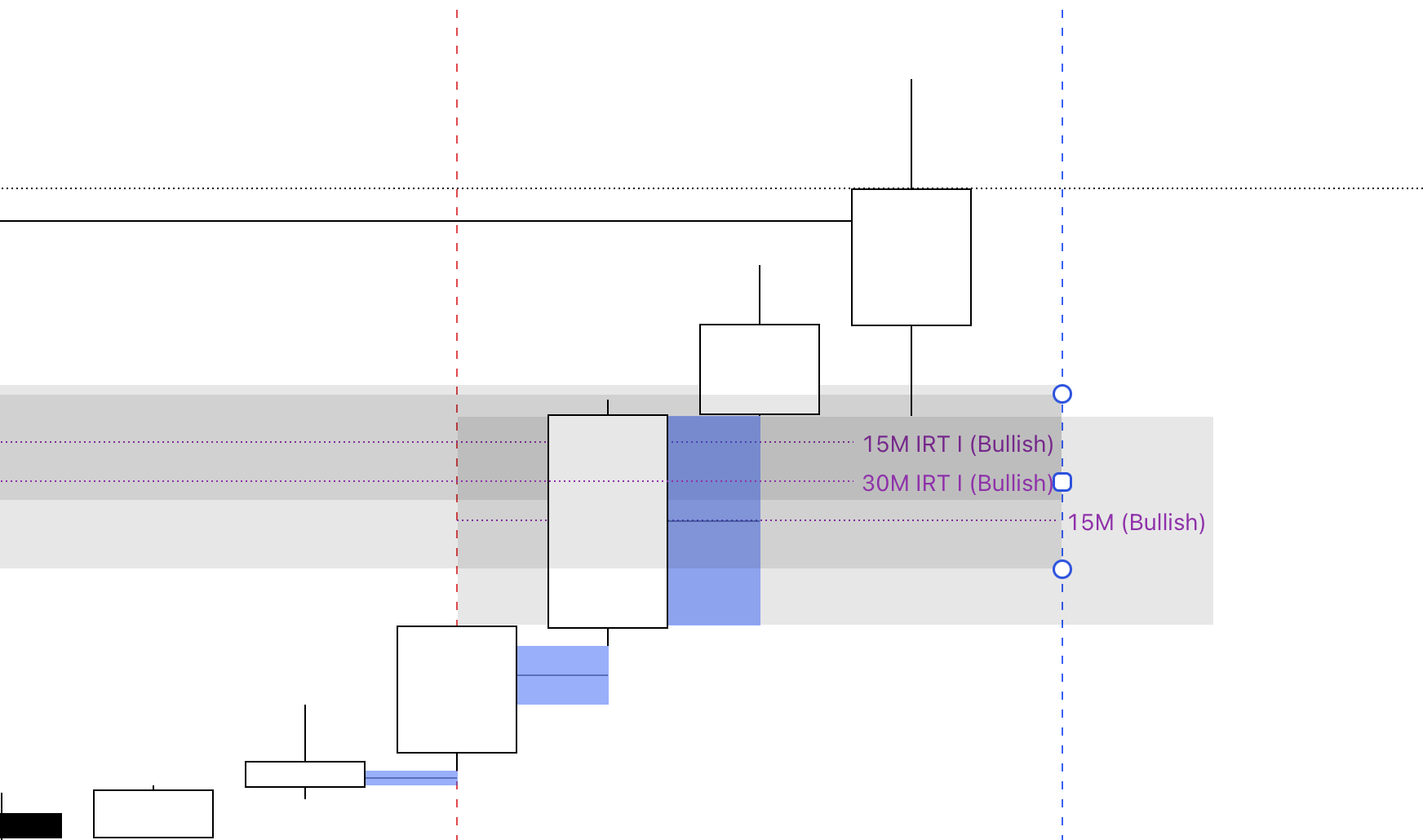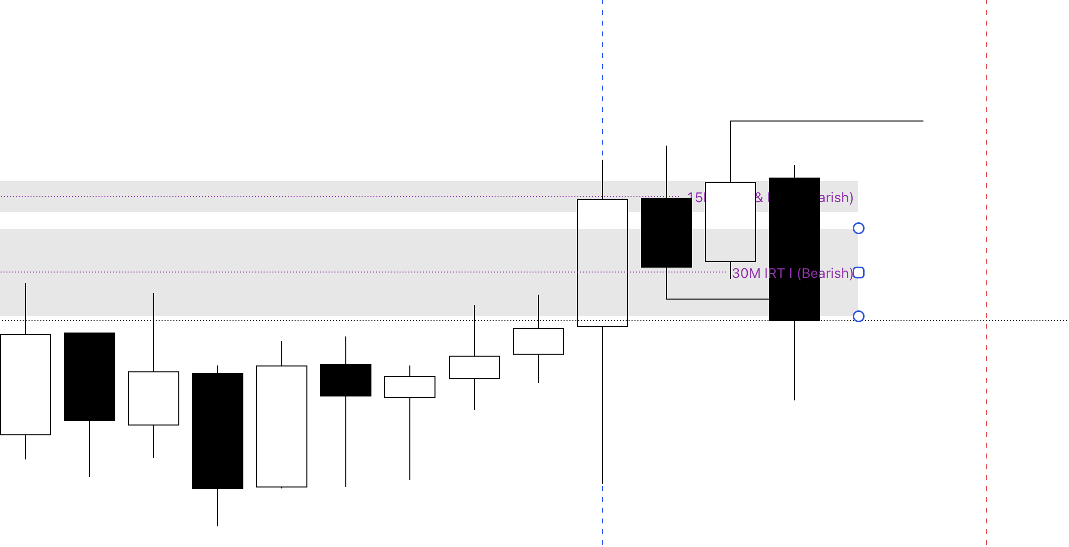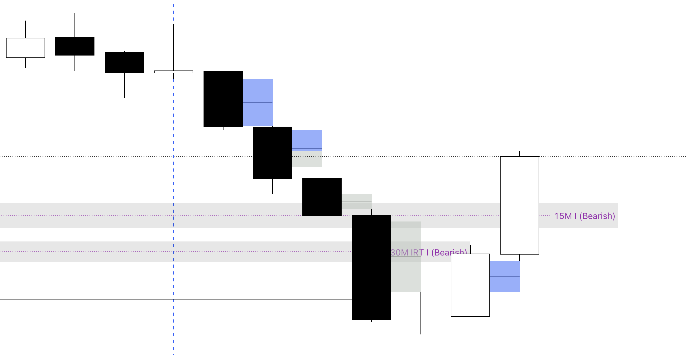 Confluences: A 15M IRT bearish inverse FVG within the bearish 30M IRT inverse FVG.