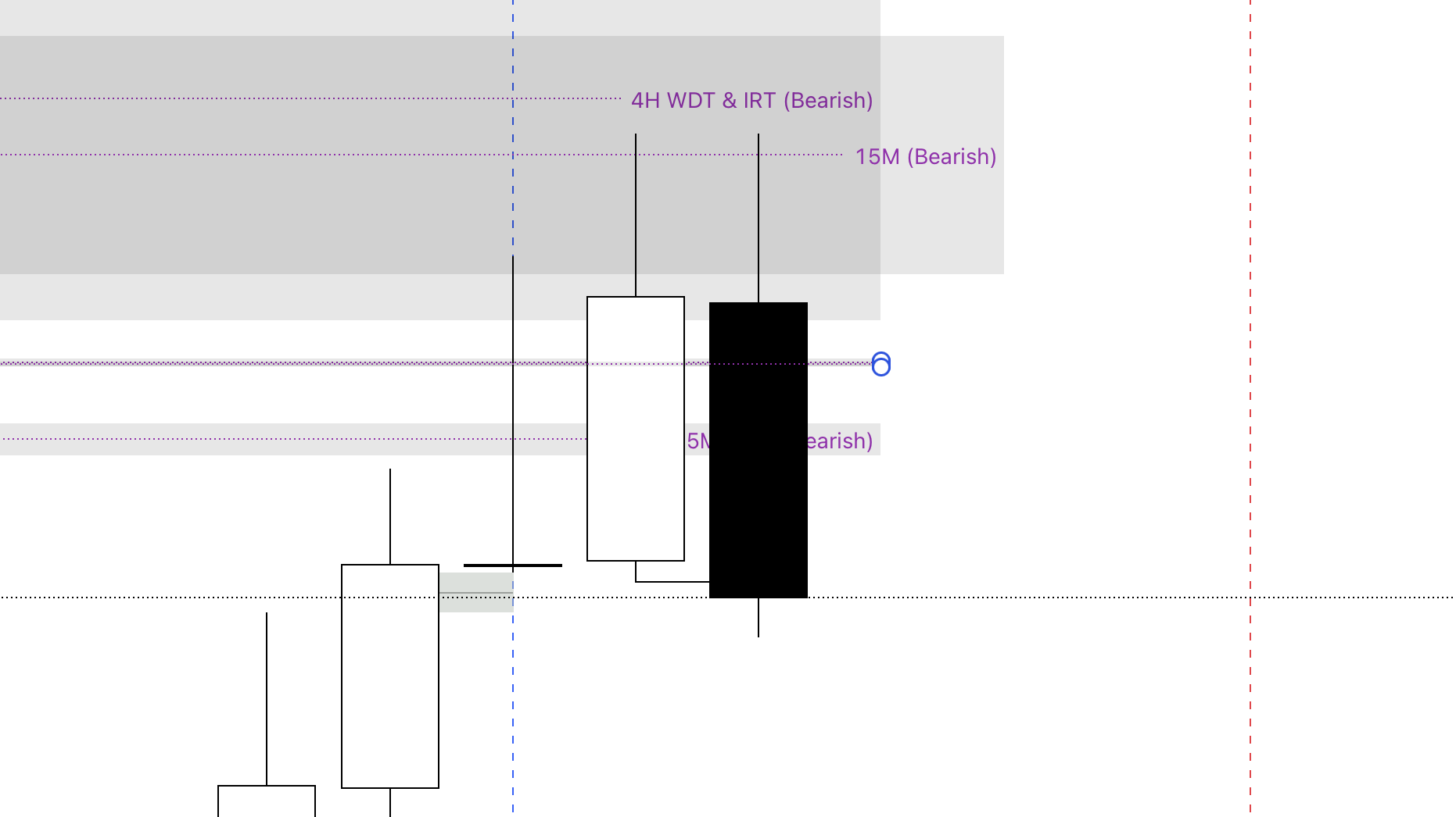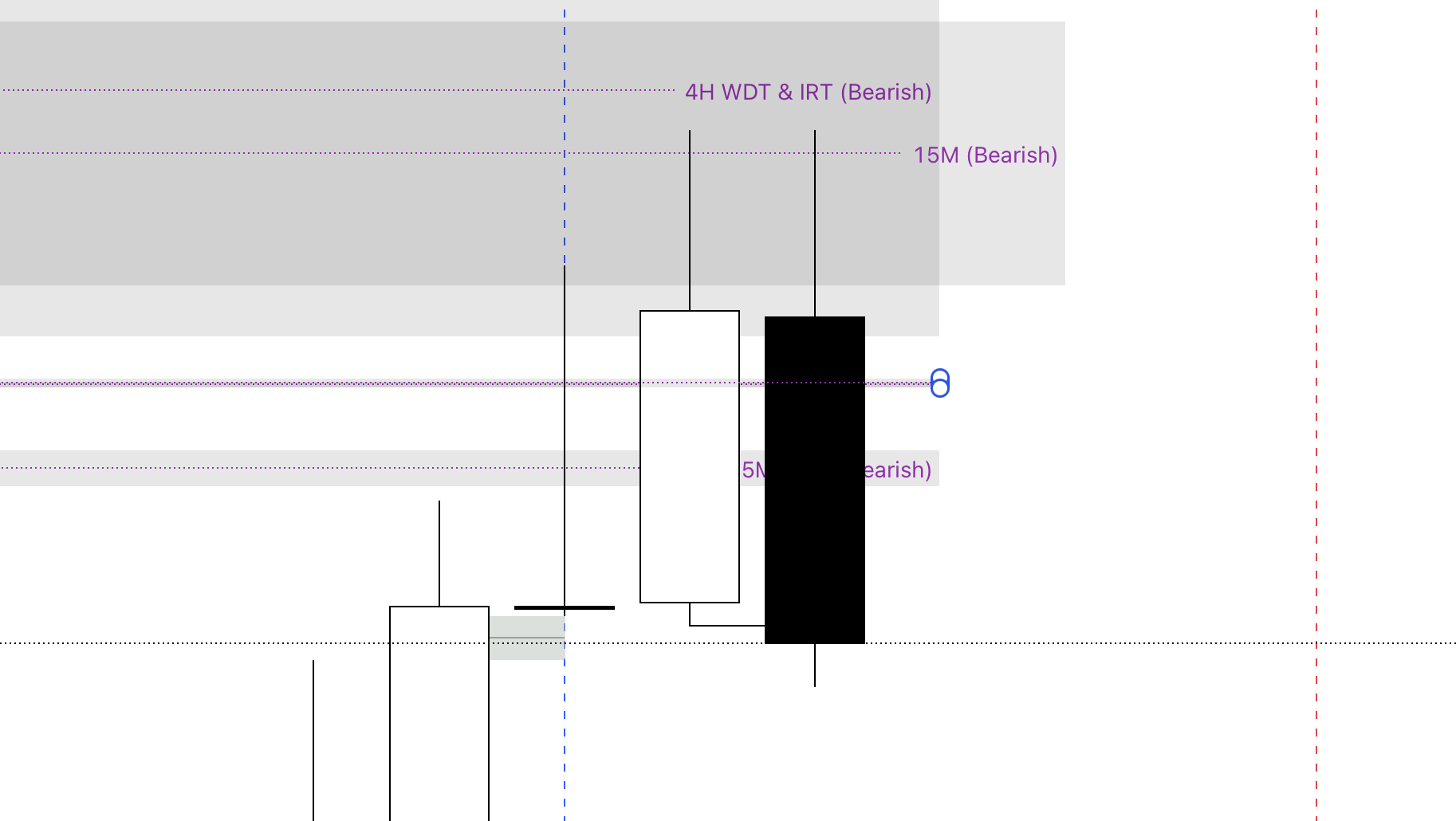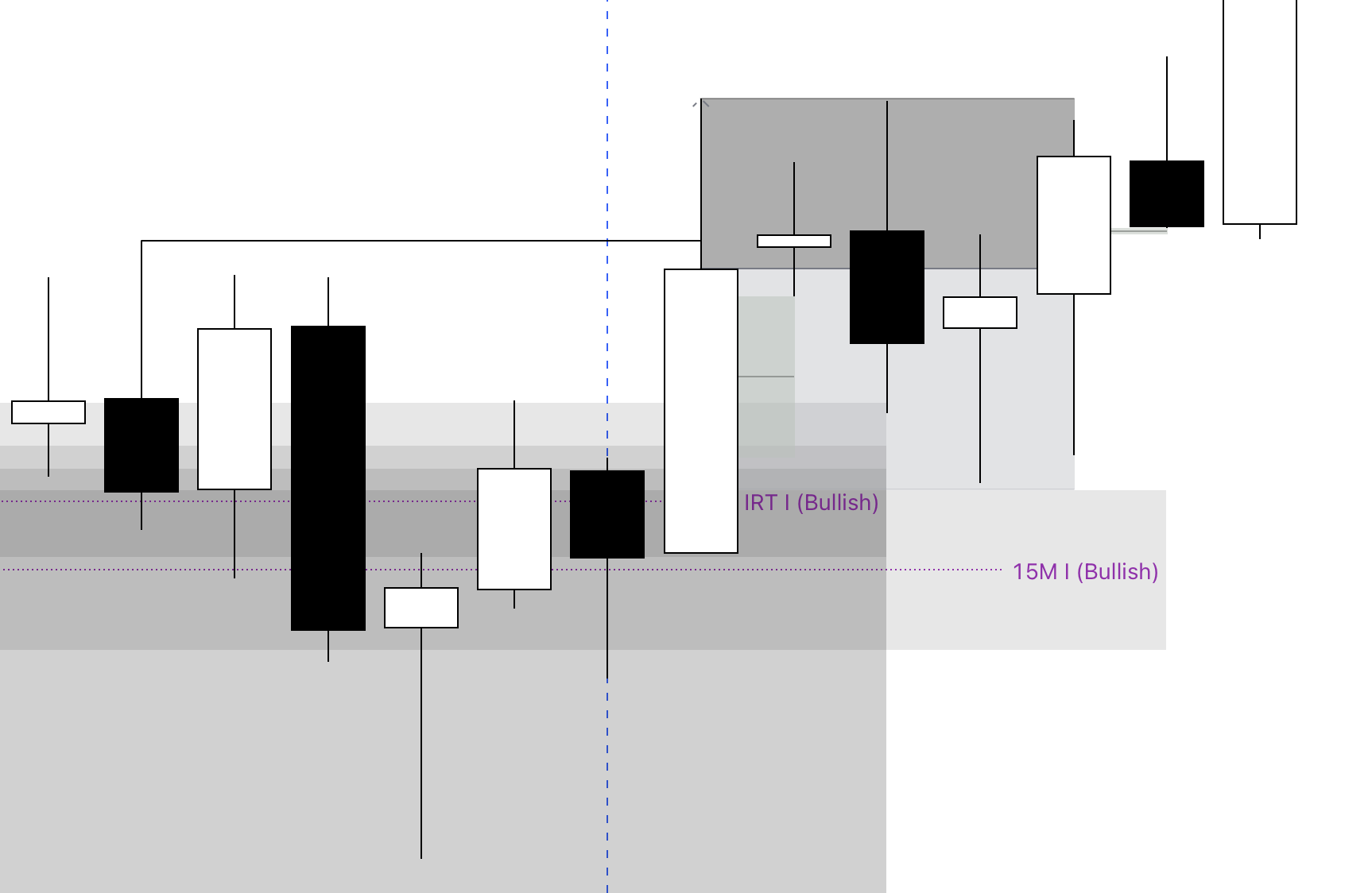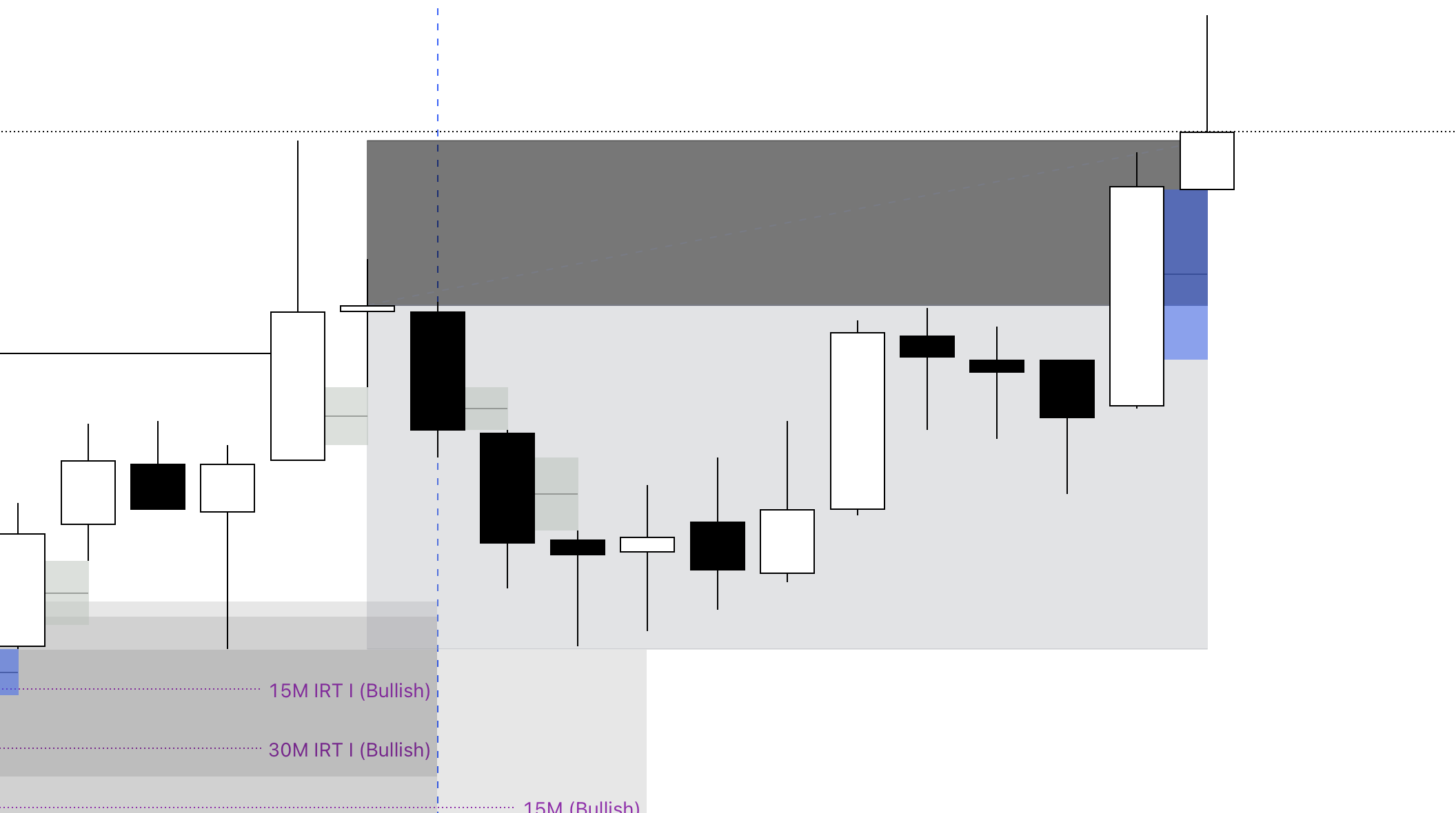 Confluences: A 15M IRT bearish inverse FVG within the bearish 30M IRT inverse FVG.