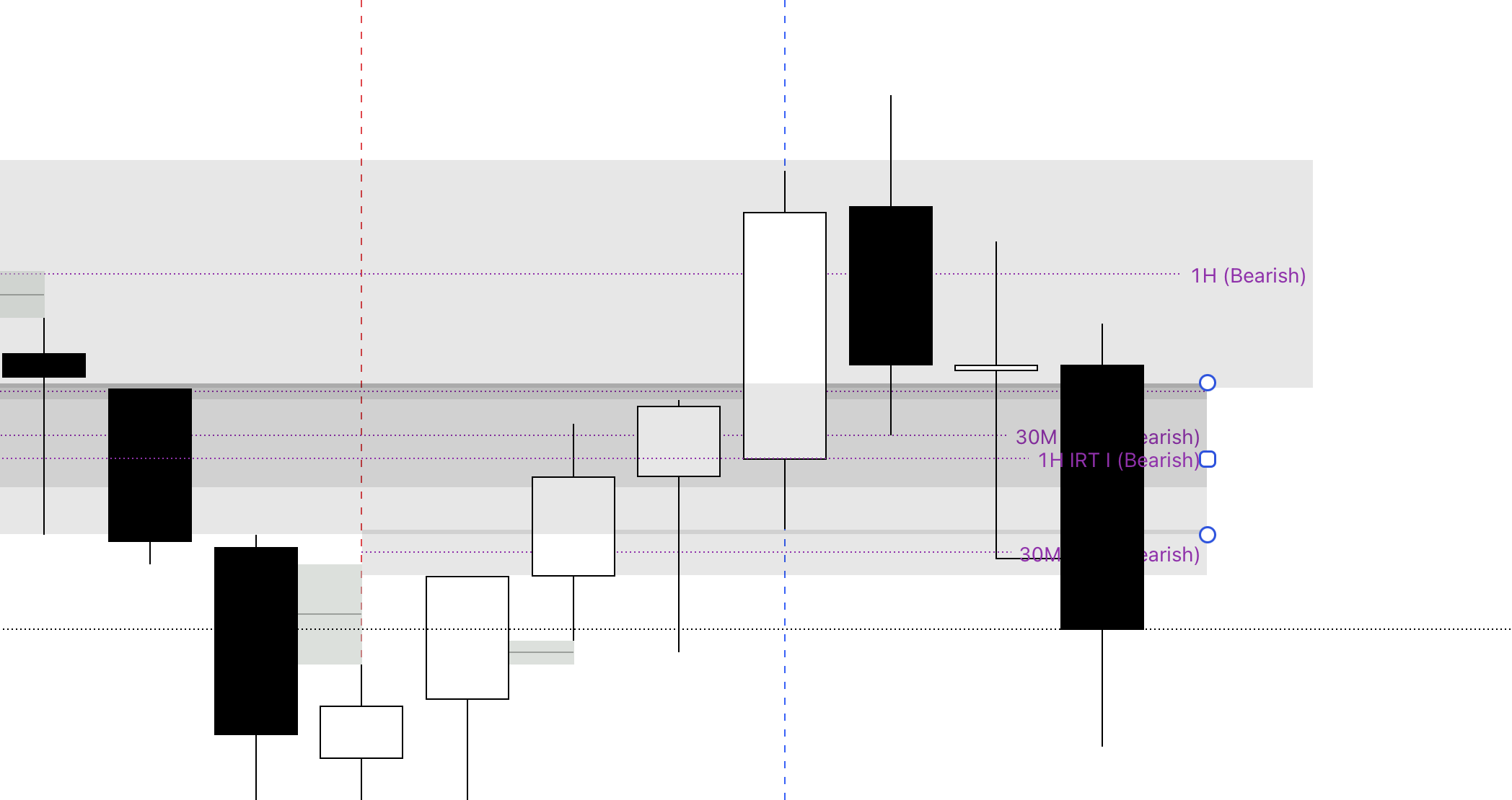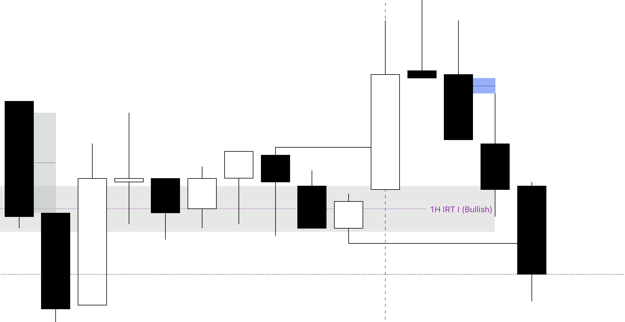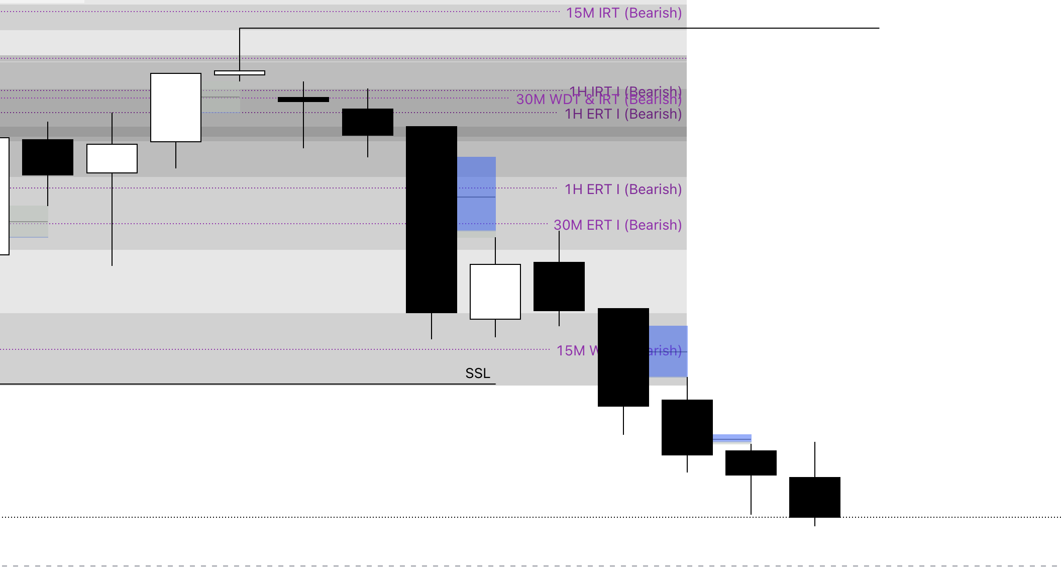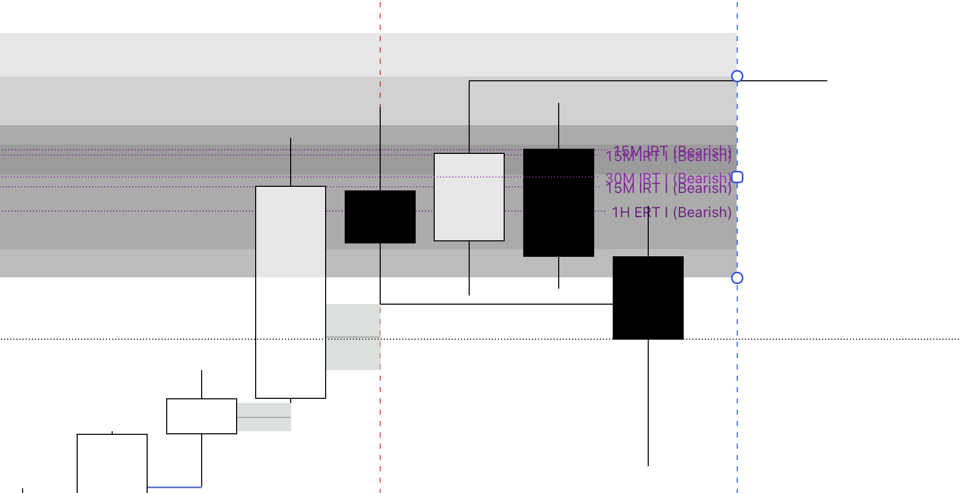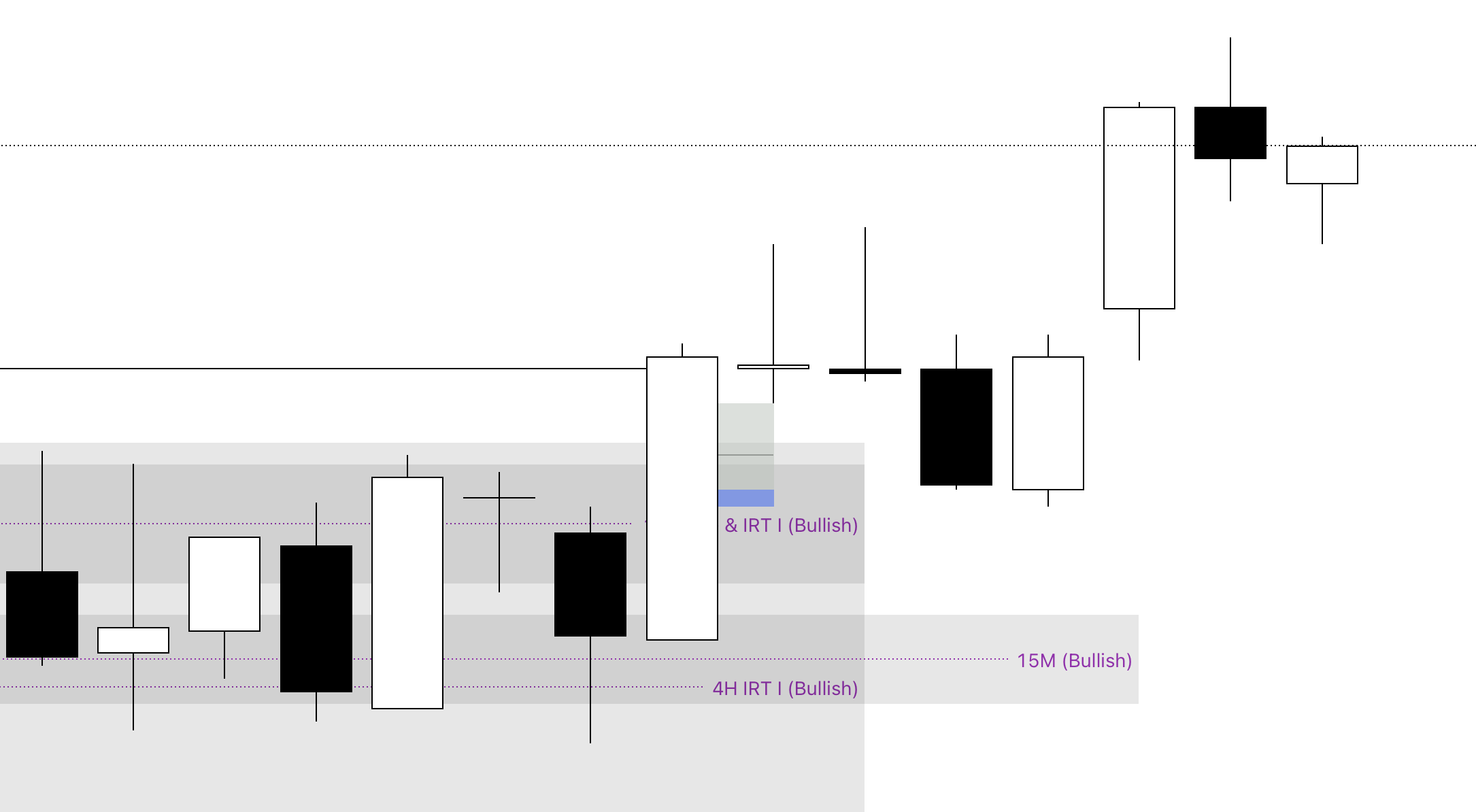 Confluences: A 15M IRT bearish inverse FVG within the bearish 30M IRT inverse FVG.