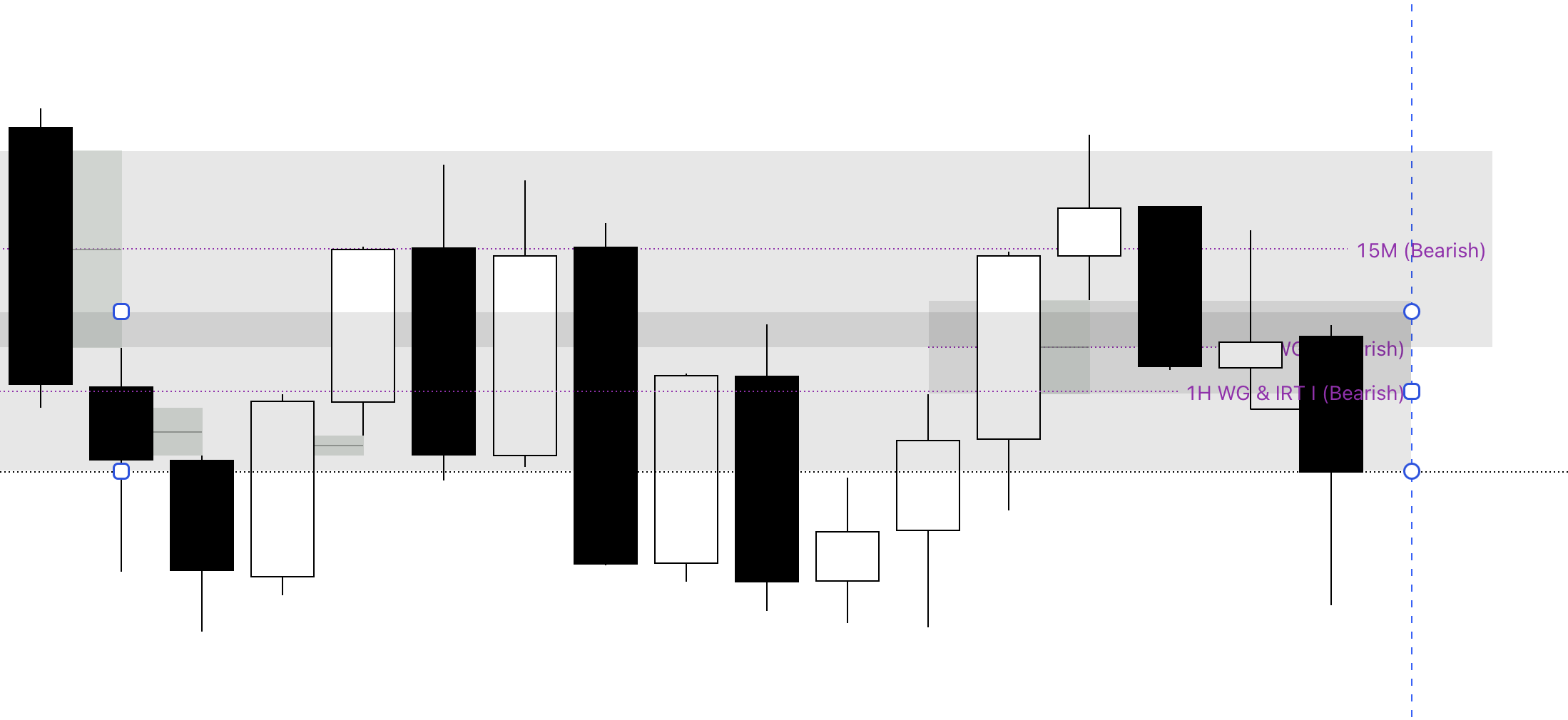 Confluences: A 15M bearish inverse FVG above a 1H WG & IRT bearish inverse FVG.