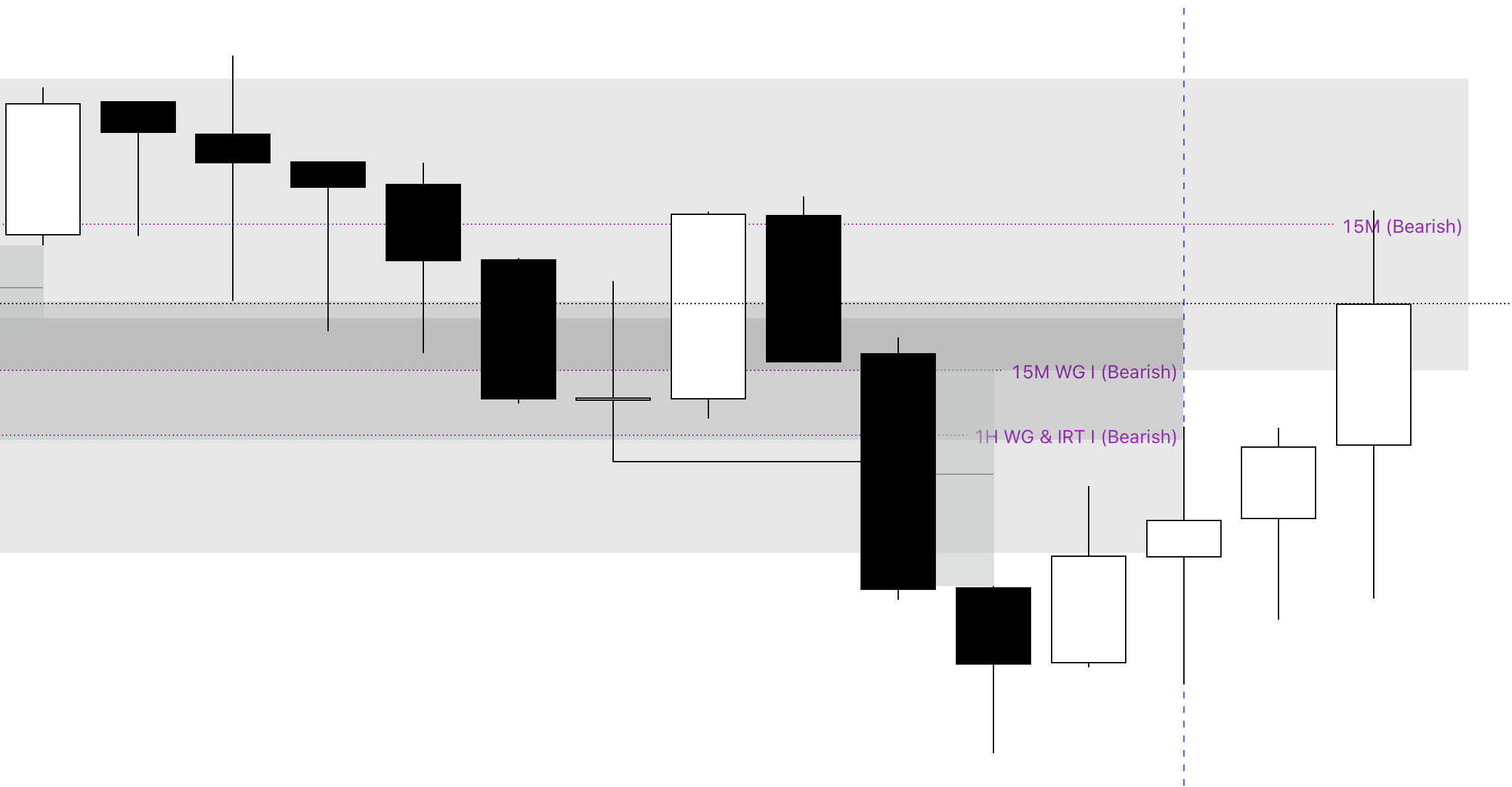 Confluences: A 15M bearish FVG within a 4H WG & IRT bearish inverse FVG.