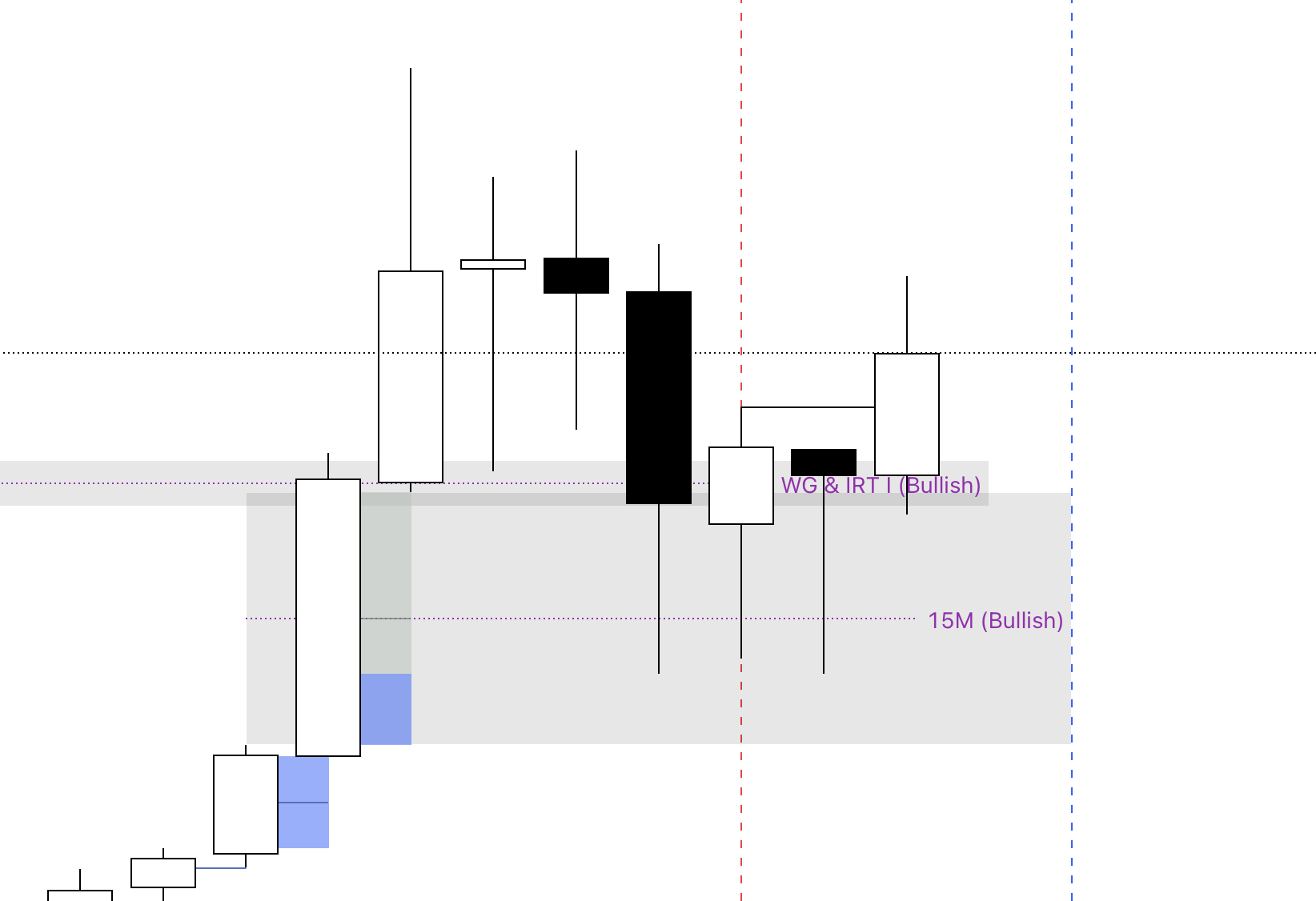 Confluences: A 15M bullish FVG within a 30M IRT bullish inverse FVG.