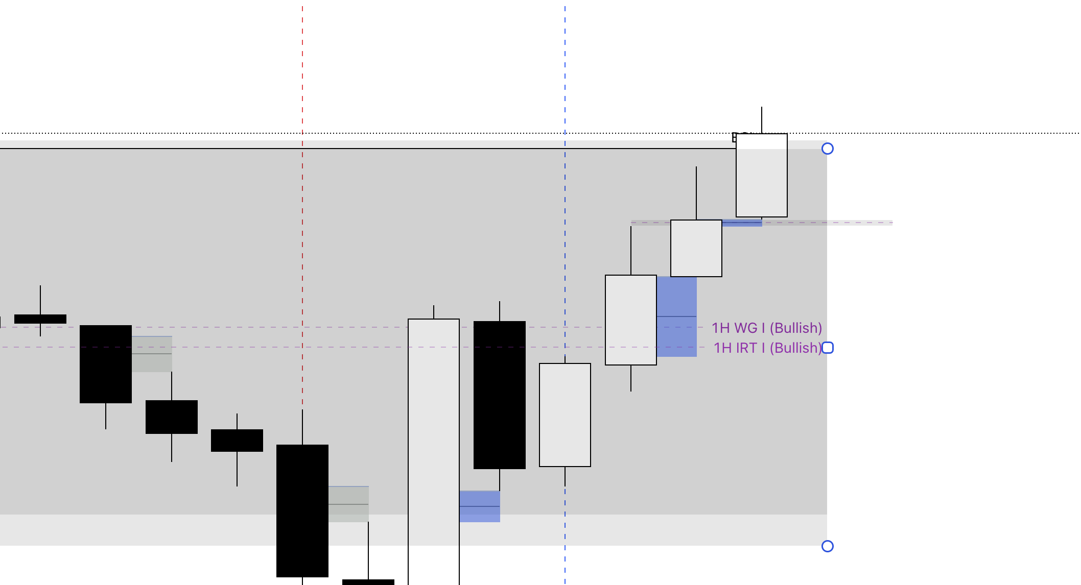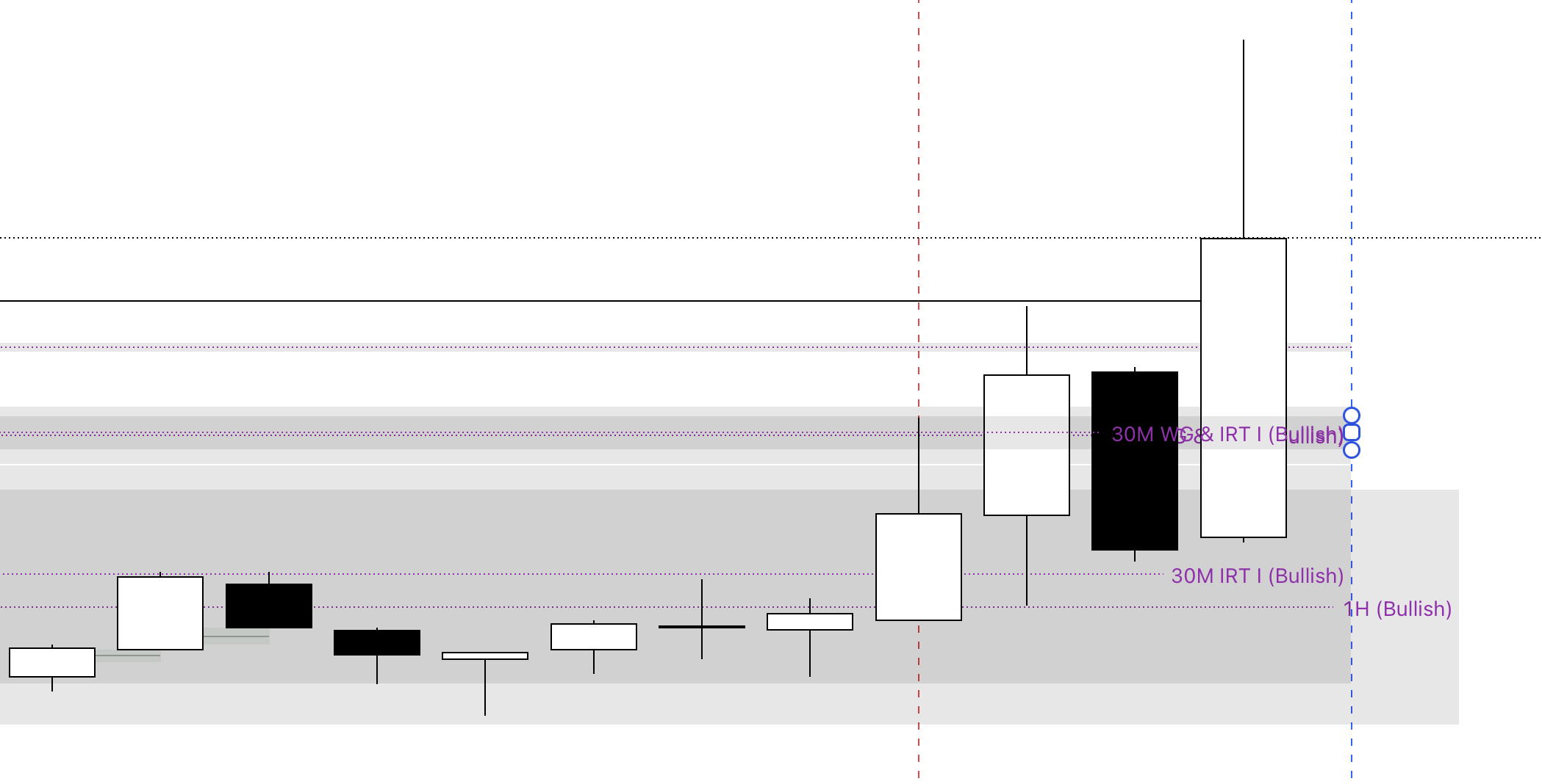 Confluences: A 30M IRT bullish inverse FVG beneath a 30M WG & IRT bullish inverse FVG.