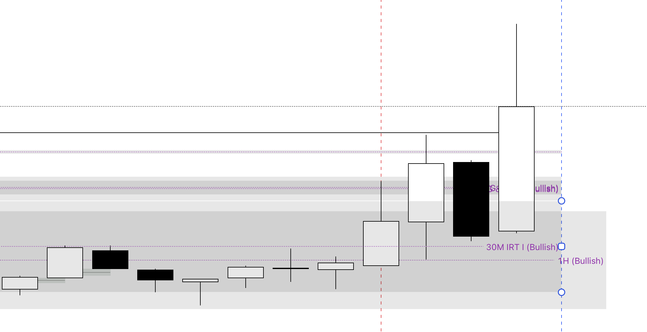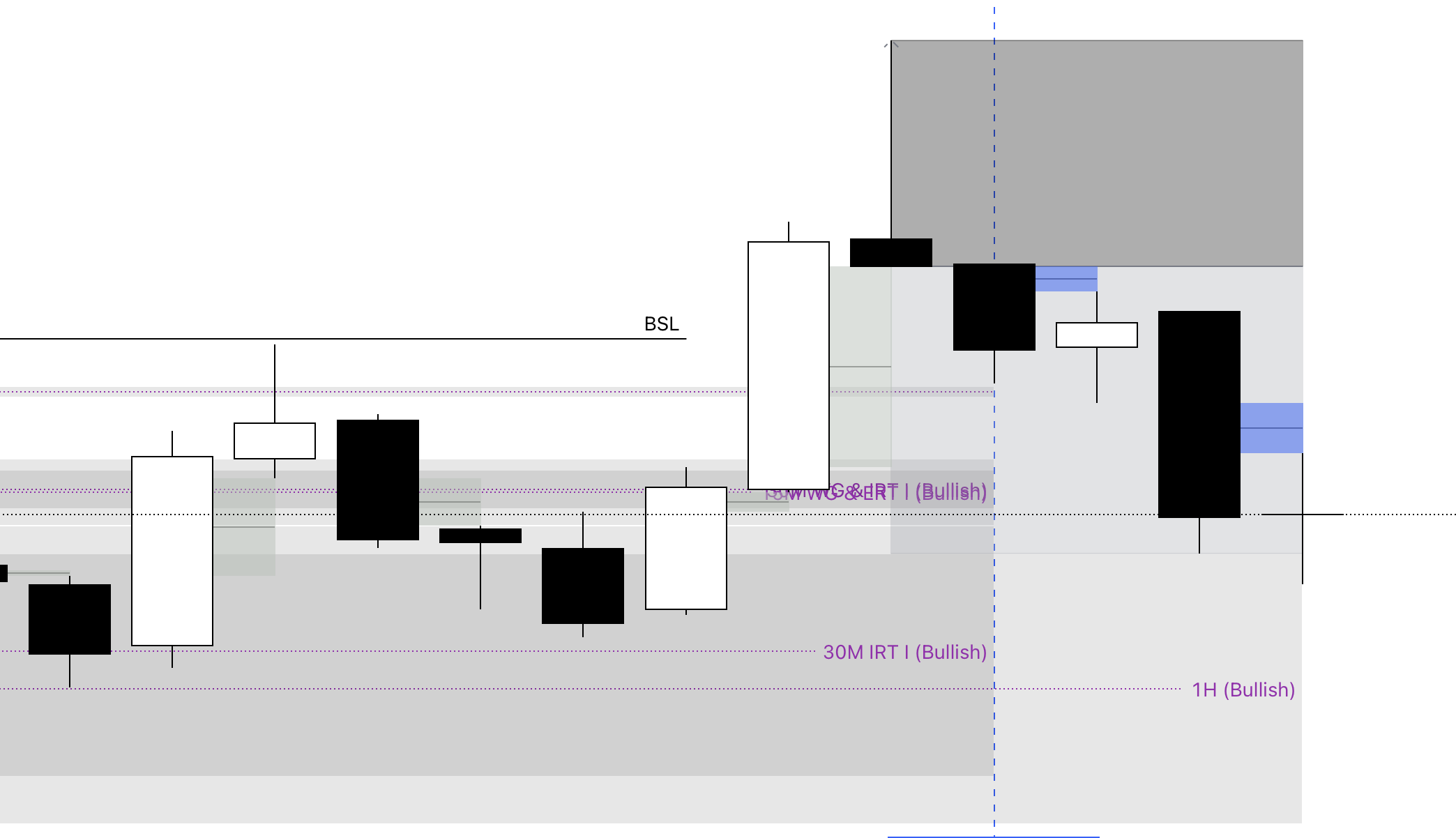 Confluences: A 1H bullish FVG within a 30M IRT bullish inverse FVG.