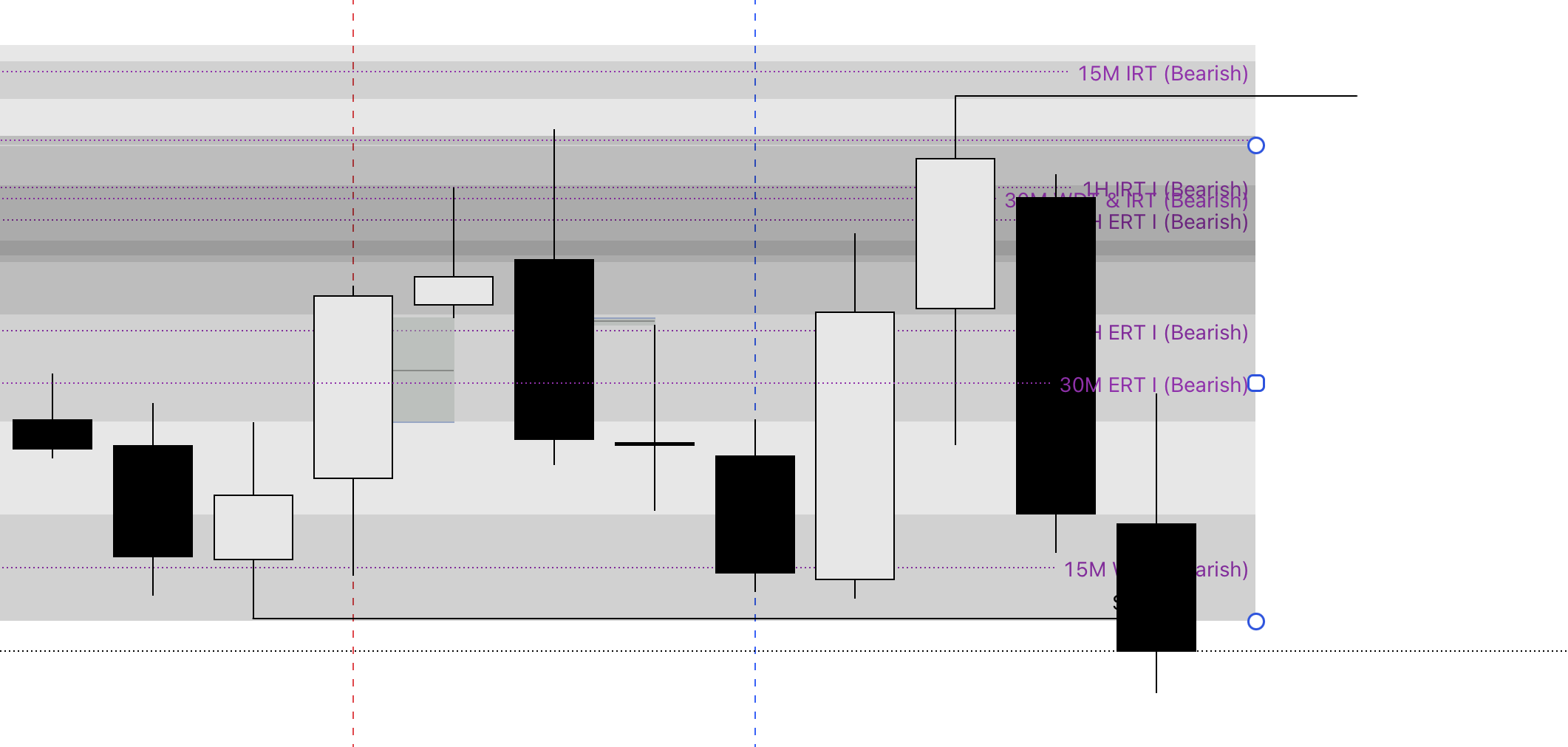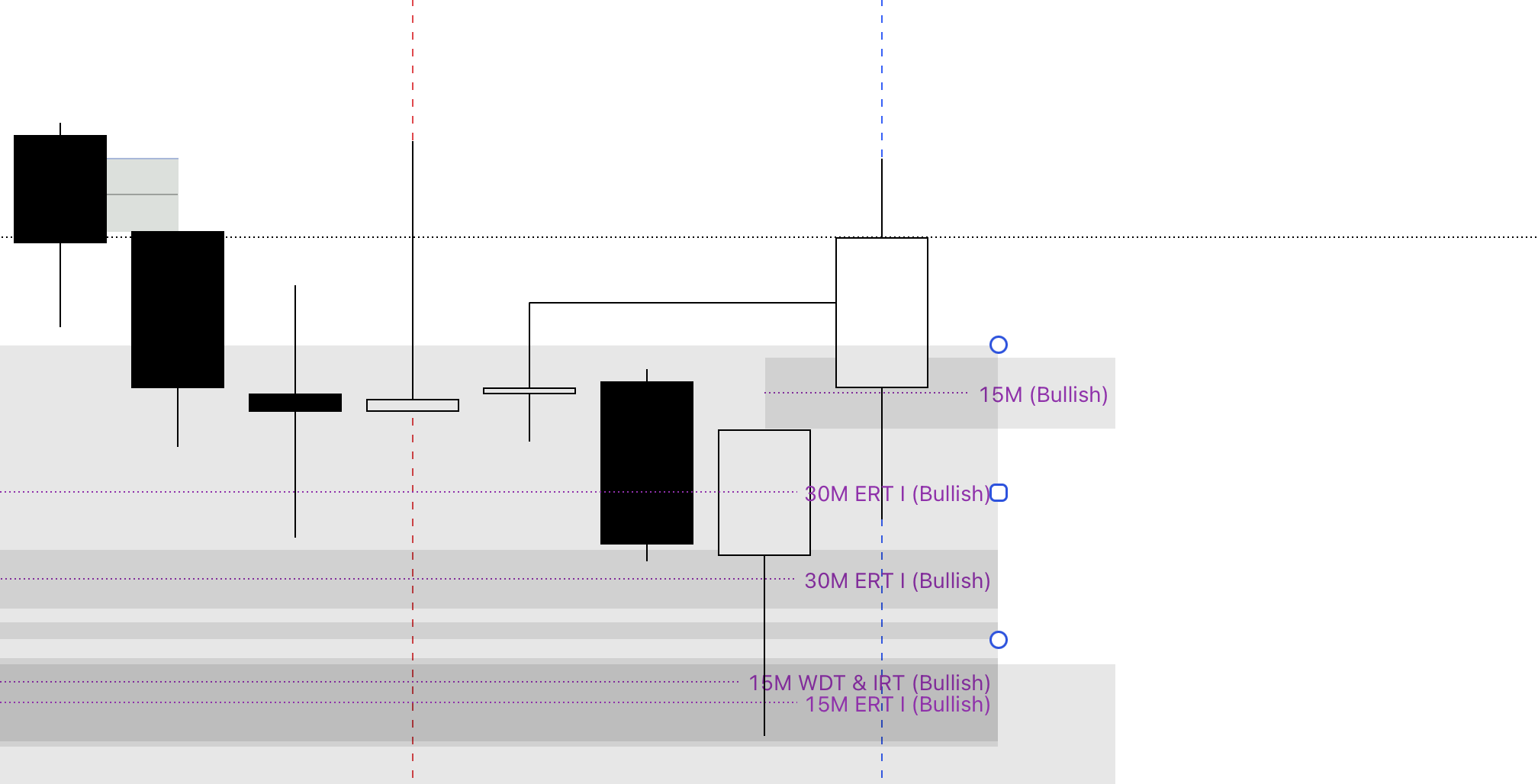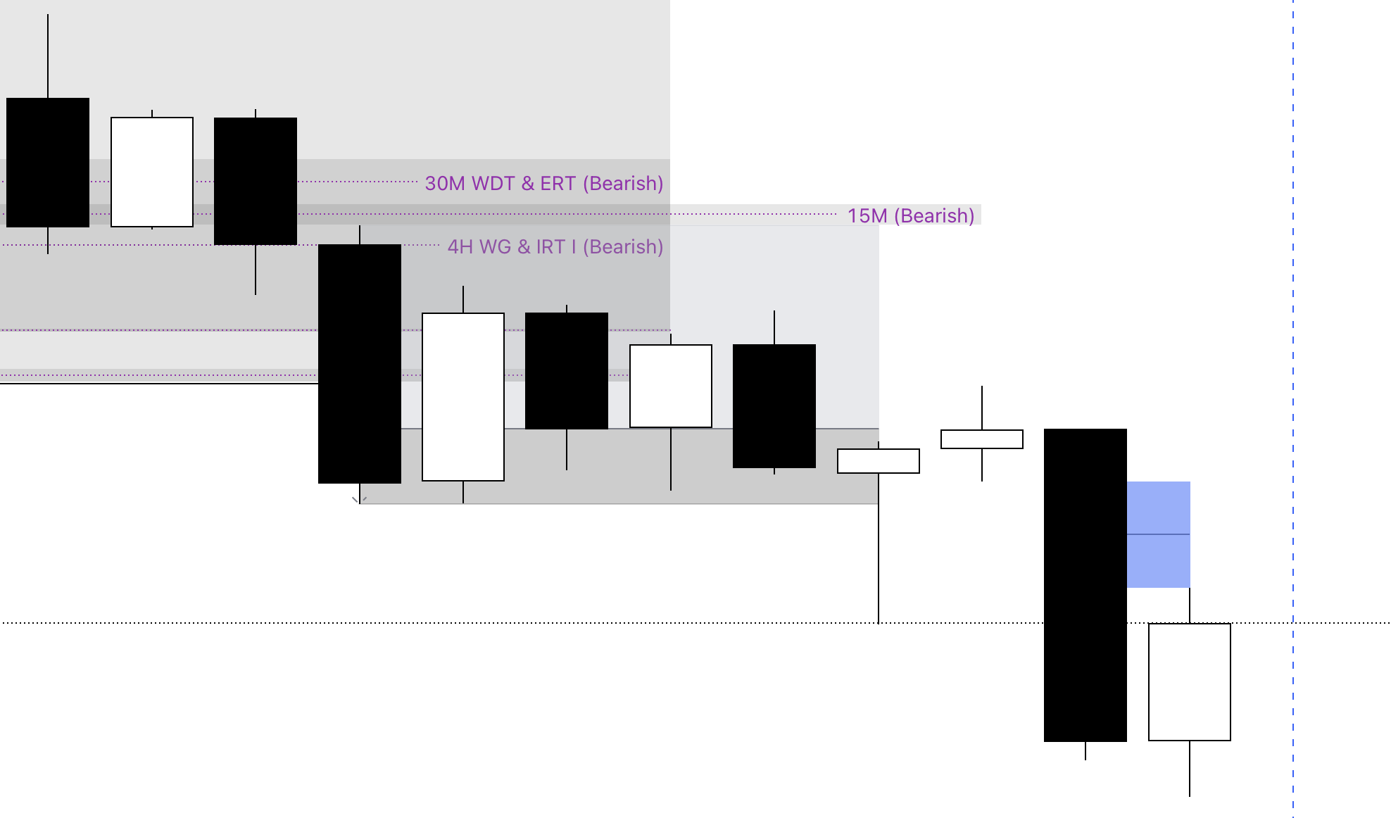 Confluences: A 15M WDT & ERT Bearish FVG above a 30M IRT bearish inverse FVG.