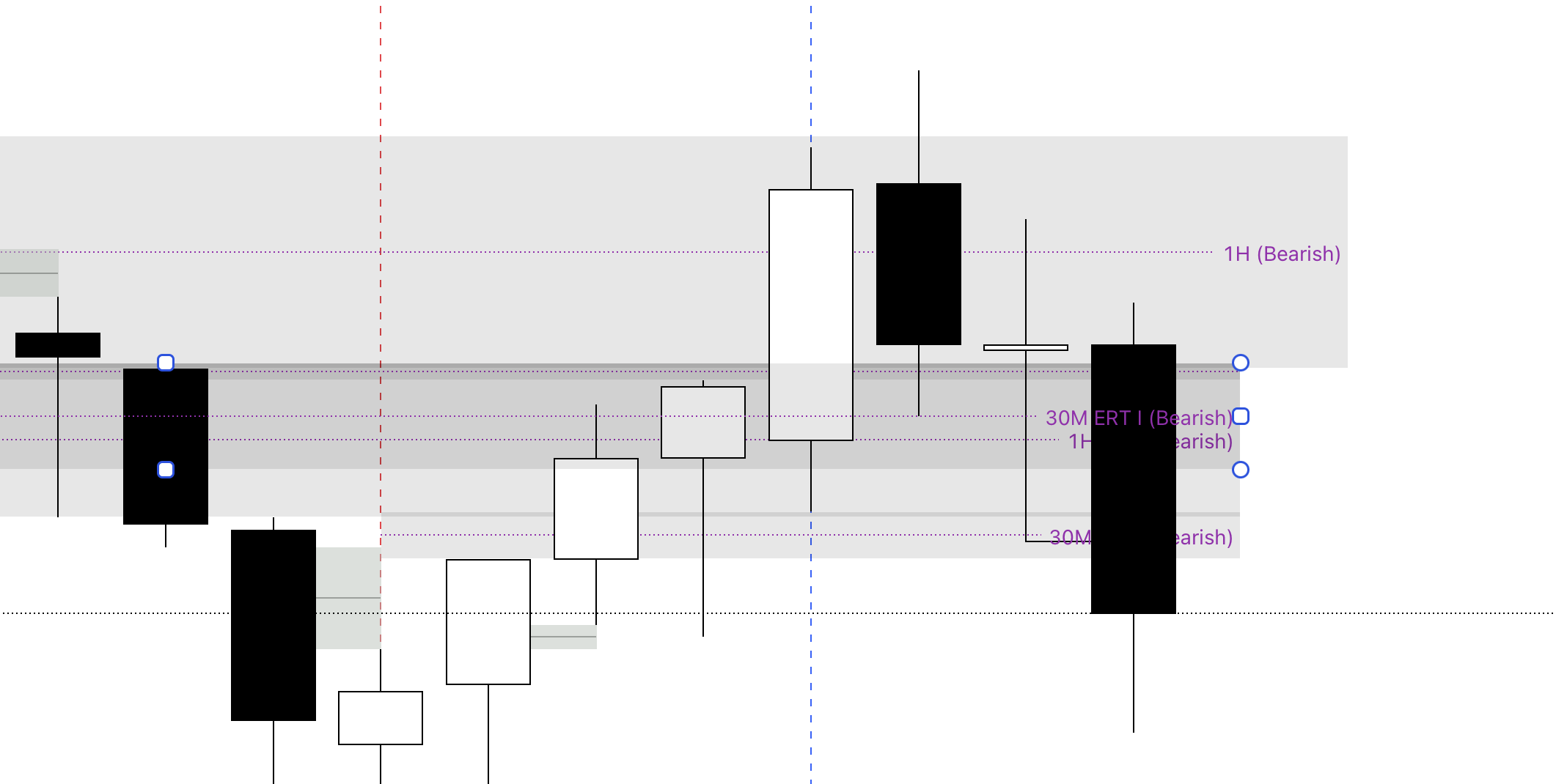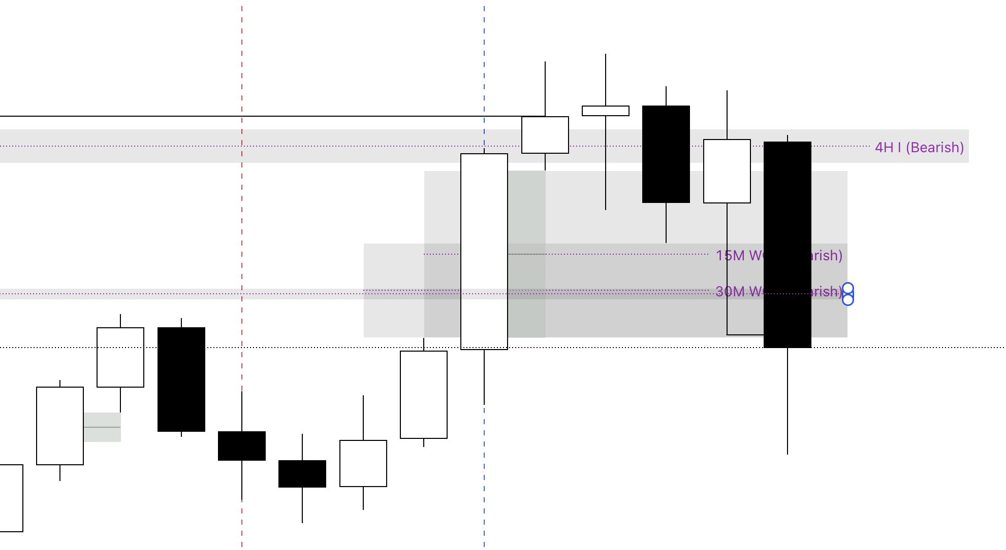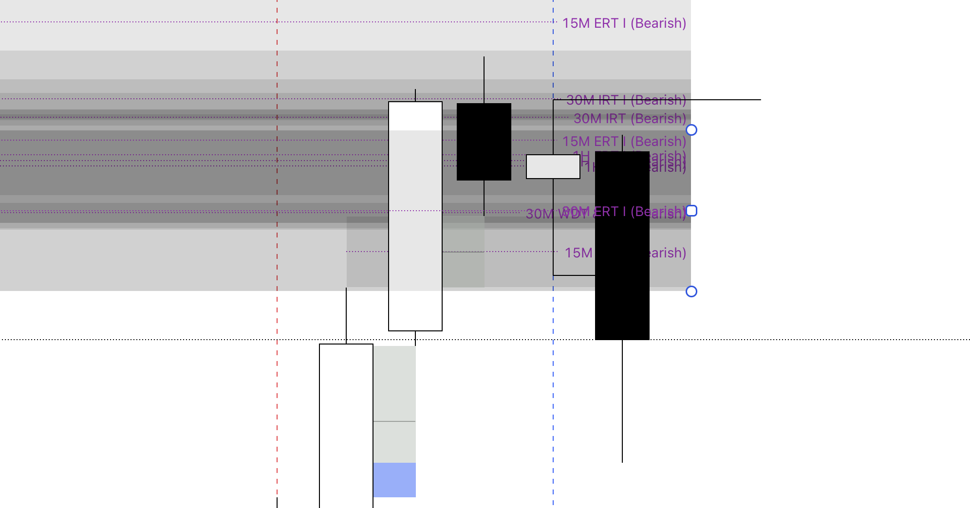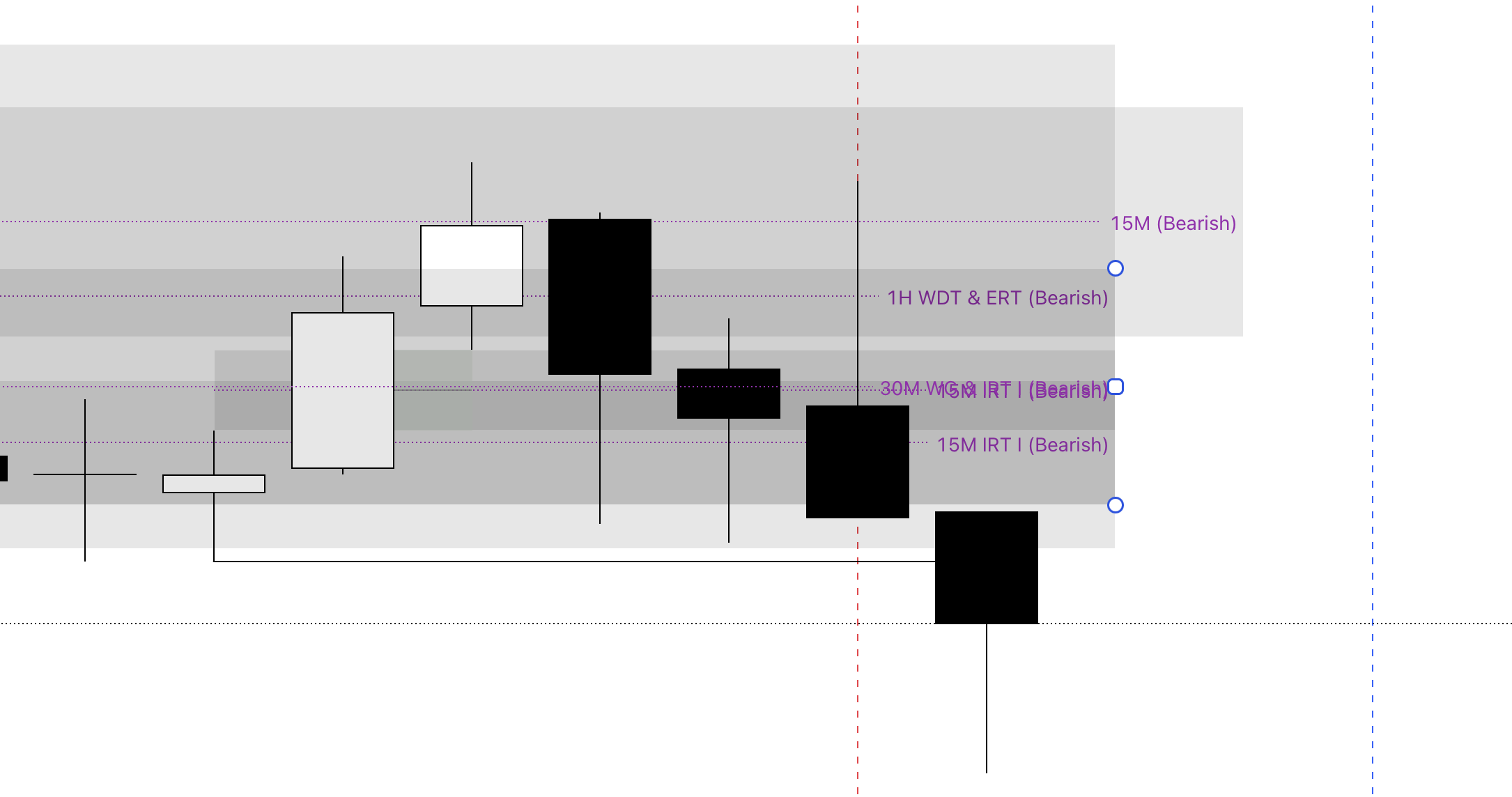 Confluences: A 15M WDT & ERT Bearish FVG above a 30M IRT bearish inverse FVG.
