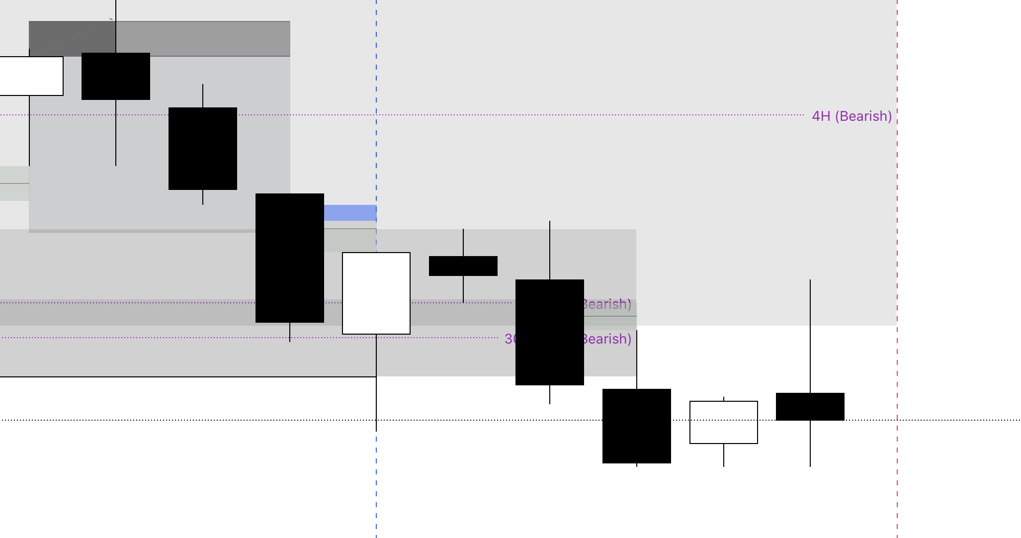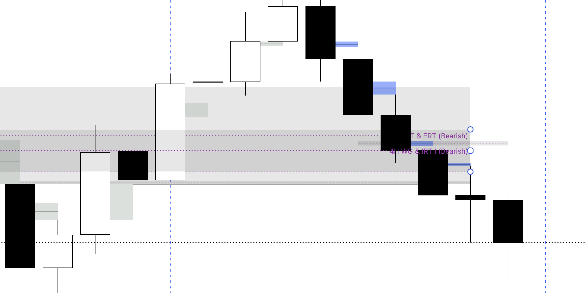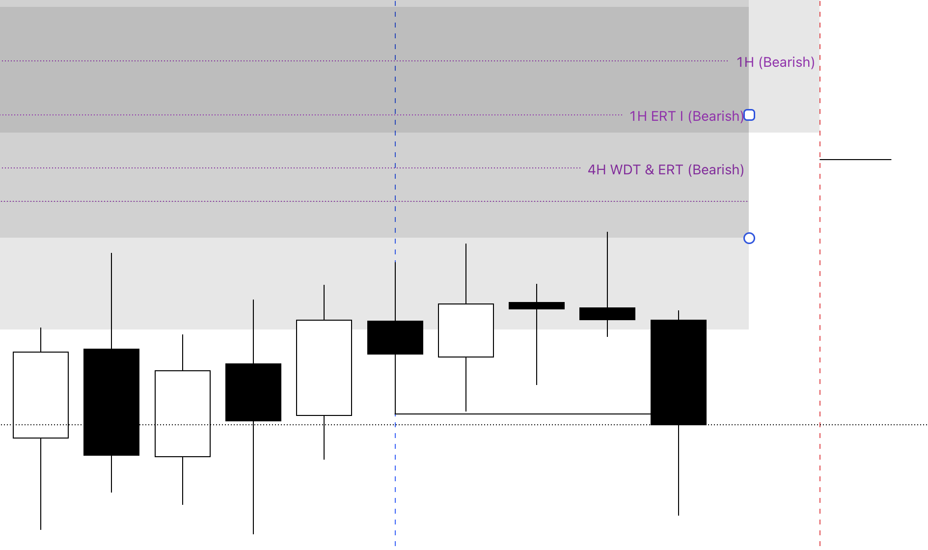 Confluences: 4H bearish inverse FVG above a 1H ERT bearish inverse FVG.