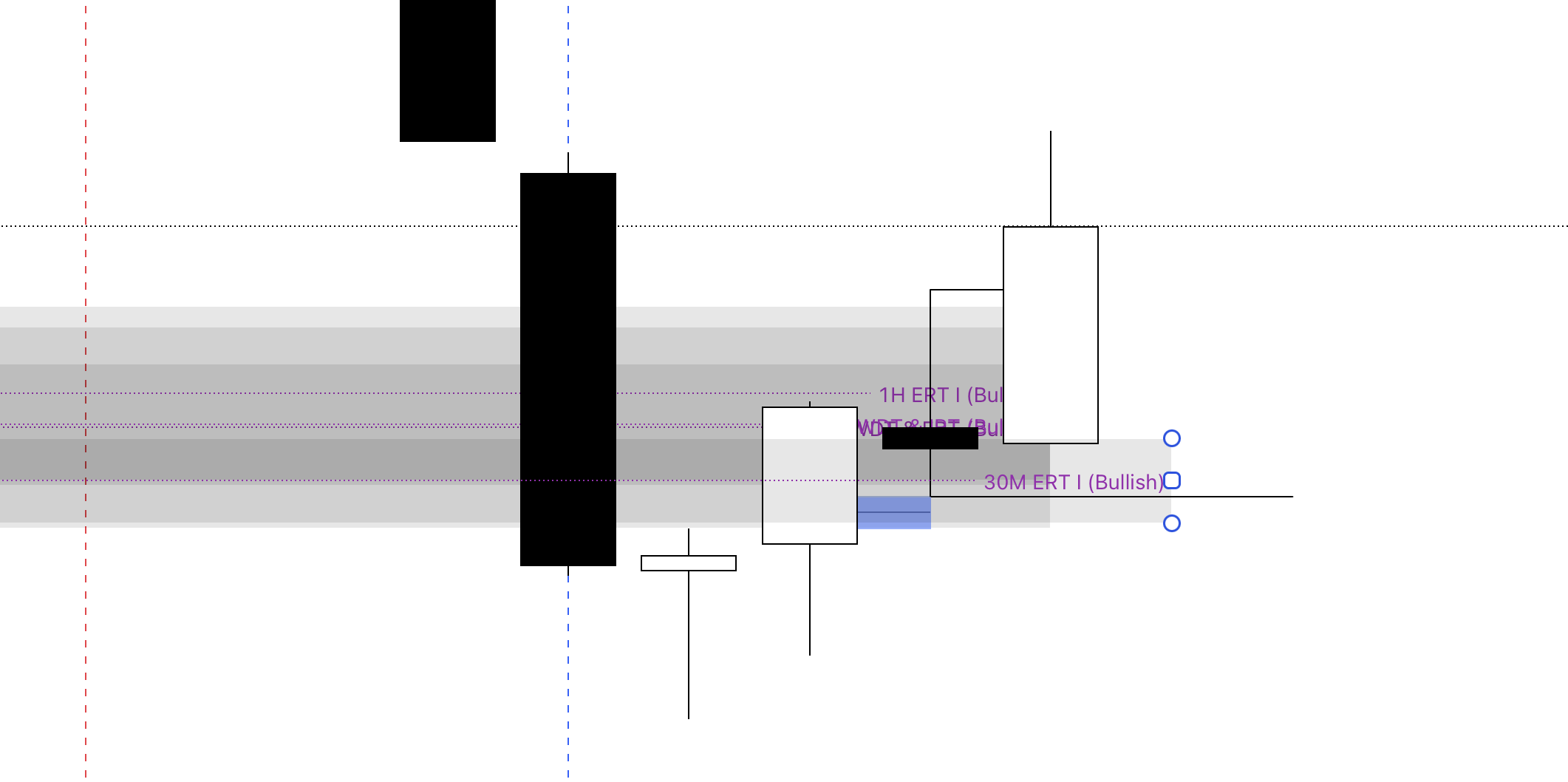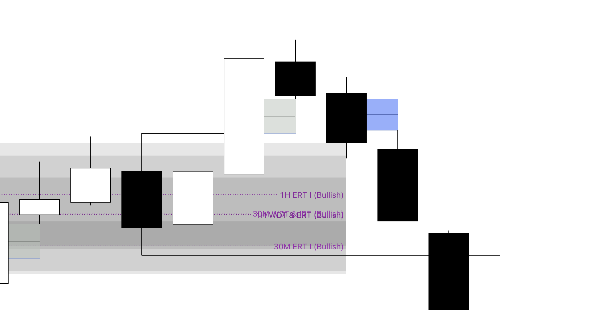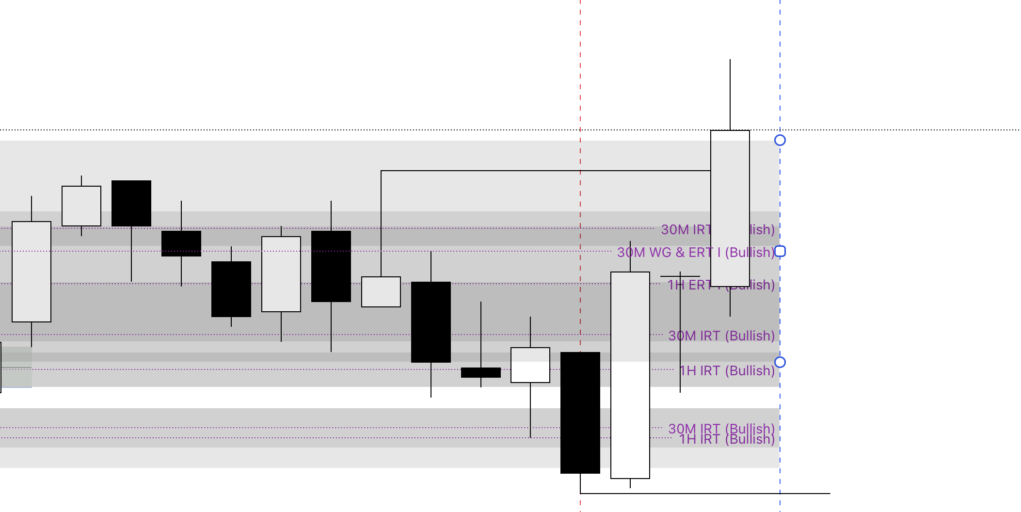 Confluences: A 30M IRT bullish FVG beneath a 30M ERT bullish inverse FVG.
