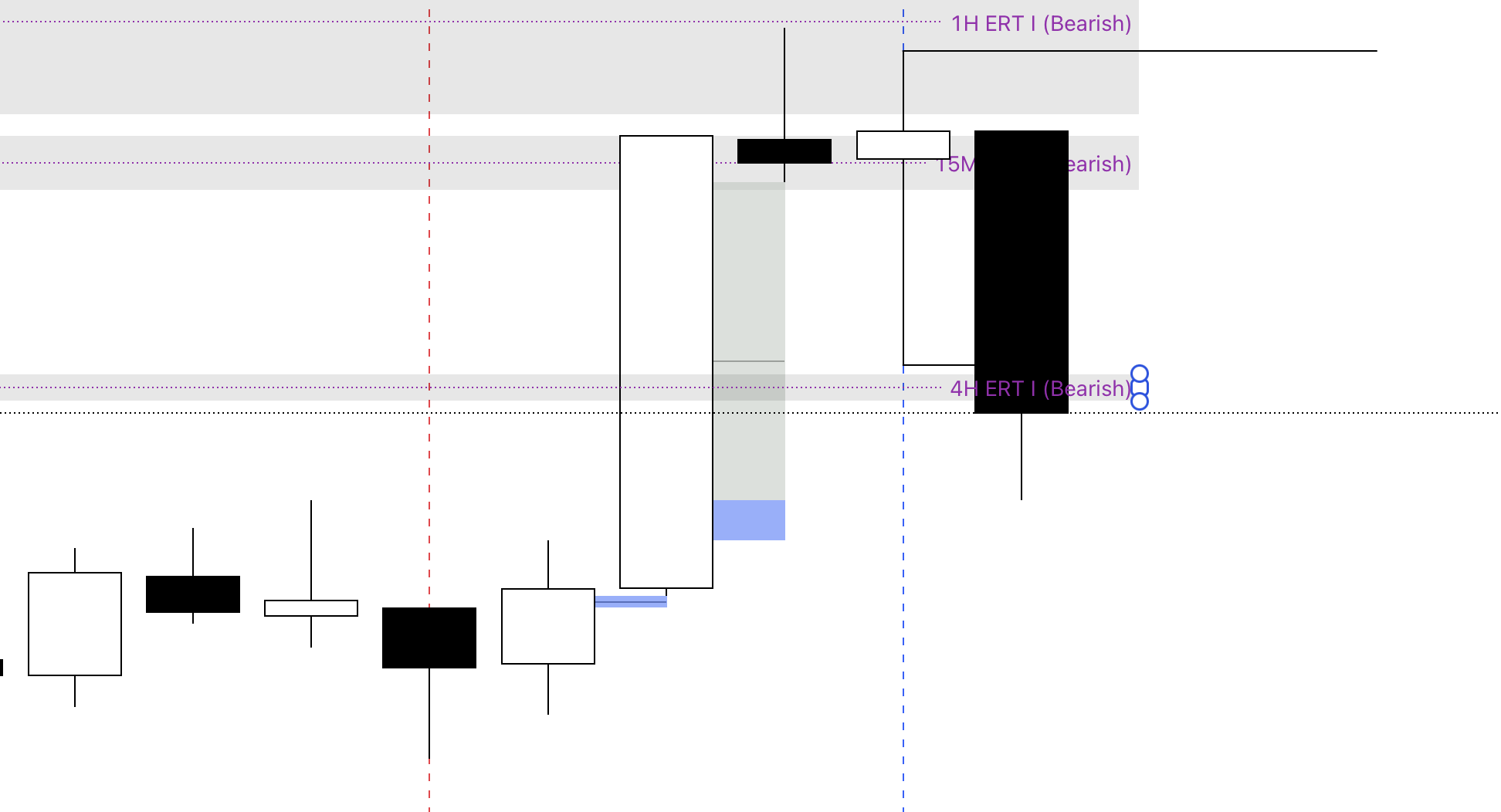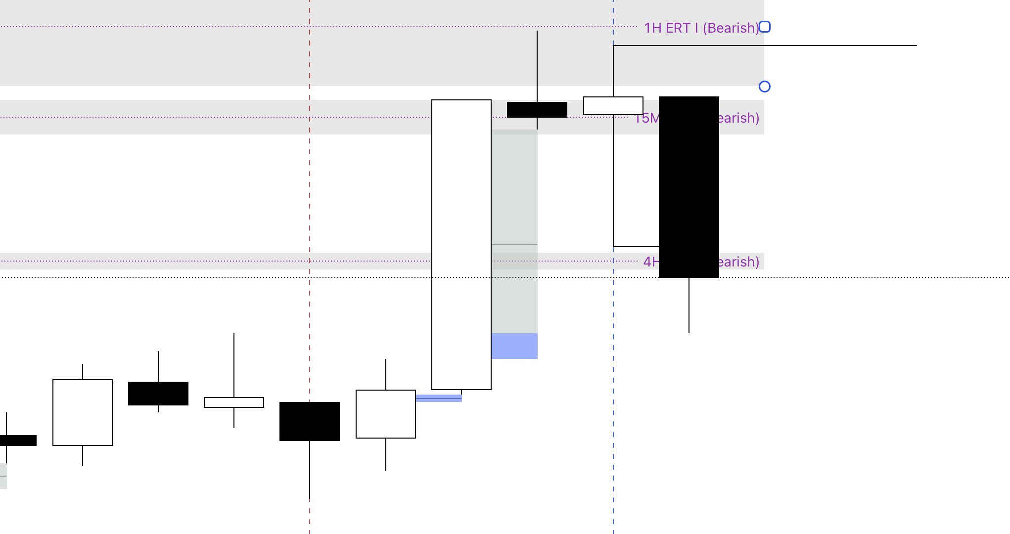 Confluences: 15M ERT bearish inverse FVG above a 4H ERT bearish inverse FVG.