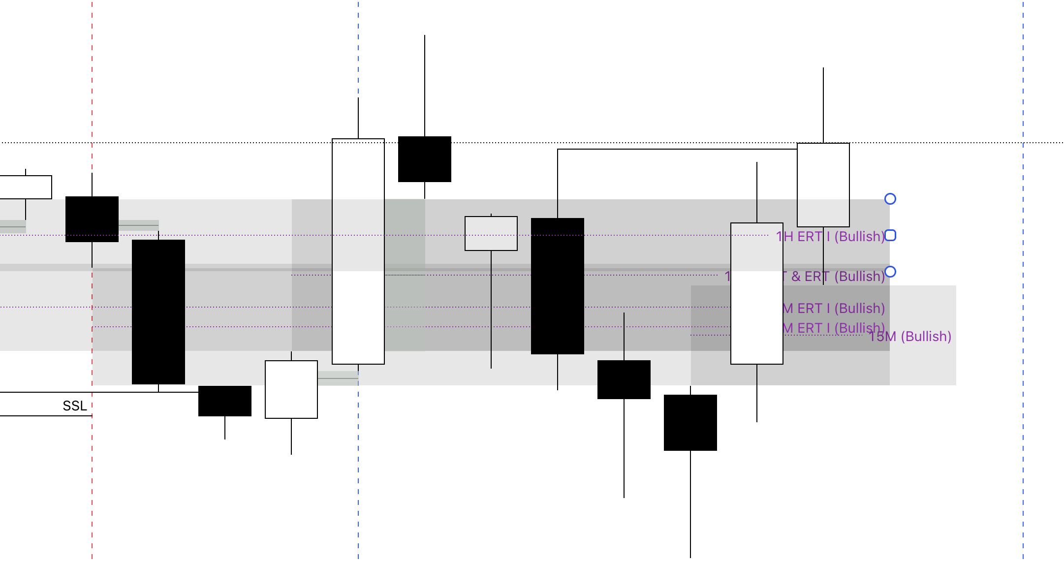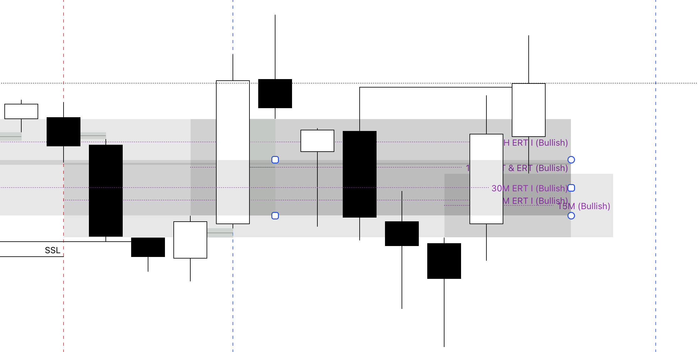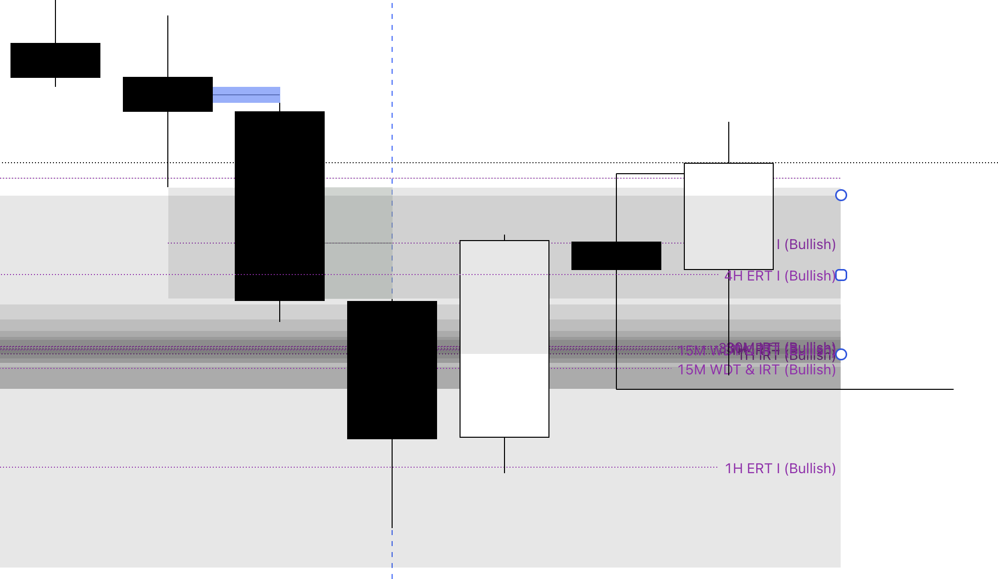 Confluences: A 15M bearish FVG above a 30M ERT bearish inverse FVG.