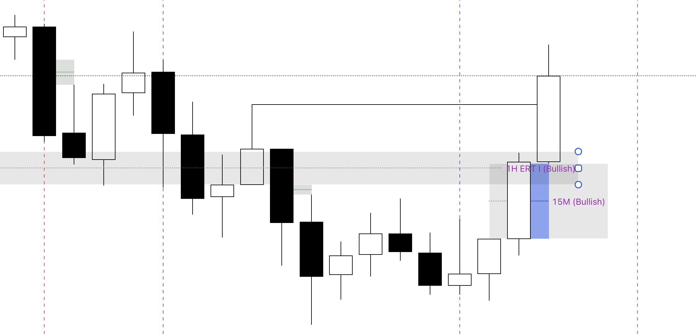 Confluences: A 1H bullish FVG within a 1H ERT bullish inverse FVG.