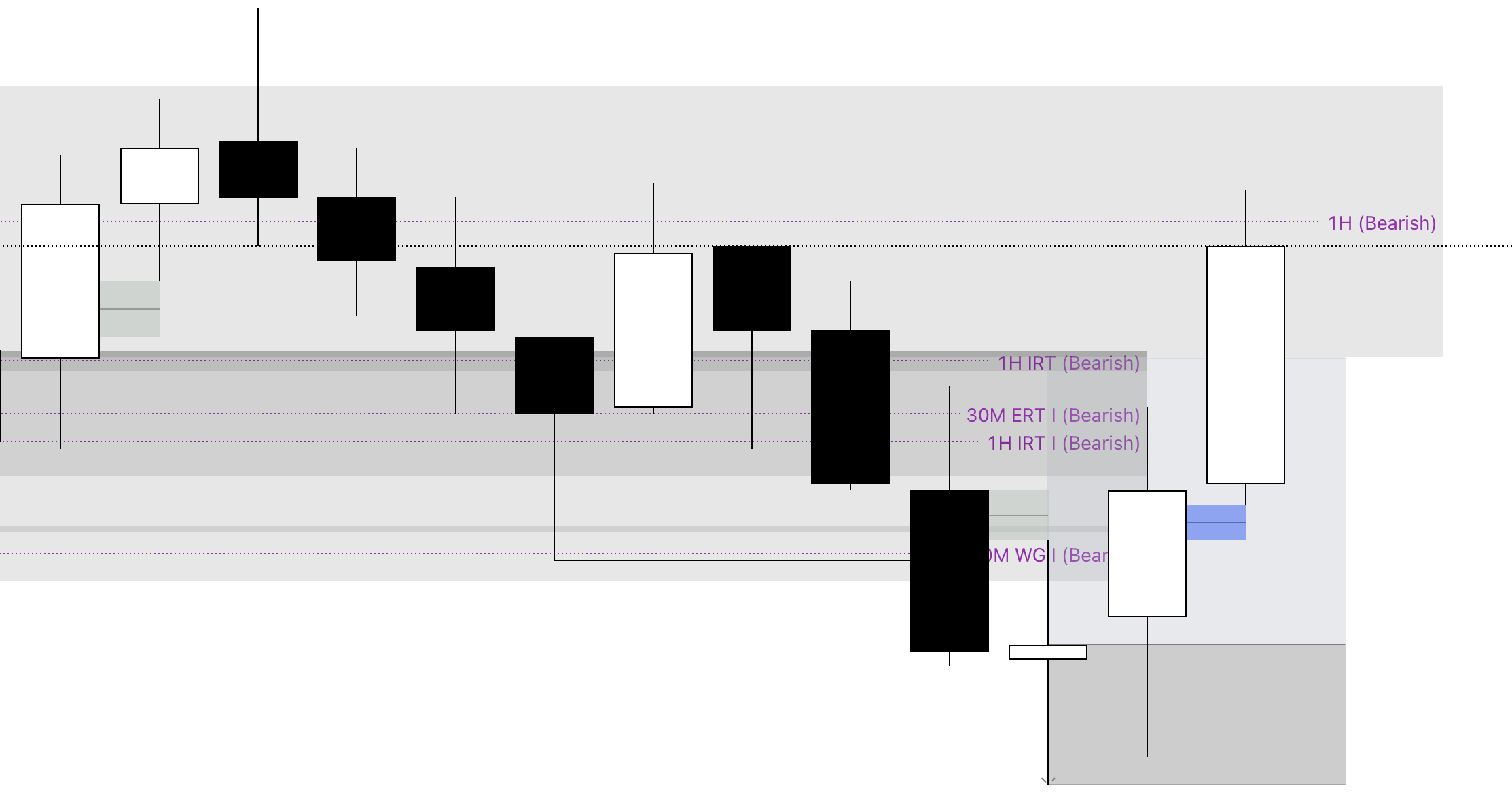 Confluences: A 1H IRT bearish FVG within a 30M ERT bearish inverse FVG.