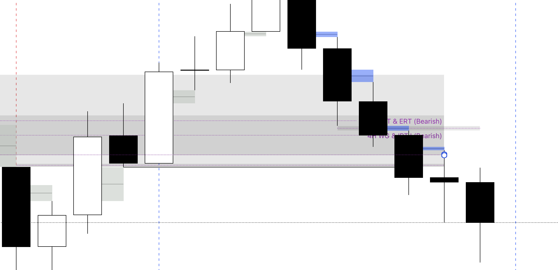 Confluences: A 4H WDT & IRT bearish FVG above a 1H ERT Inverse FVG.