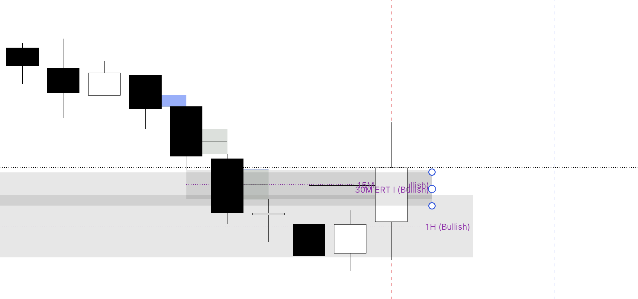 Confluences: A 15M ERT bullish inverse FVG within a 30M ERT bullish inverse FVG.