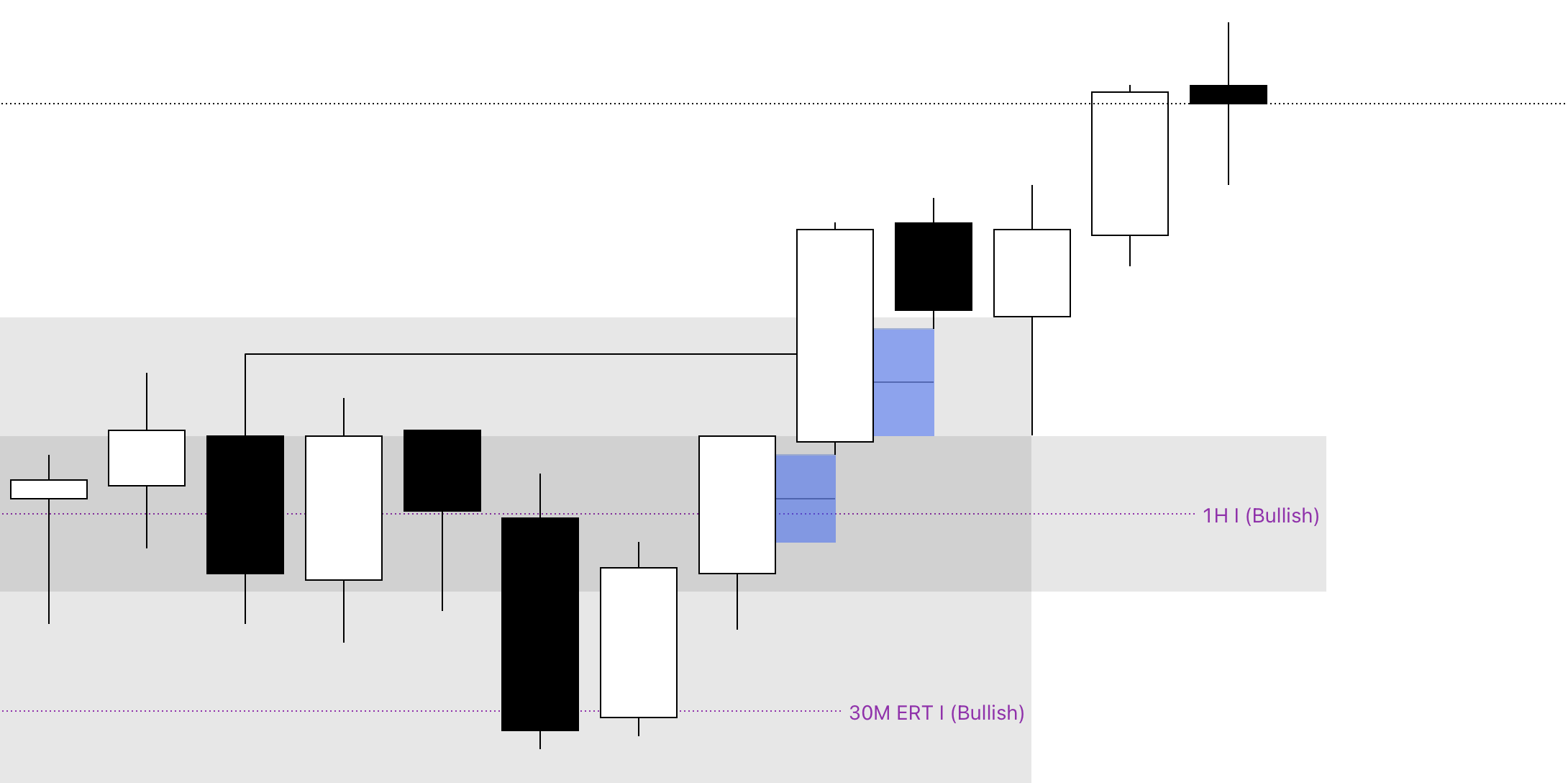Confluences: 30M ERT bullish inverse FVG within a 1H ERT bullish inverse FVG.