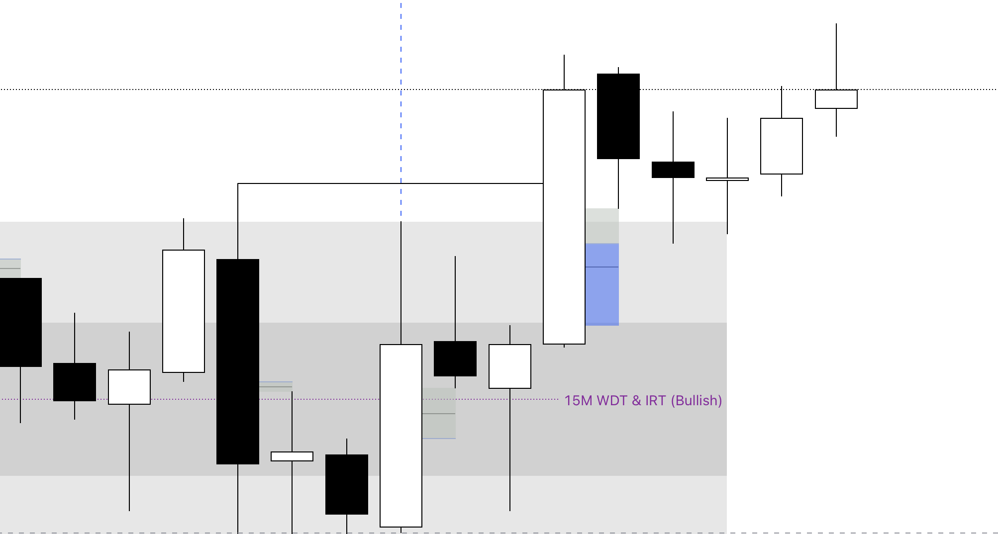 Confluences: A 15M WDT & IRT bullish FVG within a bullish; 1H IRT inverse FVG.