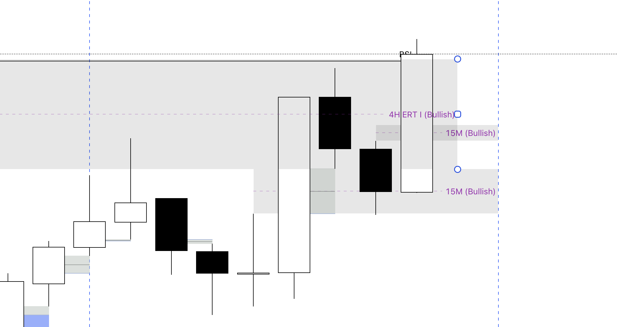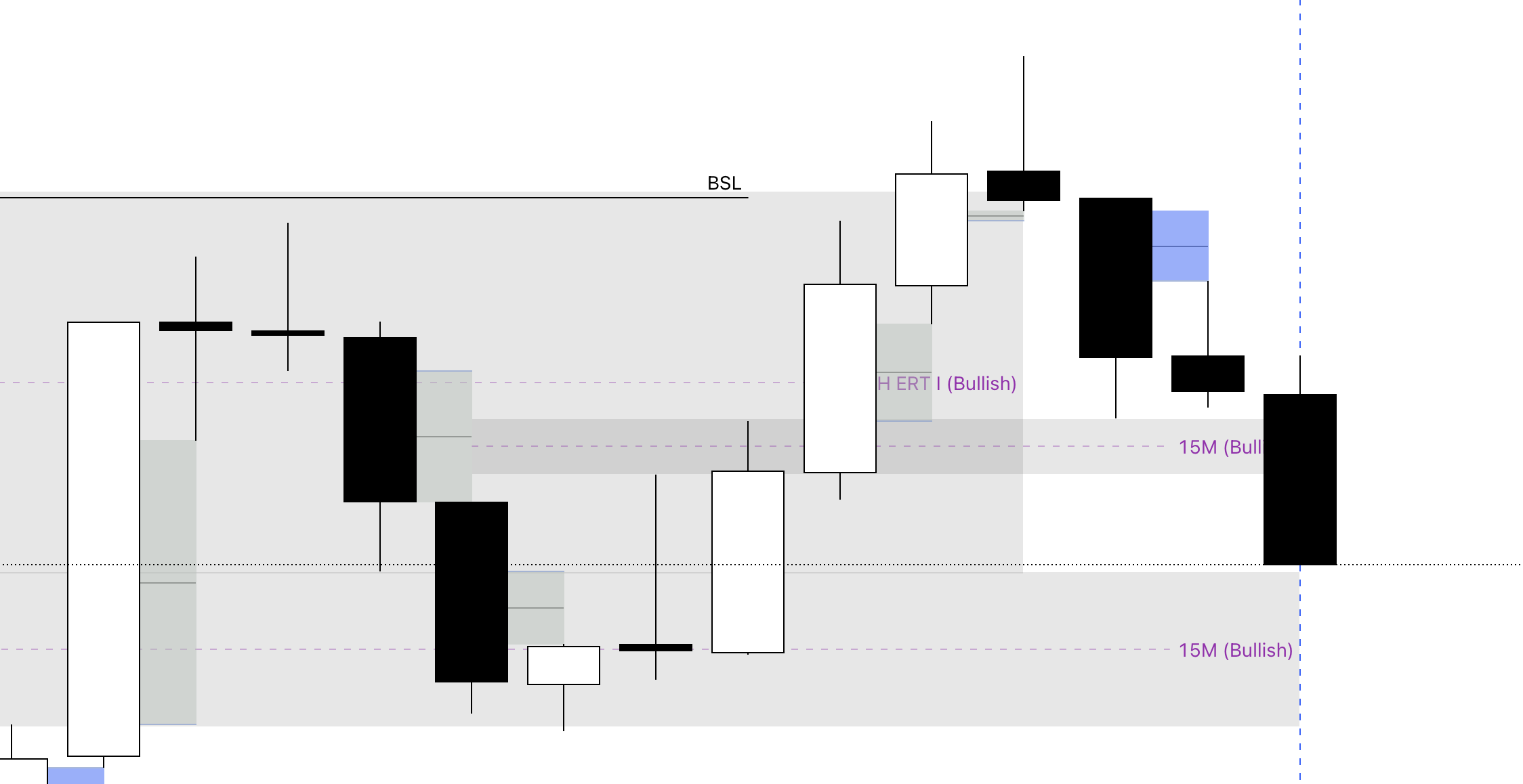 Confluences: A 15M bullish FVG (after a 15M bullish FVG) within a bullish; 4H ERT inverse FVG.